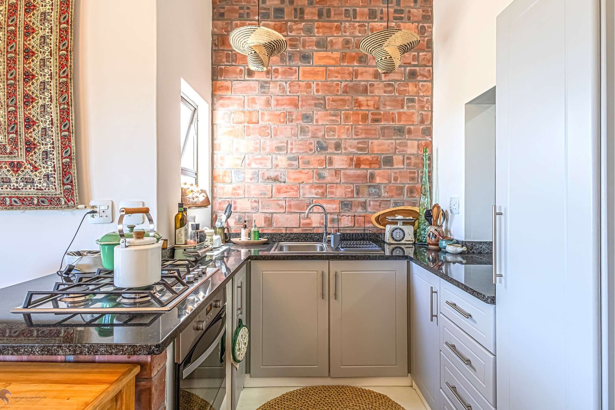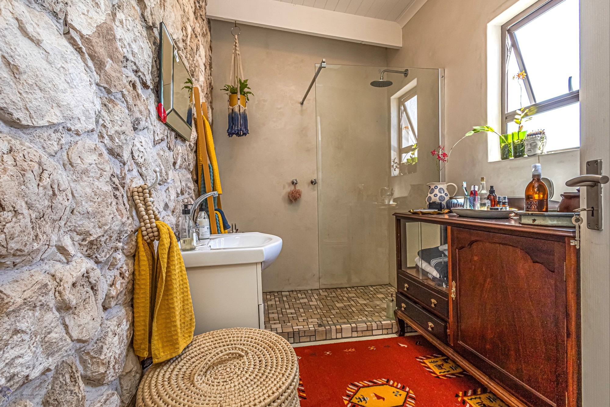 Flat Details:Flat 1: Open-plan kitchen with gas stove, dining corner, 1 bedroom, bathroom with shower, covered patio, and large paved backyard. Fireplace.Flat 2: Open-plan kitchen, lounge, and dining area with gas stove, large bedroom, and bathroom with shower. Fireplace.Flat 3: Spacious open-plan lounge with fireplace, kitchen with gas stove, rustic rock-designed bathroom, covered patio, and garage.Flat 4: Open-plan living area with kitchen (gas stove), rustic rock-designed bathroom, extra room currently used as a study, bedroom with walk-in cupboard, covered patio, and garage. Fireplace.