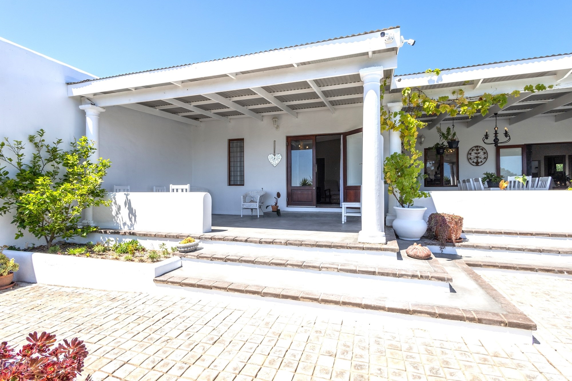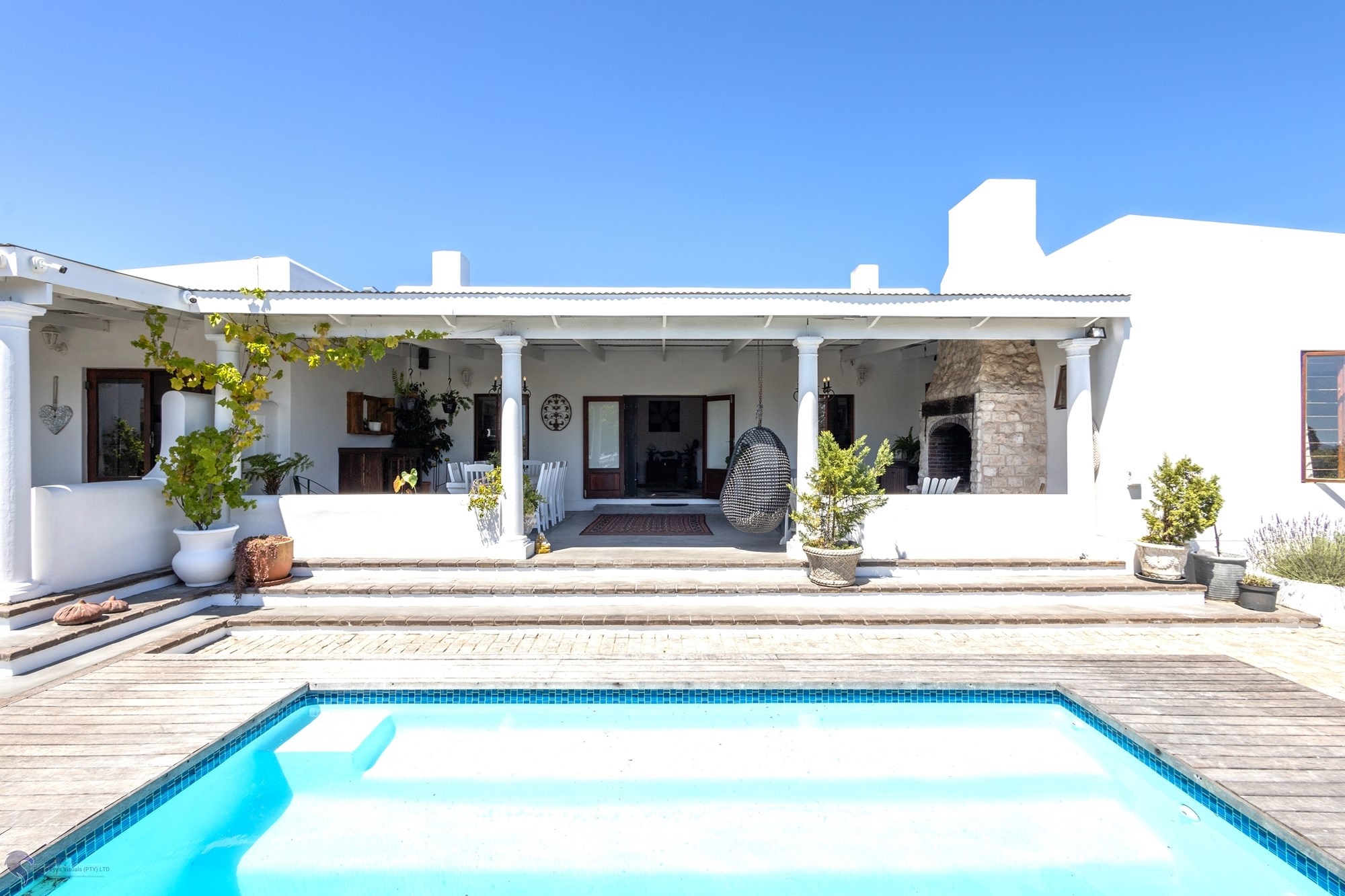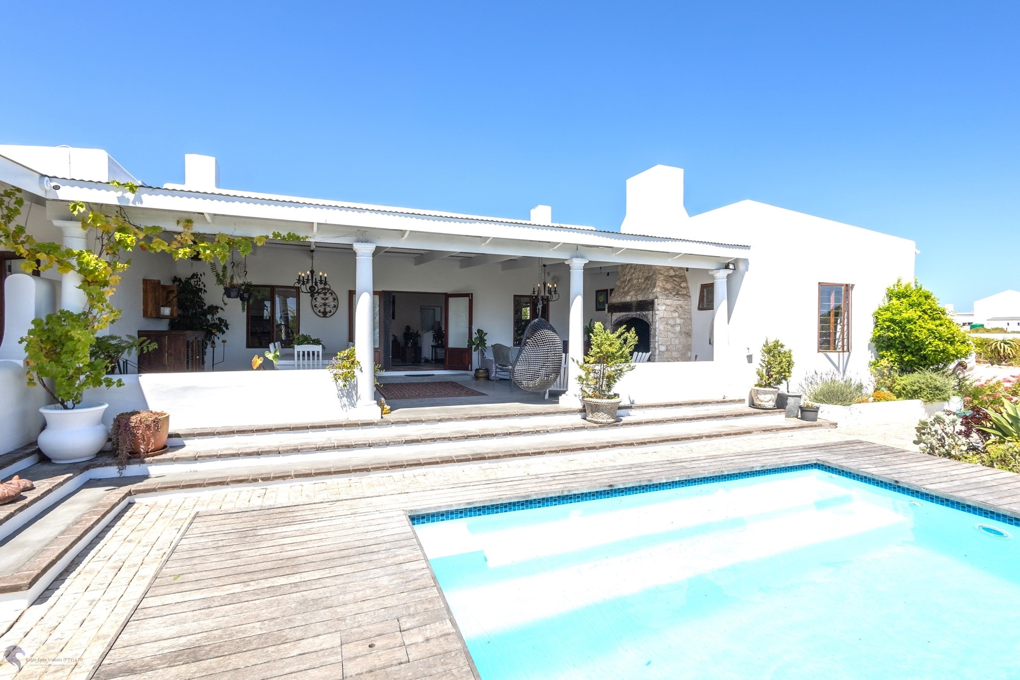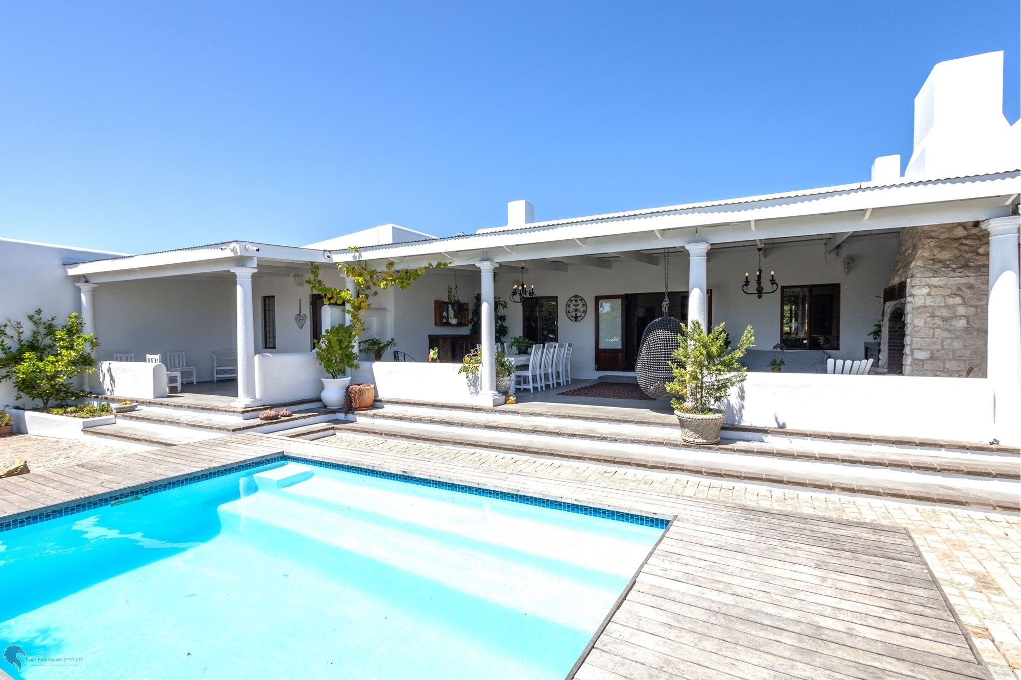 Main House Features:3 bedrooms / 3 bathrooms, with one bedroom leading to a private patio.Spacious living areas including an open-plan lounge, kitchen, and scullery.A study nook3-phase electricity for all dwellings, solar and inverter system (4.5 KW), and fibre internet.Heated swimming pool and the chandeliers included in the saleLarge entertainment patio with braai overlooking the pool and scenic views to the fynbos landscapeTwo fireplaces for the cozy winter nights