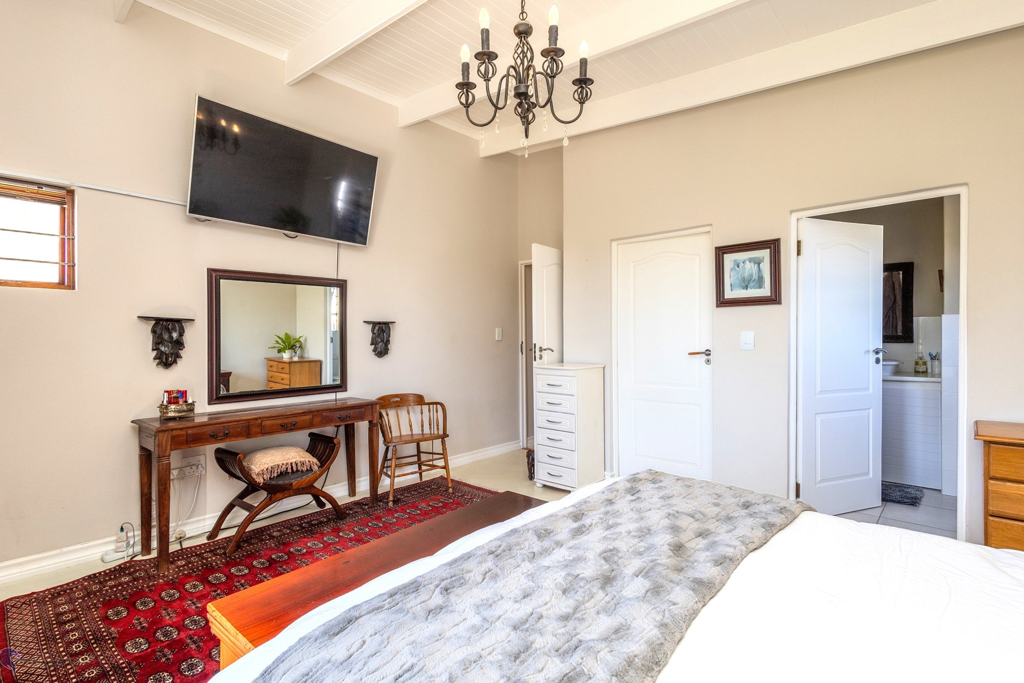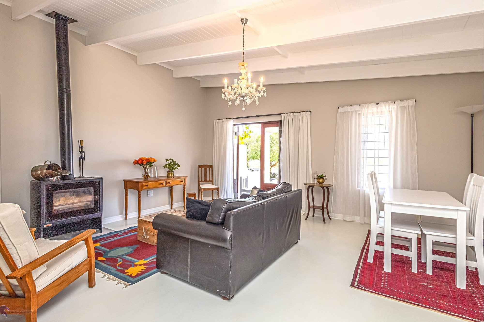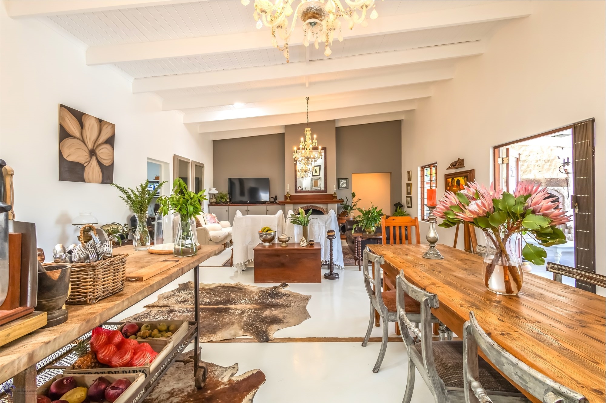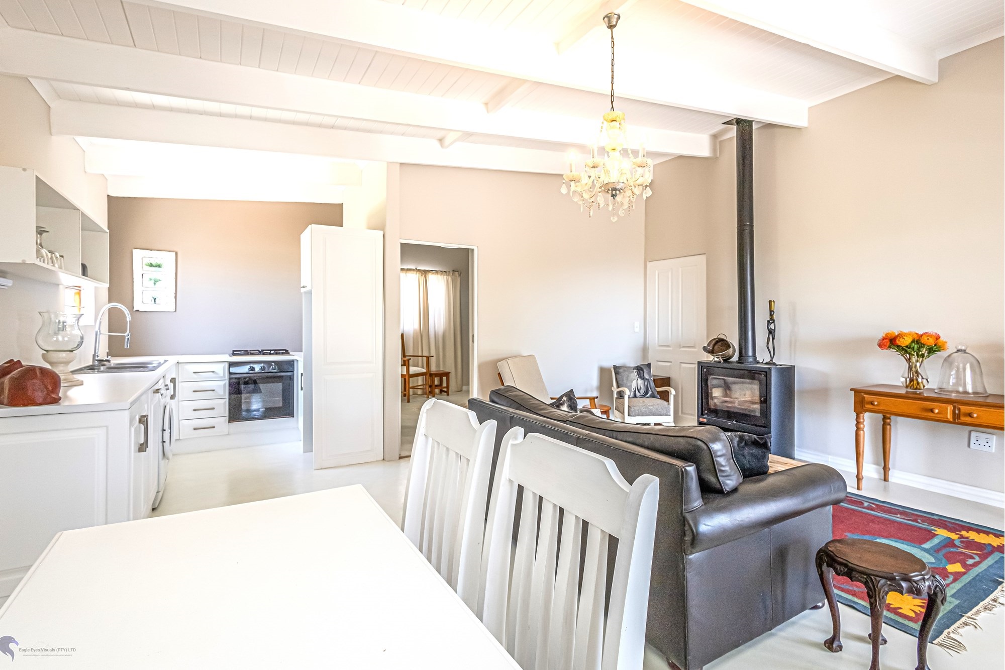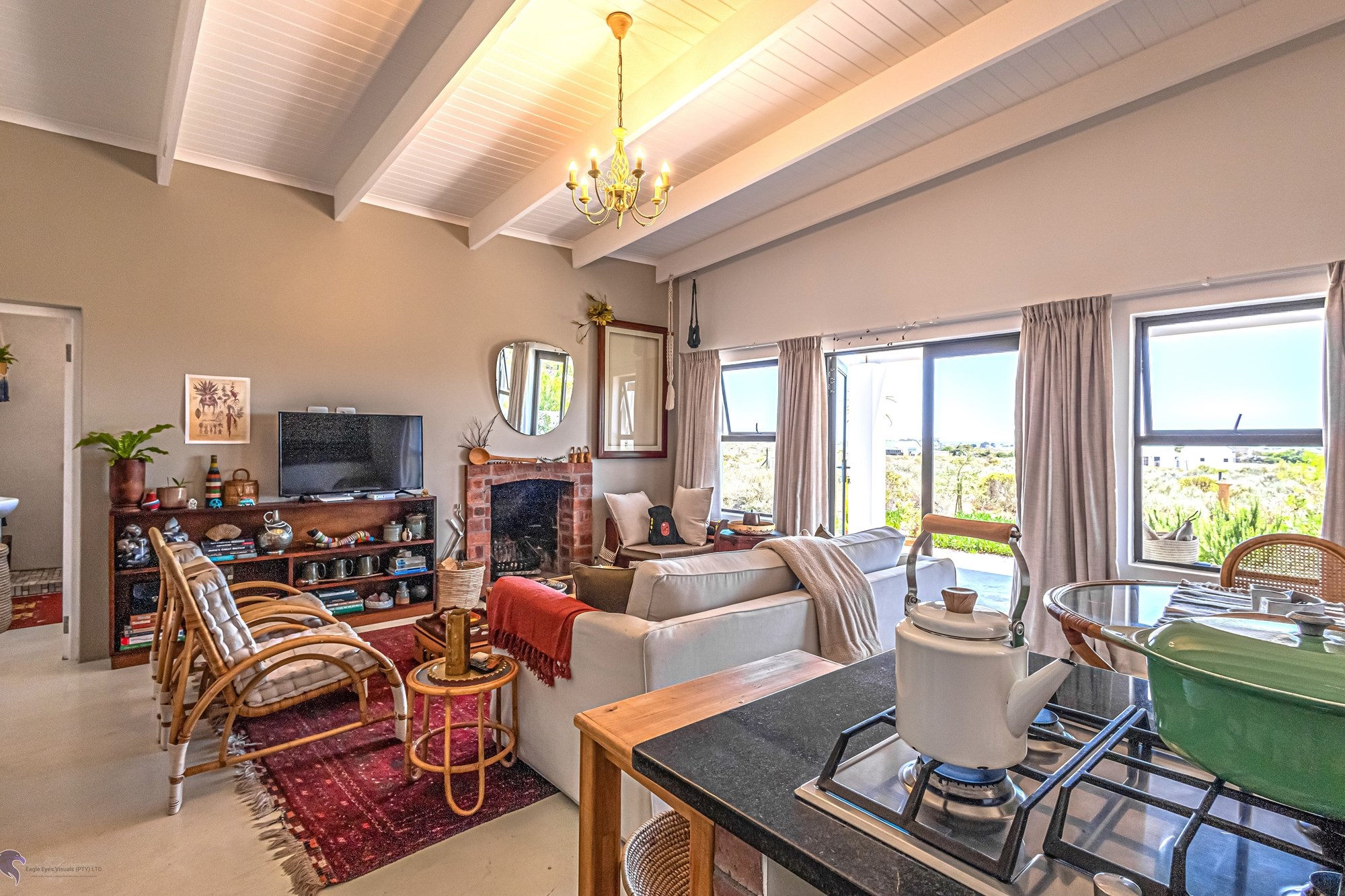 Main House Features:3 bedrooms / 3 bathrooms, with one bedroom leading to a private patio.Spacious living areas including an open-plan lounge, kitchen, and scullery.A study nook3-phase electricity for all dwellings, solar and inverter system (4.5 KW), and fibre internet.Heated swimming pool and the chandeliers included in the saleLarge entertainment patio with braai overlooking the pool and scenic views to the fynbos landscapeTwo fireplaces for the cozy winter nights