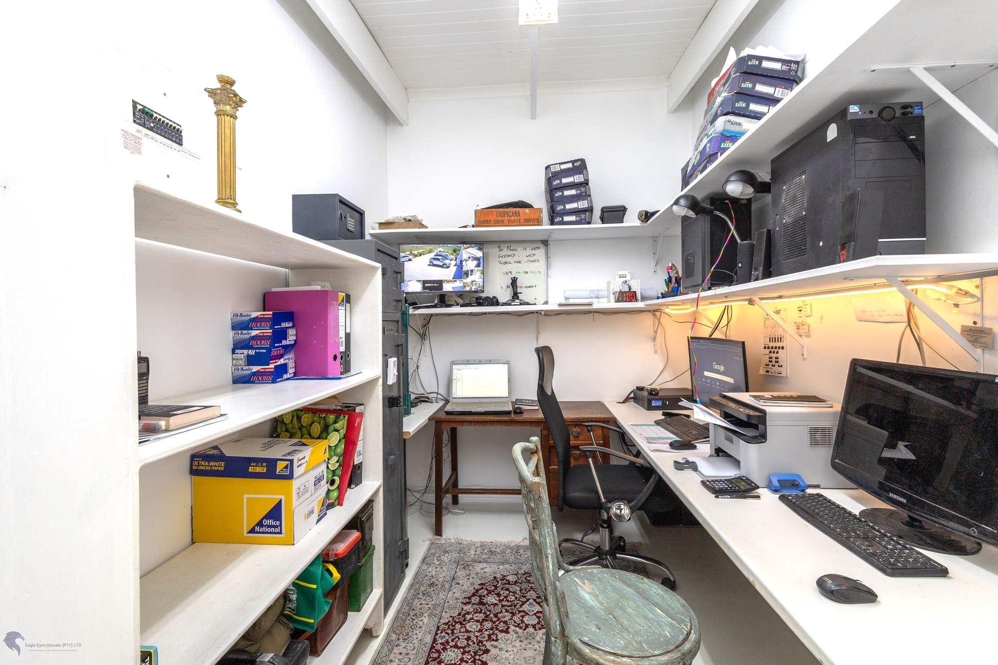 Property Details:Main House: 486 m2Garage/Workshop: 183.5 m2Covered Stoep: 130 m2Car Ports: 100 m2Total Under Roof (excluding carports): 739.5 m2Land Size: 2.5 hectaresMonthly Rates & Taxes: R1,500Refuse: R515.40Sewerage: R390Electricity: R3,095 (total R7,409.12)Water Storage: 2 JOJO tanks (5,000 litres each)Security: 15 beams, 7 cameras, and an alarm system.Approved plans for extra garages