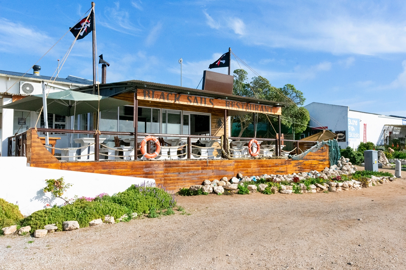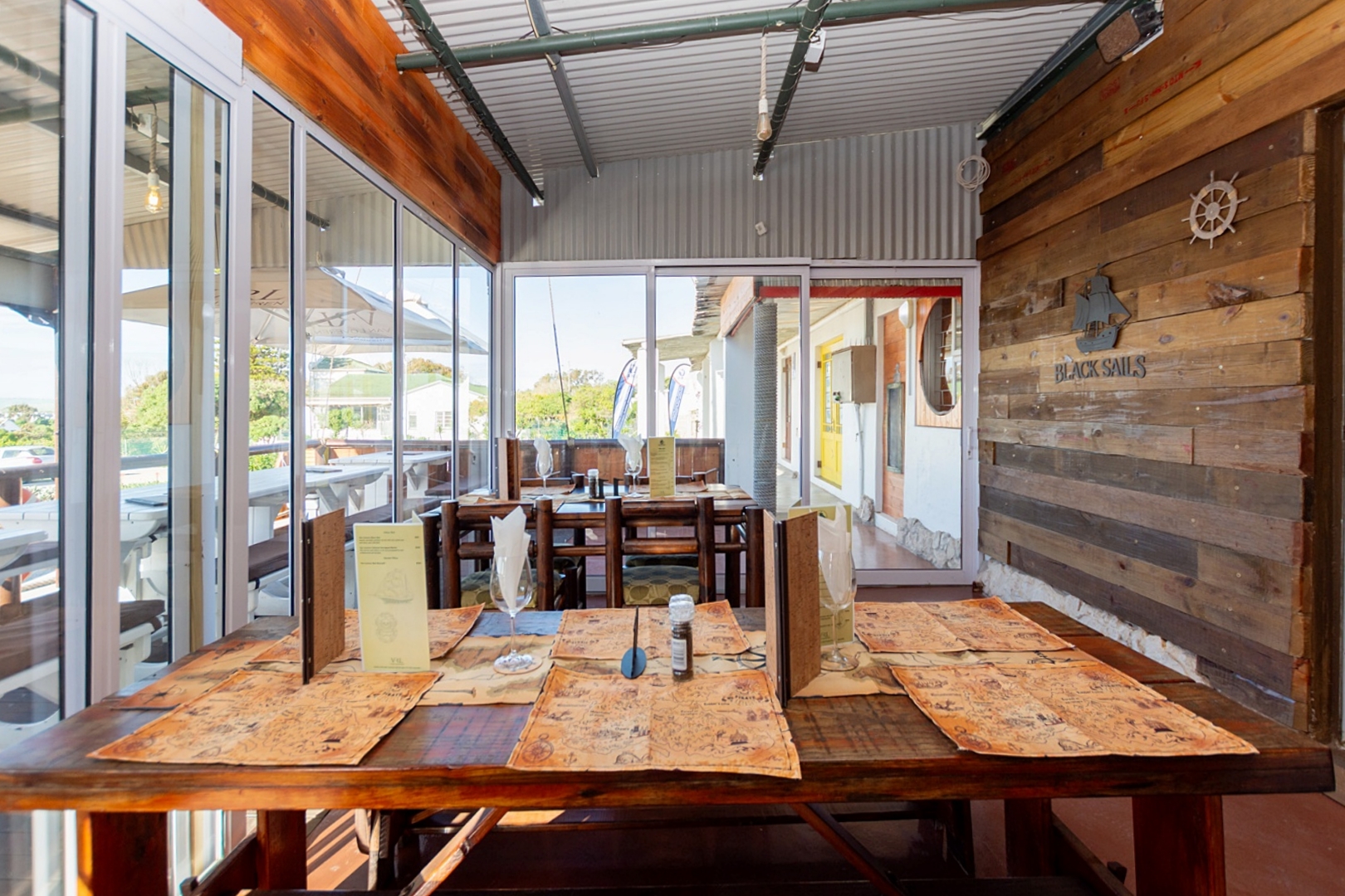 Recently updated with a bold new boat-inspired exterior, the venue stands out with its timber-clad façade, curved lines, porthole windows, and authentic nautical touches. This striking design gives the property instant street appeal and positions it as a future landmark in the village with its catchy new name "Black Sails Restaurant" that fits in with the new look and feel.