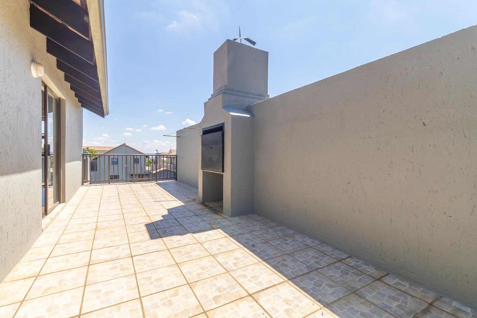 Upstairs, a spacious sunny bedroom/ teenage pad with en -suite bathroom, as well as a spacious balcony for entertainment with a built-in Braai.
