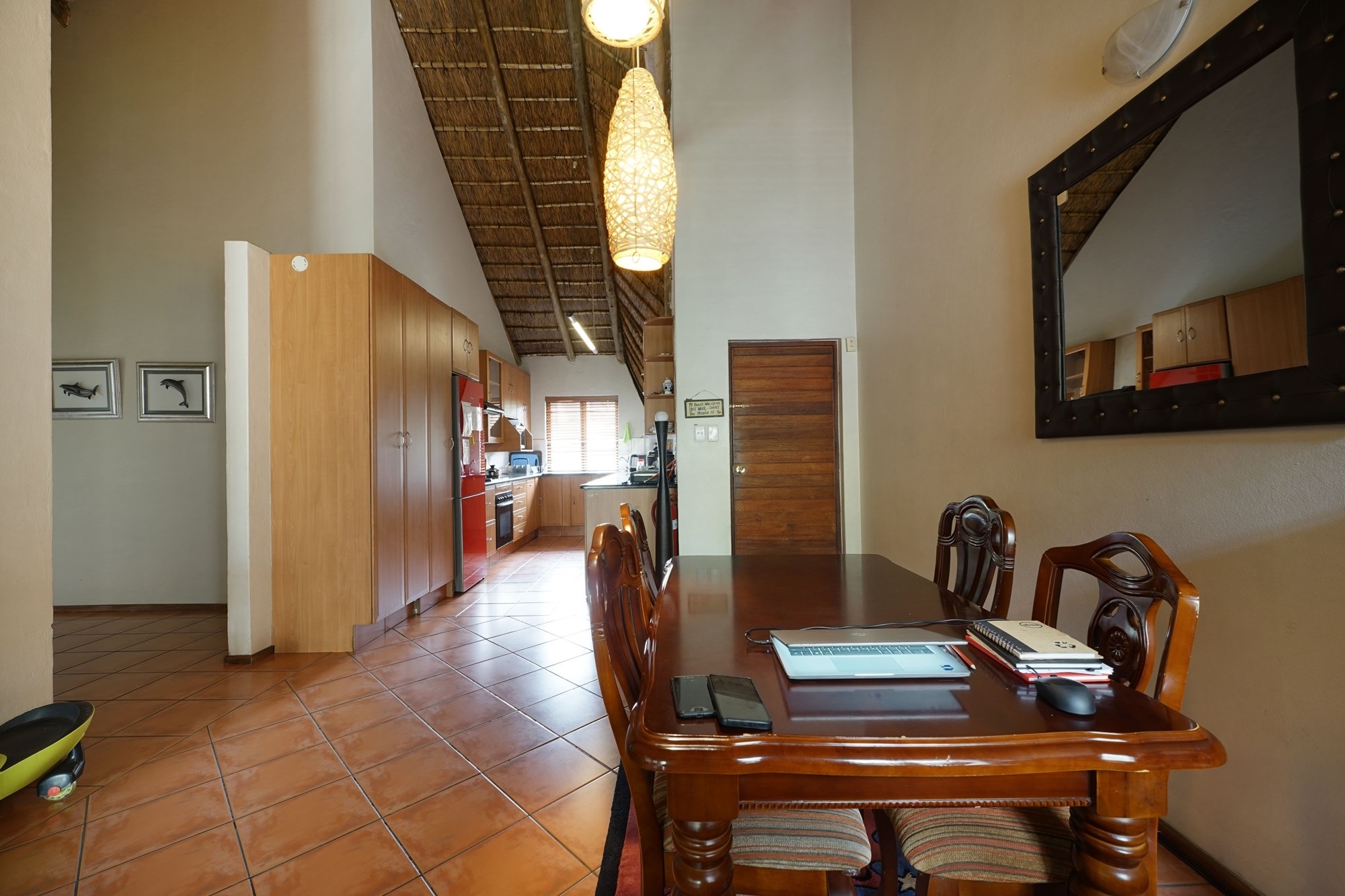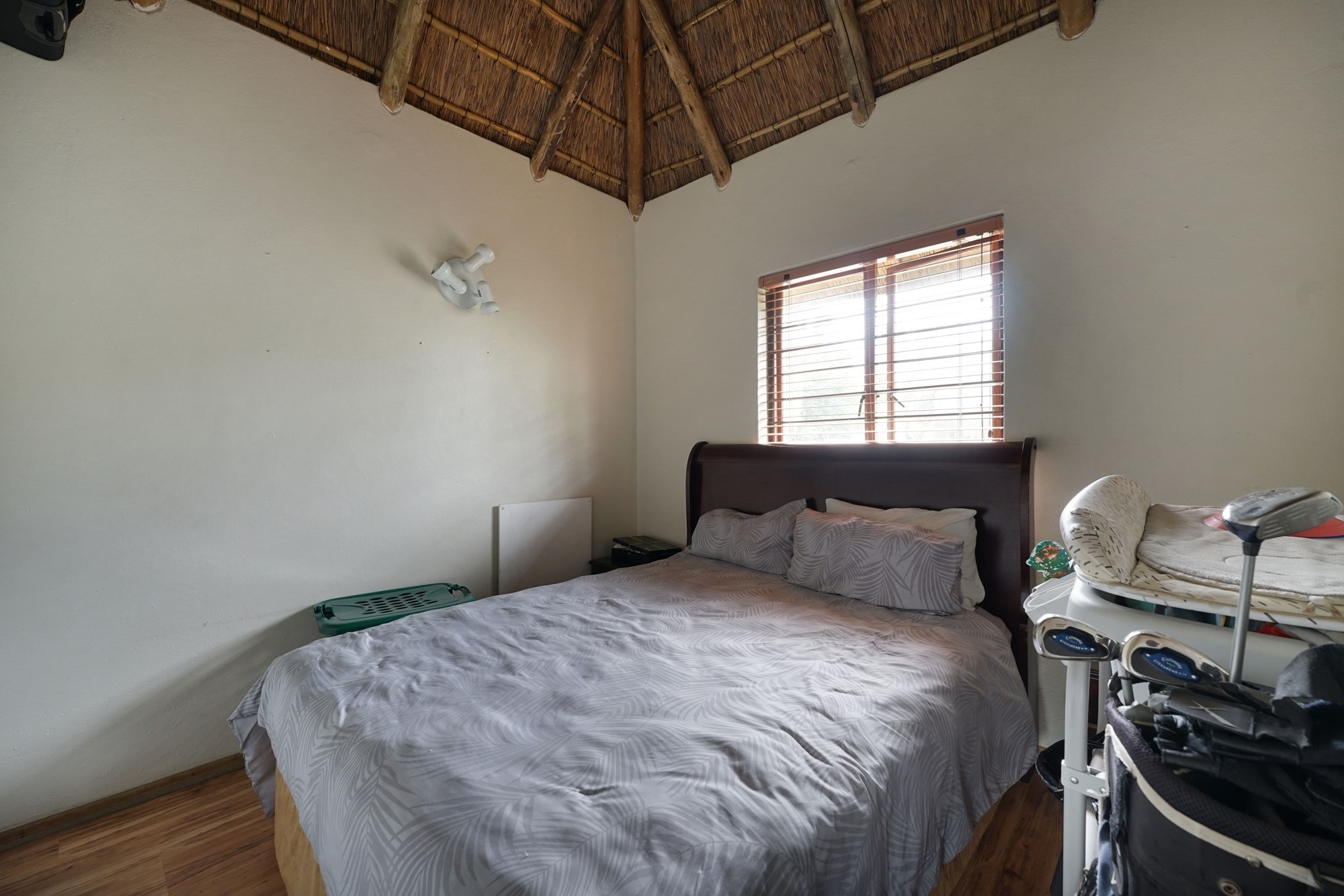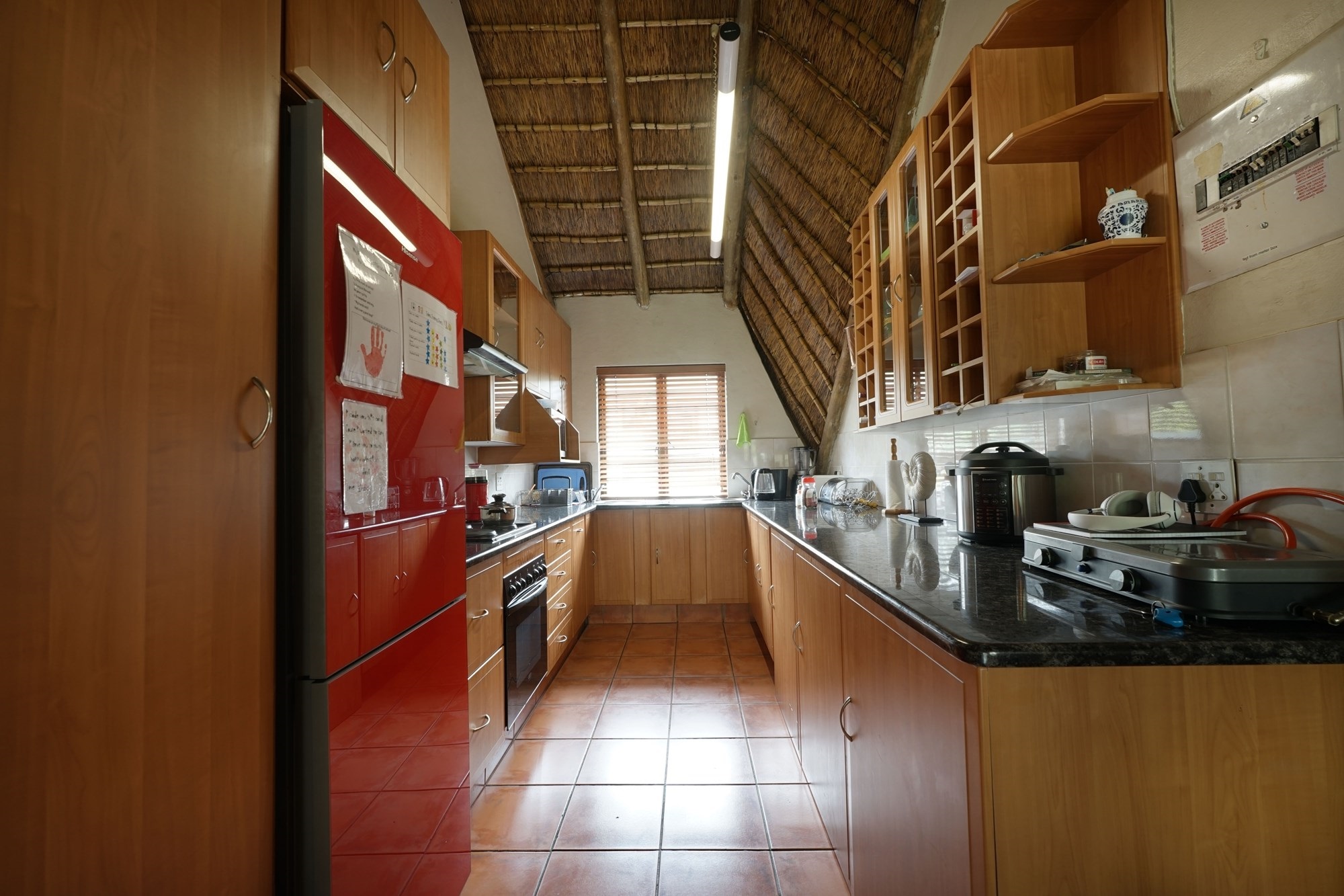 Key Features:Open-Plan Living:The modern kitchen boasts ample cupboard space, seamlessly flowing into the dining area and reception, which lead to a cozy lounge – perfect for entertaining or relaxing.Master Bedroom Oasis:The spacious master bedroom features an en-suite bathroom with a bath and toilet.Guest-Friendly Design:A full guest bathroom with a bath, shower, and toilet caters to family and visitors alike.Comfortable Guest Rooms:Two additional bedrooms with built-in cupboards provide versatility for family, guests, or a home office.Rustic Charm:The thatched roof and high ceilings create a warm and inviting ambiance throughout the apartment.Ample Parking:Includes two covered parking bays for your convenience.