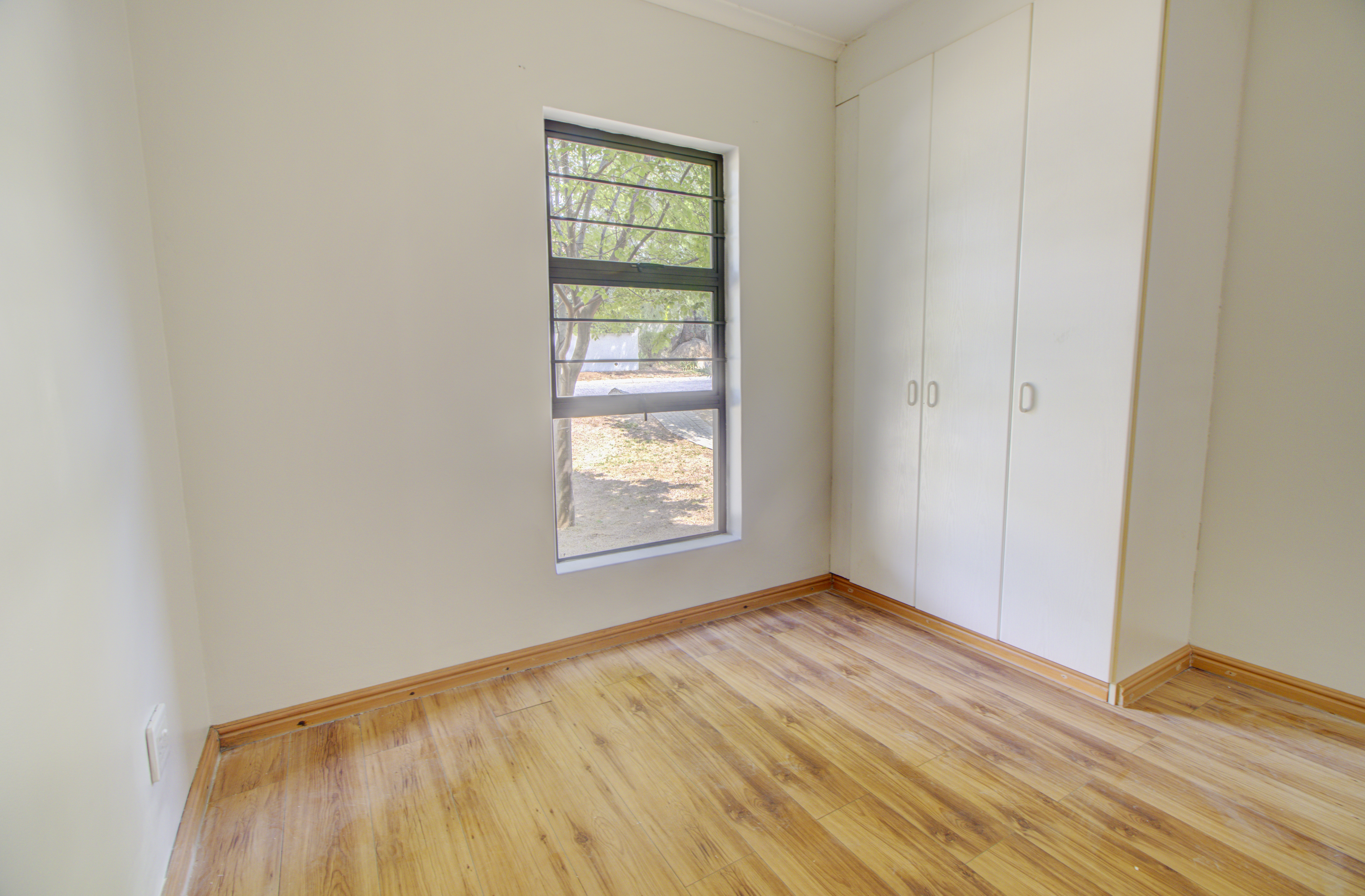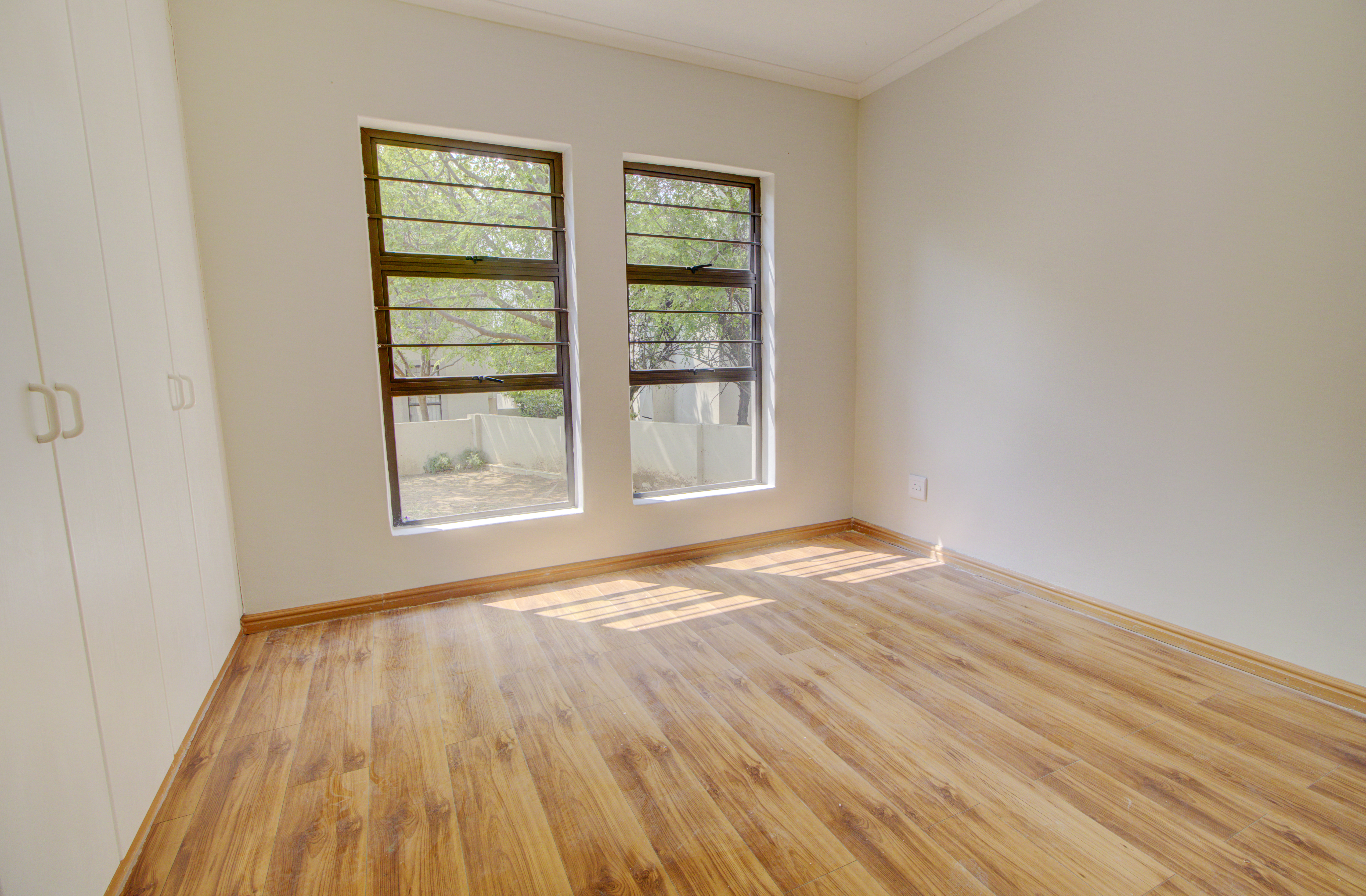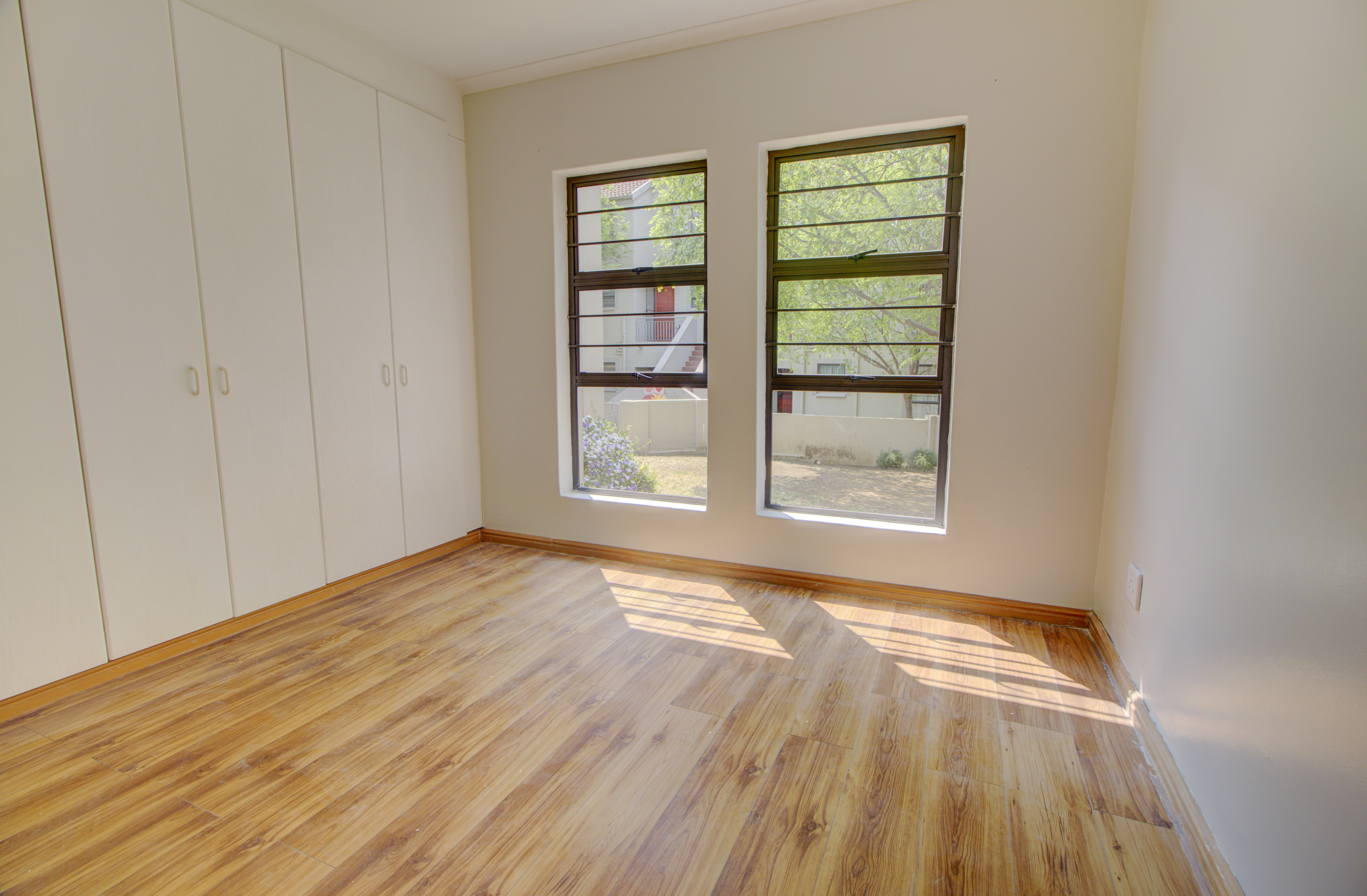 The main bedroom is north-facing and overlooks the garden, while the second bedroom is also quite spacious, accommodating a queen-size bed. Both bedrooms feature sleek laminate flooring.