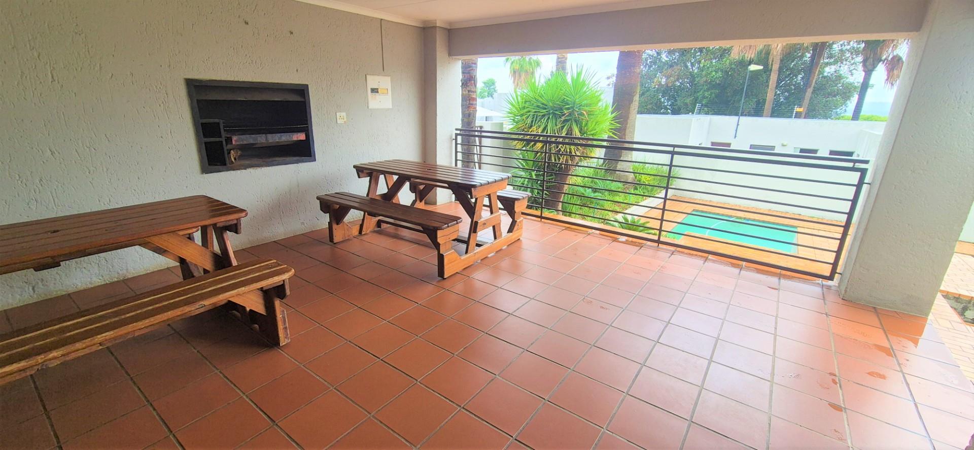 The well-appointed kitchen offers space for one under-counter appliance and a single-door fridge, and is fitted with a stove, oven and a cosy breakfast nook. Overlooking a bright, tiled lounge, the living area opens onto a sun-splashed balcony, where fresh air and natural light enhance the sense of calm throughout the home.