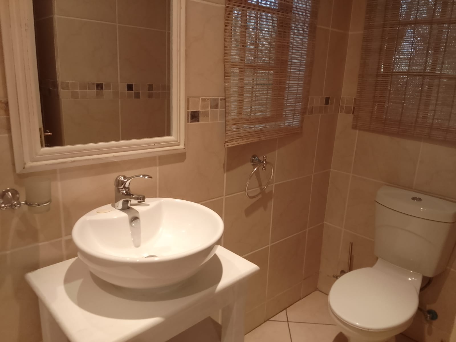 This charming flat is a must see, set on a beautiful, secure property in Paulshof. The front door leads into a rustic kitchen/living area, the back door opens onto a private courtyard surrounded by trees. The spacious bedroom with ample cupboard space, overlooks the courtyard and has a modern bathroom en-suite. The rent includes water and wi-fi, electricity will be billed monthly.