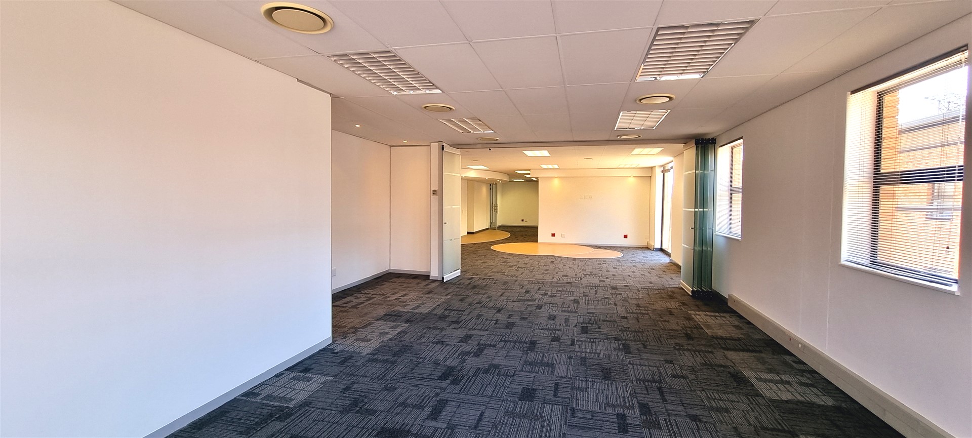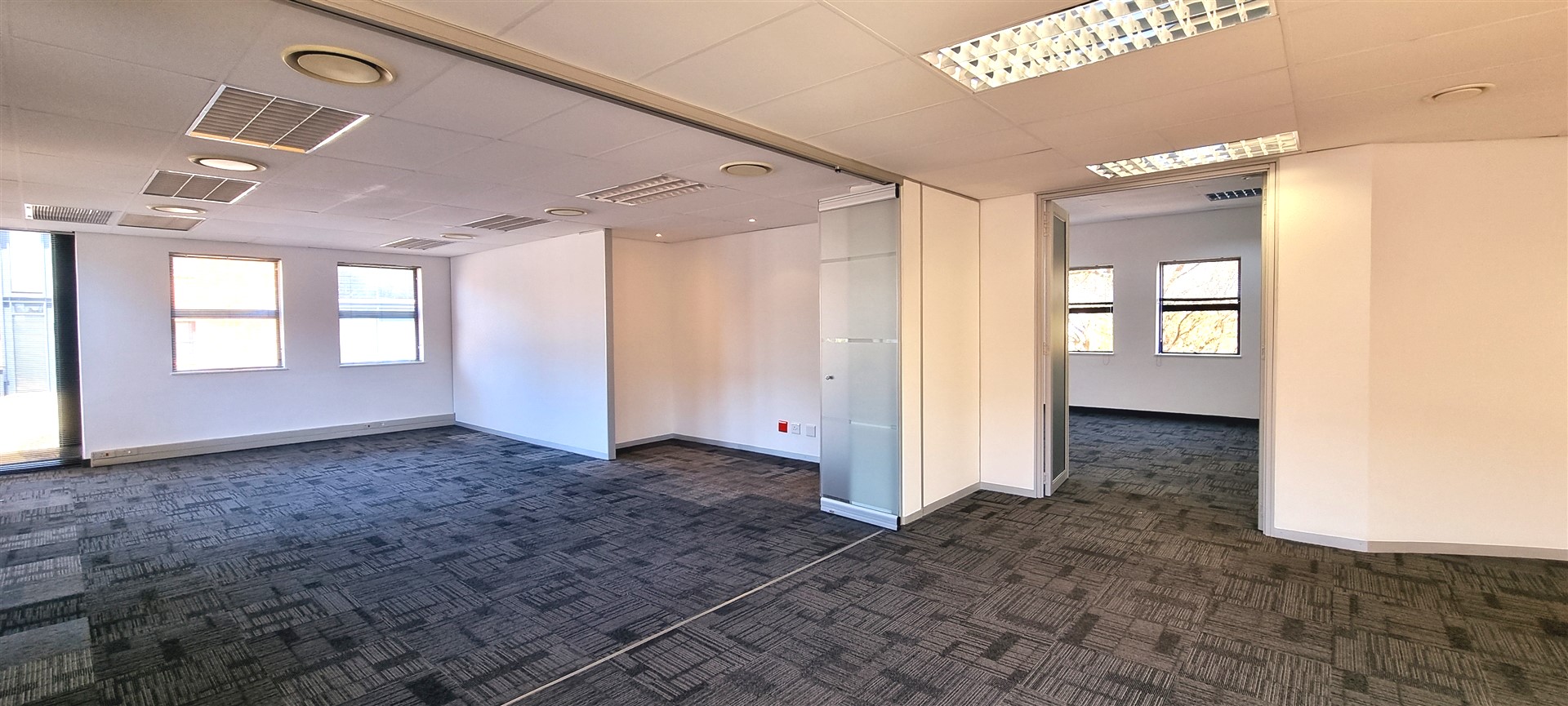 Mainly open plan with large areas divided by a glass concertina door.
