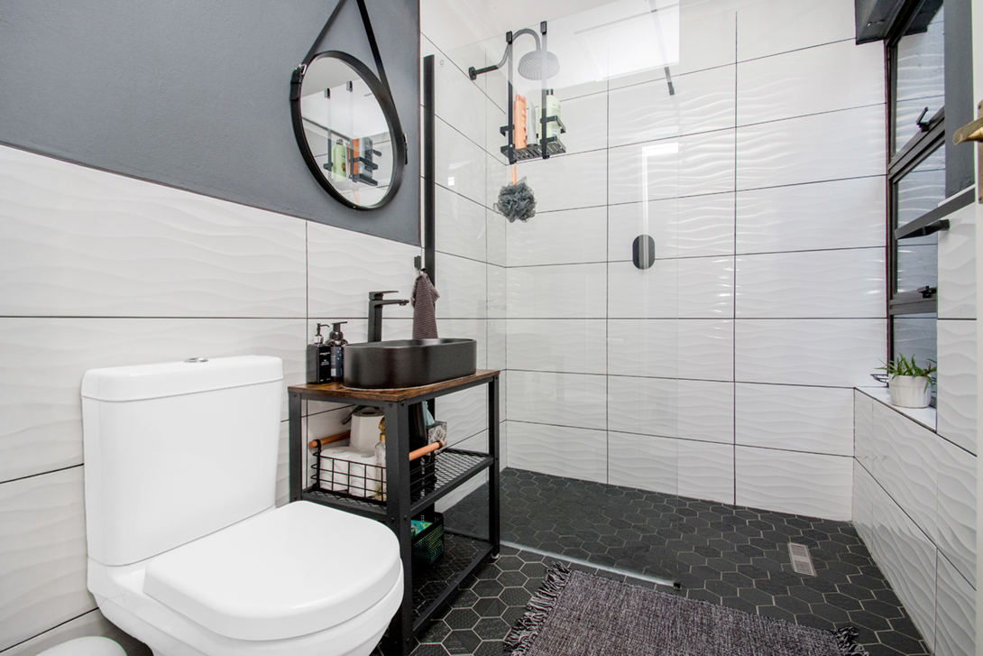 A functional atrium that has multiple uses – outdoor shower, storage, bathroom extensions