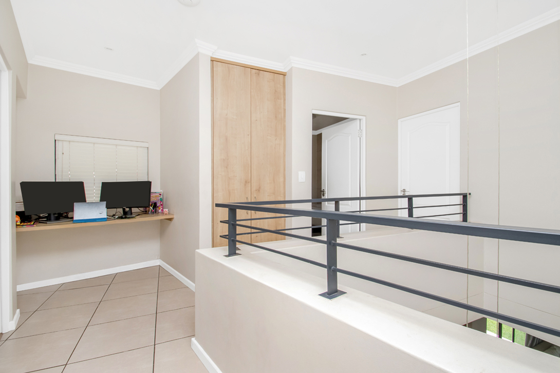 A built-in desk on the landing providing a dedicated work-from-home or study space with additional built-in cupboards
