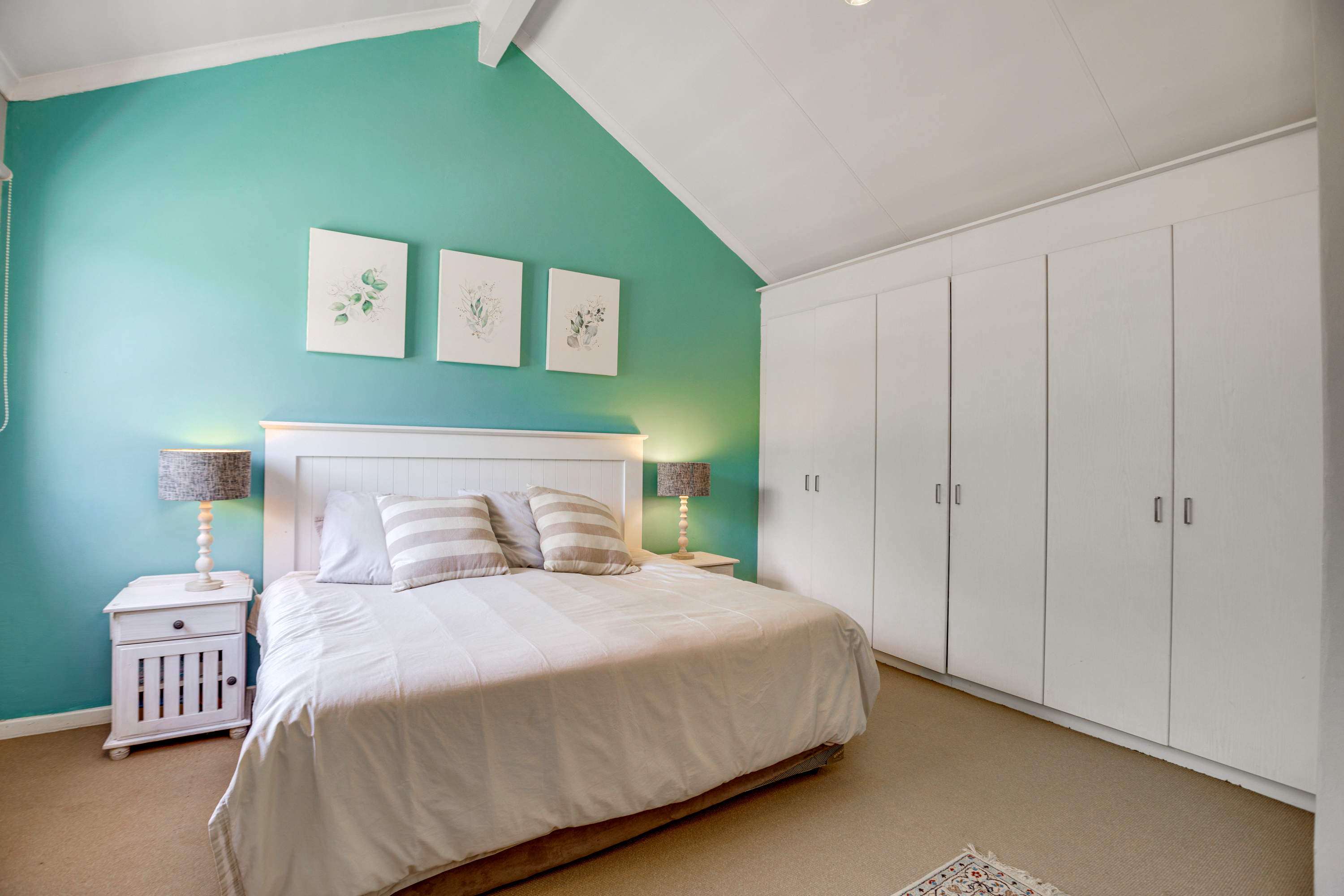 Upstairs, the loft serves as the main bedroom, offering privacy and warmth. It includes built-in cupboards and an en-suite bathroom with a shower, basin, and toilet — a cozy retreat at the end of the day.