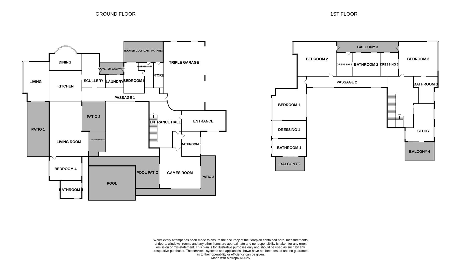 On the ground floor, a private guest suite features an en-suite bathroom, while a separate guest bathroom and a generous games room, easily adaptable into a fifth bedroom, add to the home's flexibility.