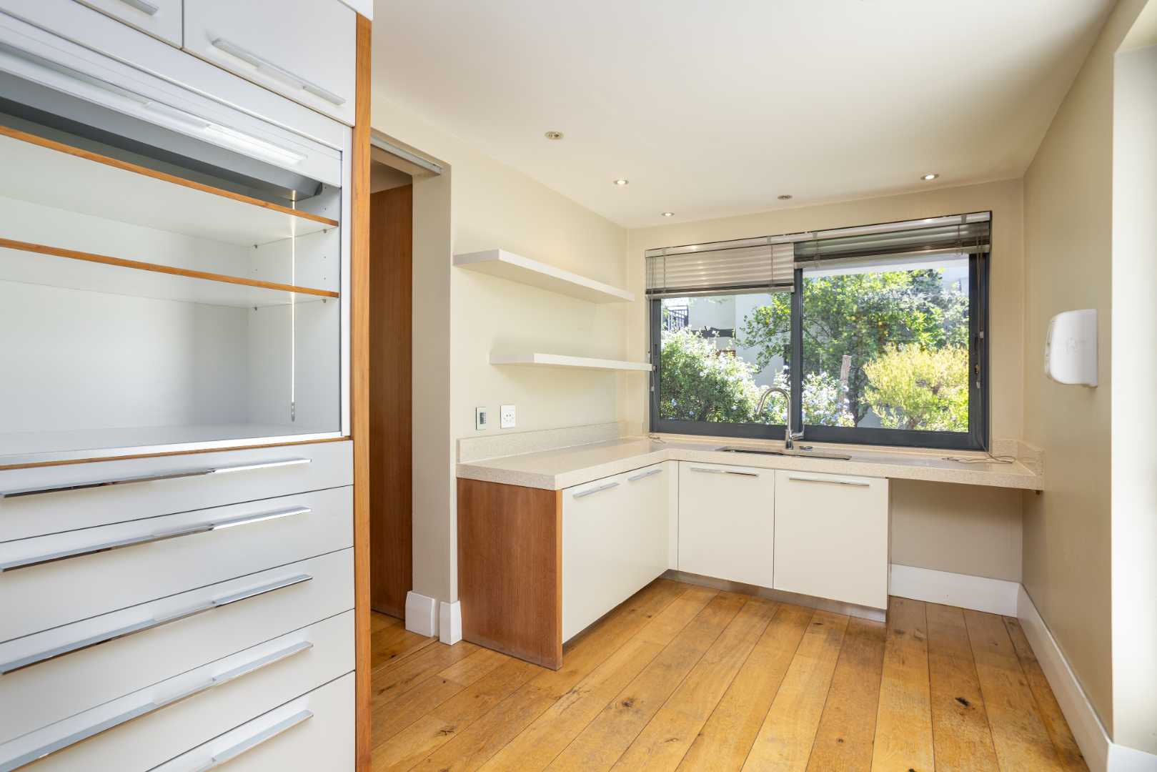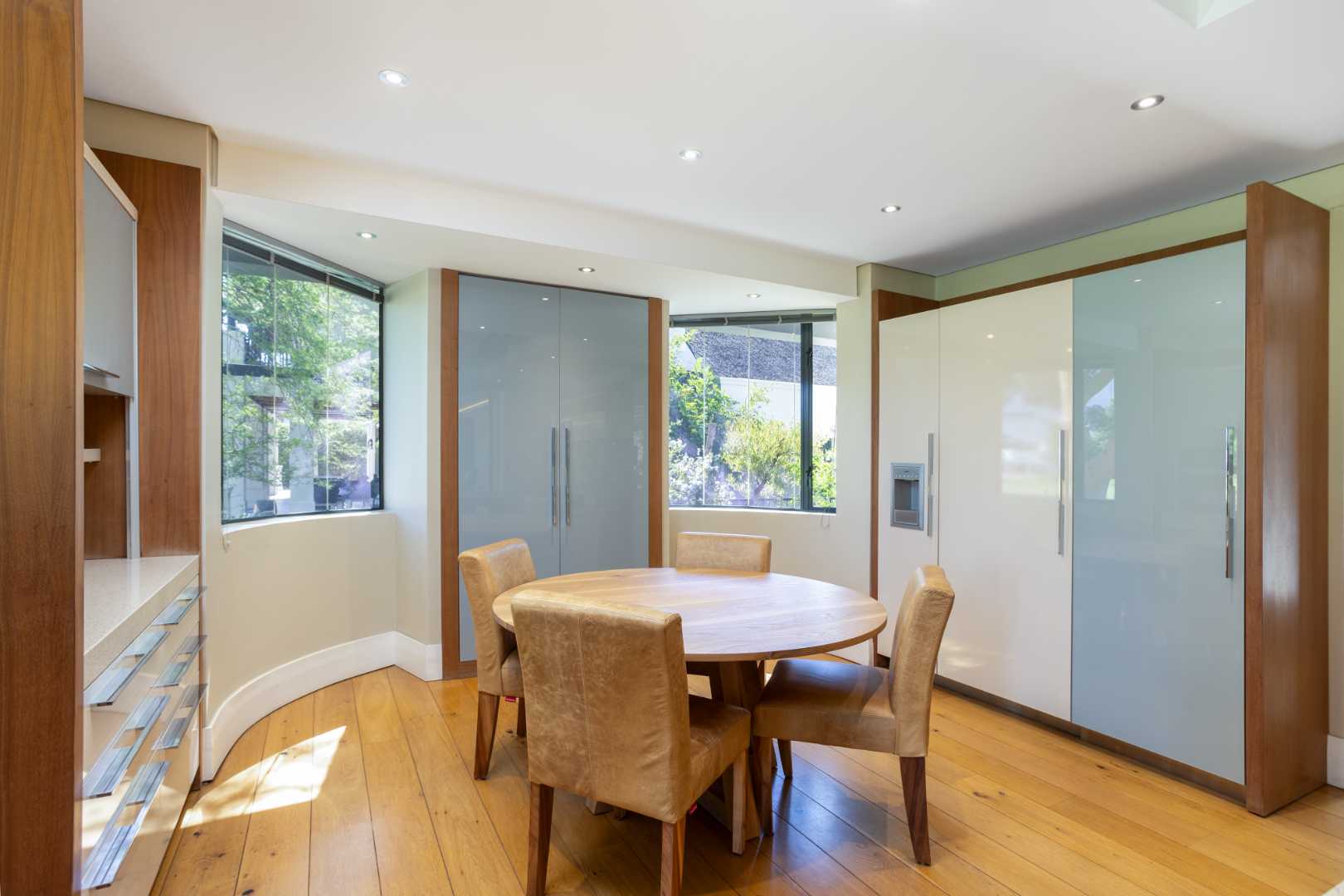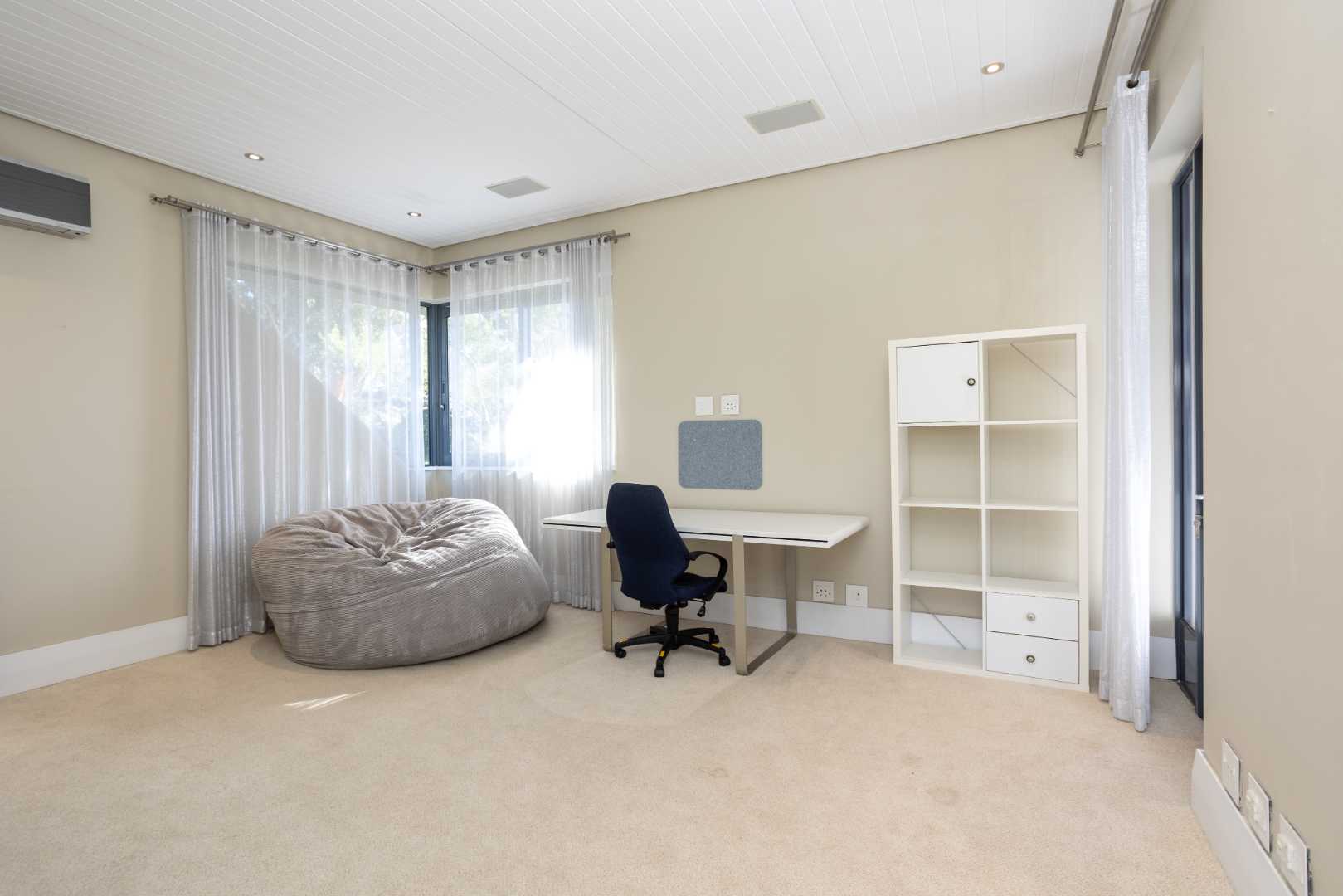 The spacious kitchen is thoughtfully designed for modern family living. It flows into a relaxed breakfast nook, a formal dining area and an outdoor braai patio, creating an inviting space for hosting and everyday moments alike. A separate scullery enhances the practicality of the space, offering ample storage and premium integrated appliances.