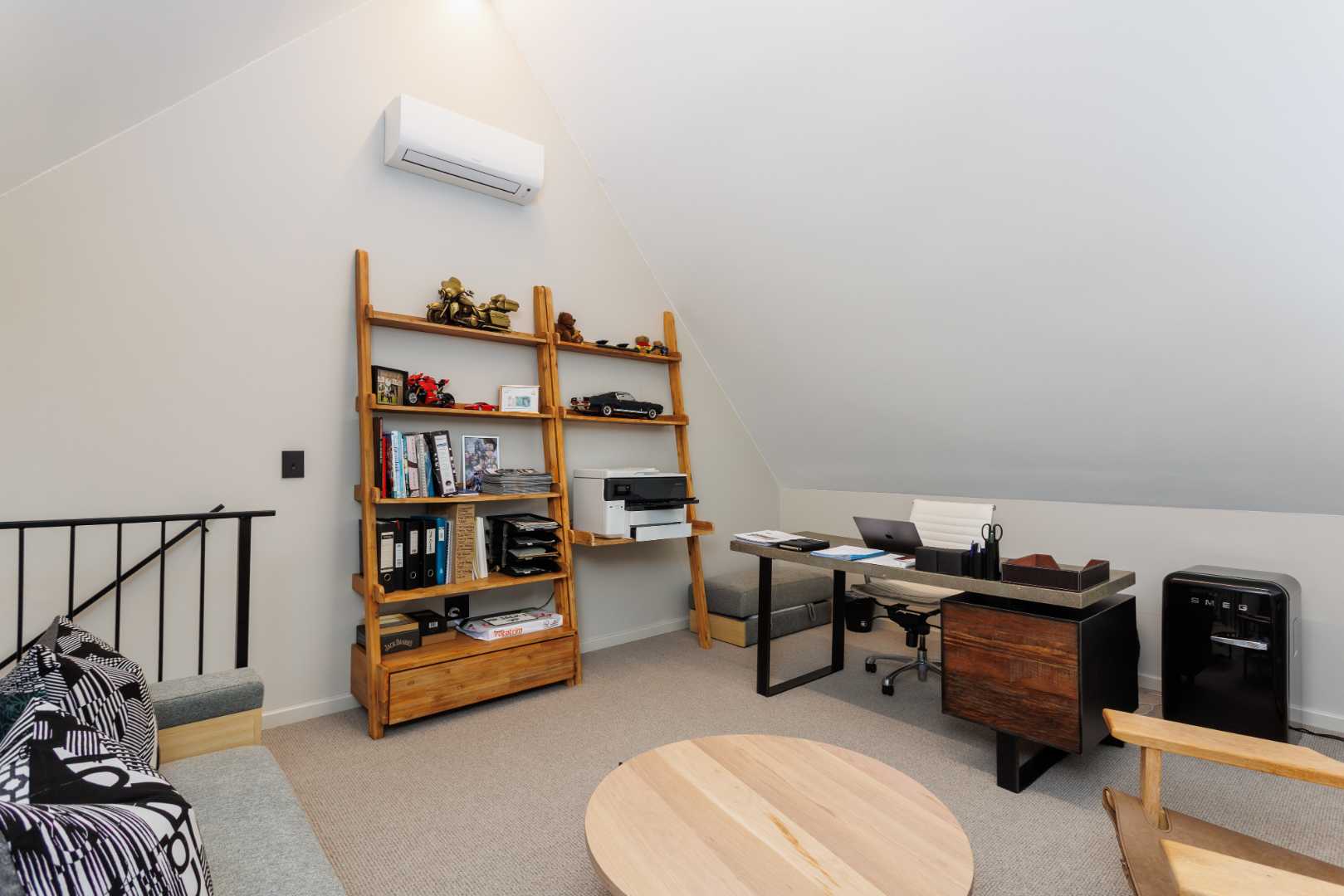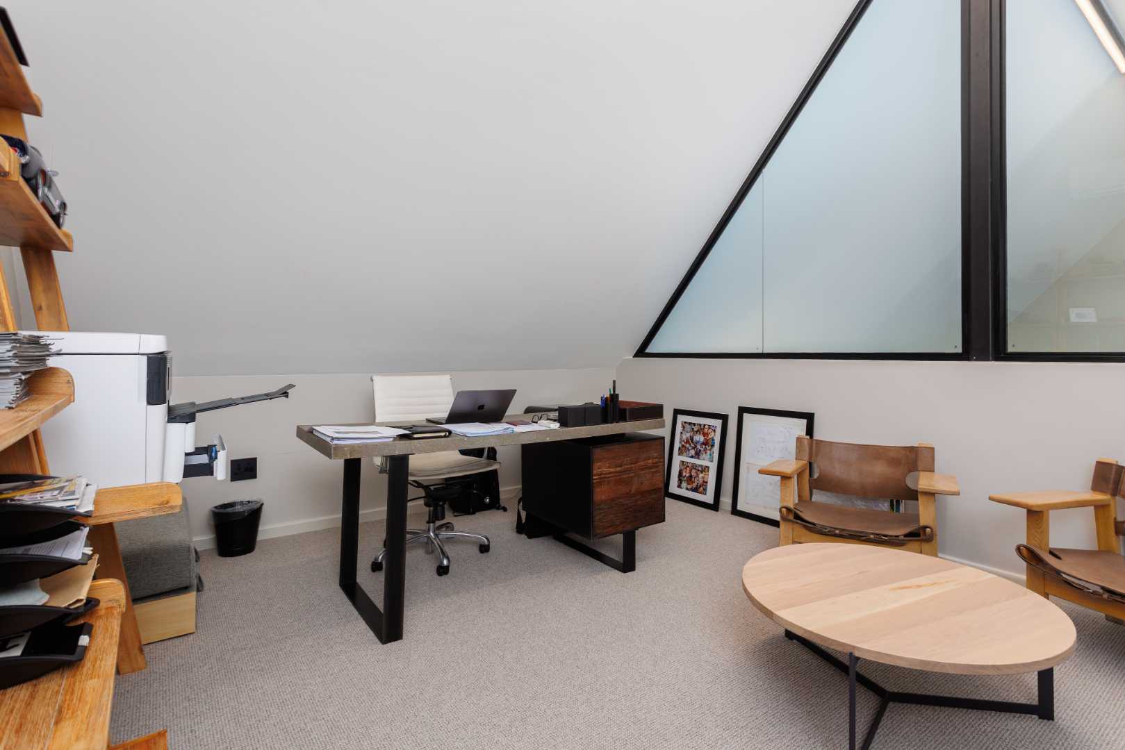 A 30-panel solar array, a 16kVA inverter and a battery backup system provide the convenience of off-grid living. Additional comforts include an automated integrated sound system, air conditioning throughout, hidden dimmable lighting with dedicated art spots and a wood-burning fireplace for cosy winter evenings. Outside, a fire pit with mountain views invites memorable moments under the stars.