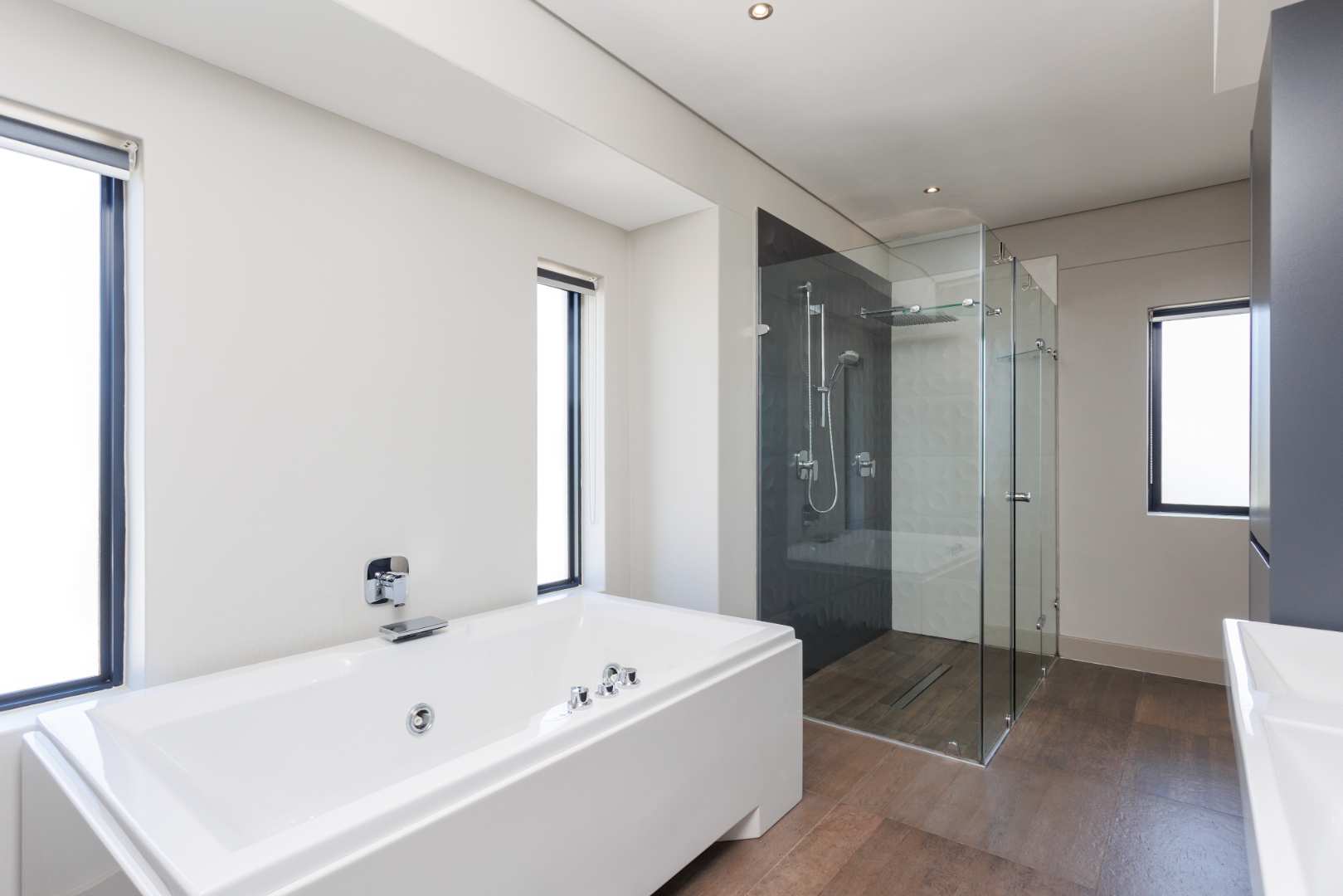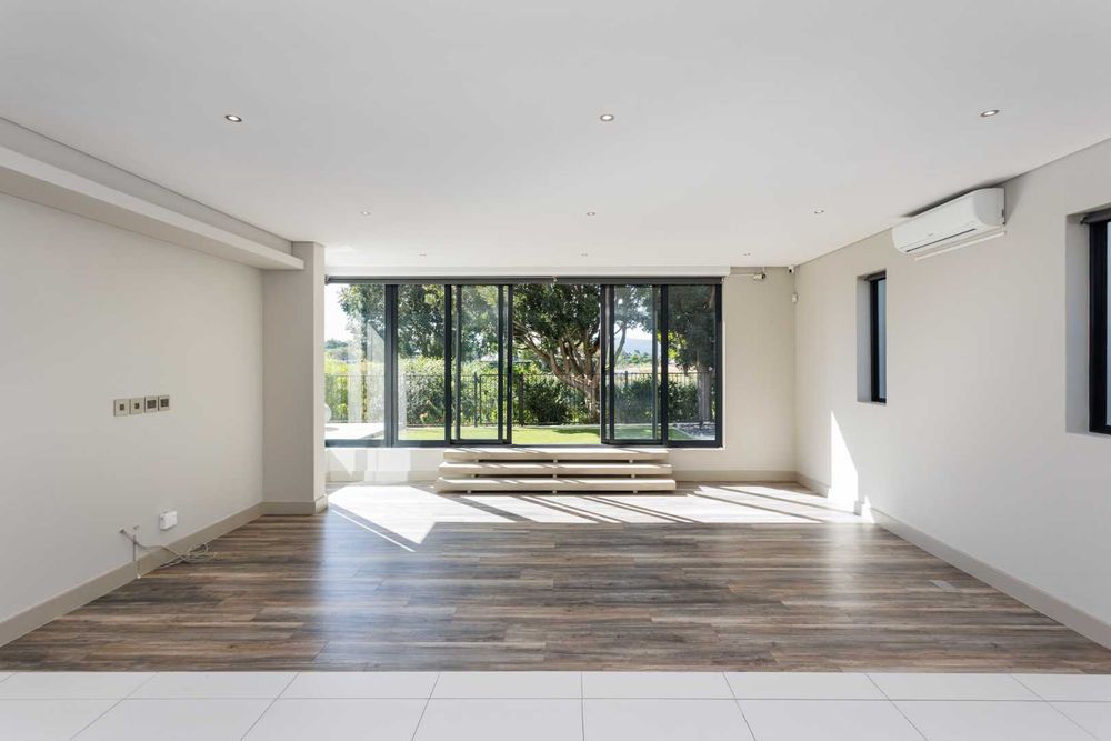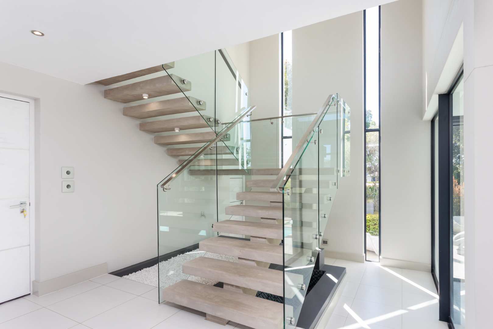 A dedicated study creates the perfect workspace for those who work from home, complete with built-in cabinetry and air-conditioning for year-round comfort. The upper gallery wall connects to an expansive balcony that overlooks Paarl Rock.