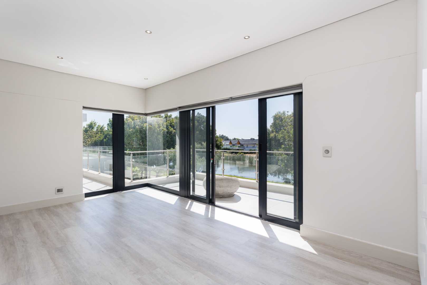 The open-plan living and dining area is spacious and beautifully appointed. Expansive glass doors slide open to reveal a sun-soaked terrace and pool deck overlooking the shimmering lake. Automatic blinds, air-conditioning and a wood-burning fireplace ensure comfort throughout the year.