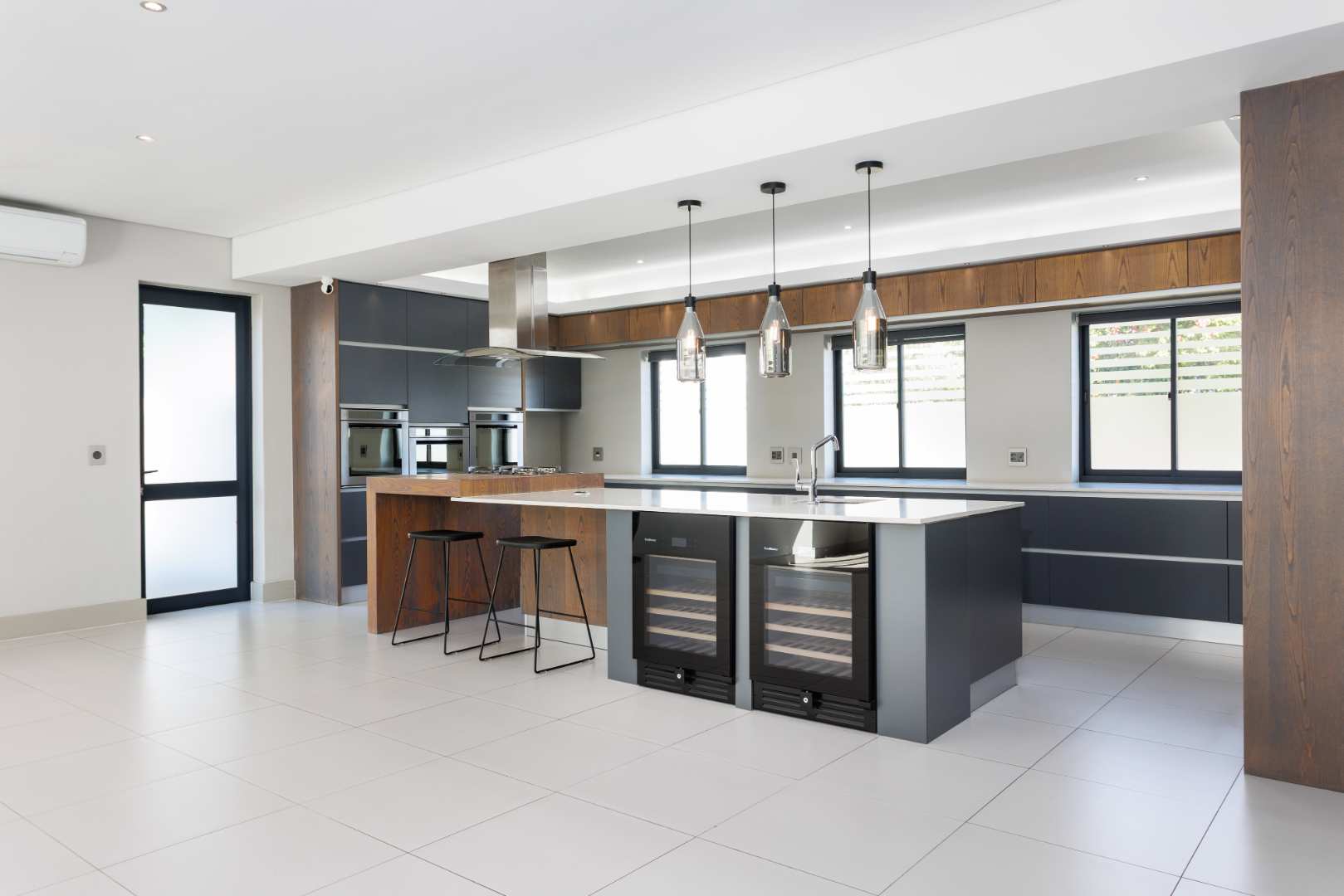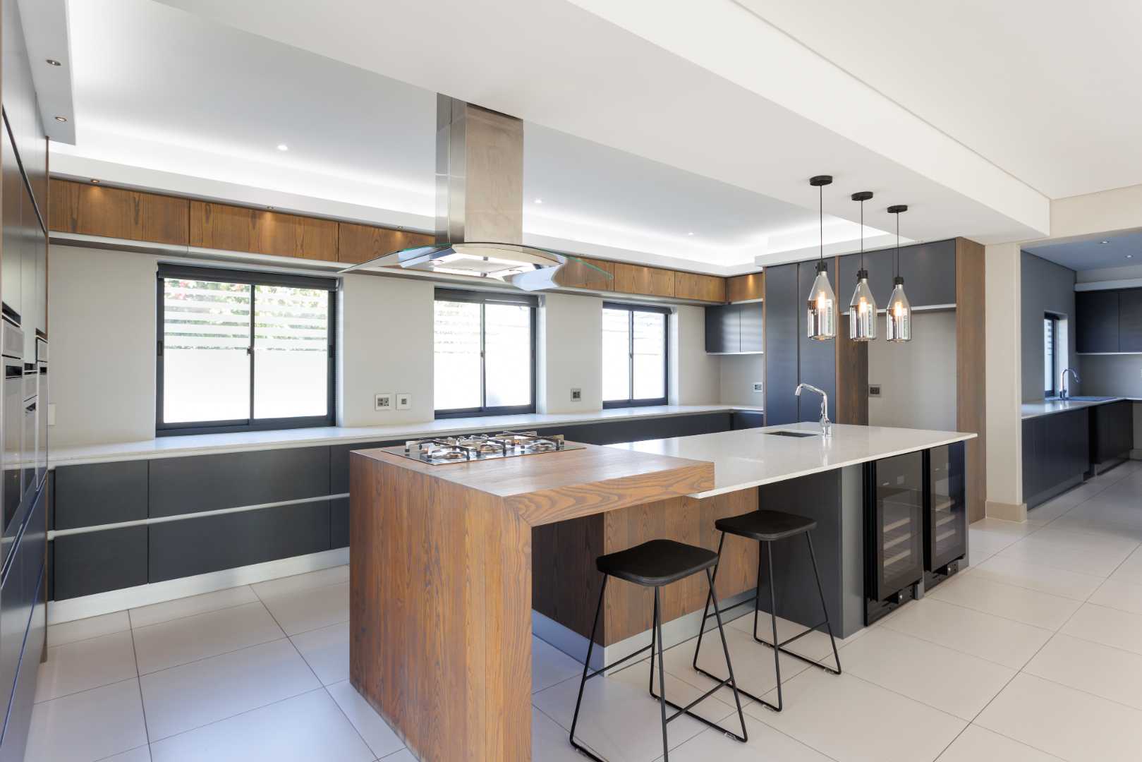 At the heart of the home lies a contemporary kitchen designed with precision and purpose. Featuring two Snomaster wine fridges, a gas hob and integrated Xelium Whirlpool ovens and a microwave. The adjoining scullery and walk-in pantry provide additional space while maintaining the clean, streamlined aesthetic. This kitchen flows naturally into the dining and living areas, making it ideal for entertaining that extends from crafting master chef-worthy dishes to relaxing evenings shared with friends.