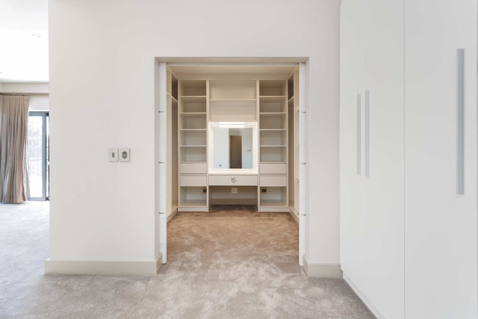 Upstairs, the home offers three beautifully finished en-suite bedrooms, each one crafted for comfort and privacy. The main bedroom is a peaceful space, complete with plush carpets, a walk-in wardrobe and a luxurious bathroom featuring double basins and a Jacuzzi bath. The private balcony overlooks the lake and fairway, capturing the gentle stillness of early mornings and golden sunsets. Both additional bedrooms feature built-in cupboards, air conditioning and an elegant en-suite, opening onto their own balcony. On the ground level, a guest suite with an en-suite bathroom, built-in desk, air-conditioning and private outside entrance provides flexibility for visiting family or guests seeking additional privacy.