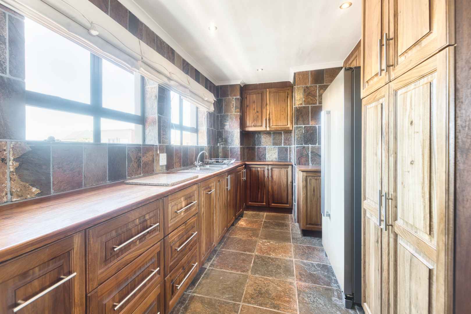 Spacious 4-bedroom home offering exceptional entertainment and flexibility. The top floor features an open-plan lounge, dining area and kitchen with built-in braai. Stacker doors open to a large deck with ocean views, while a rooftop deck provides 360° views of the ocean, mountains and surrounds. Main bedroom with full en-suite completes this level.