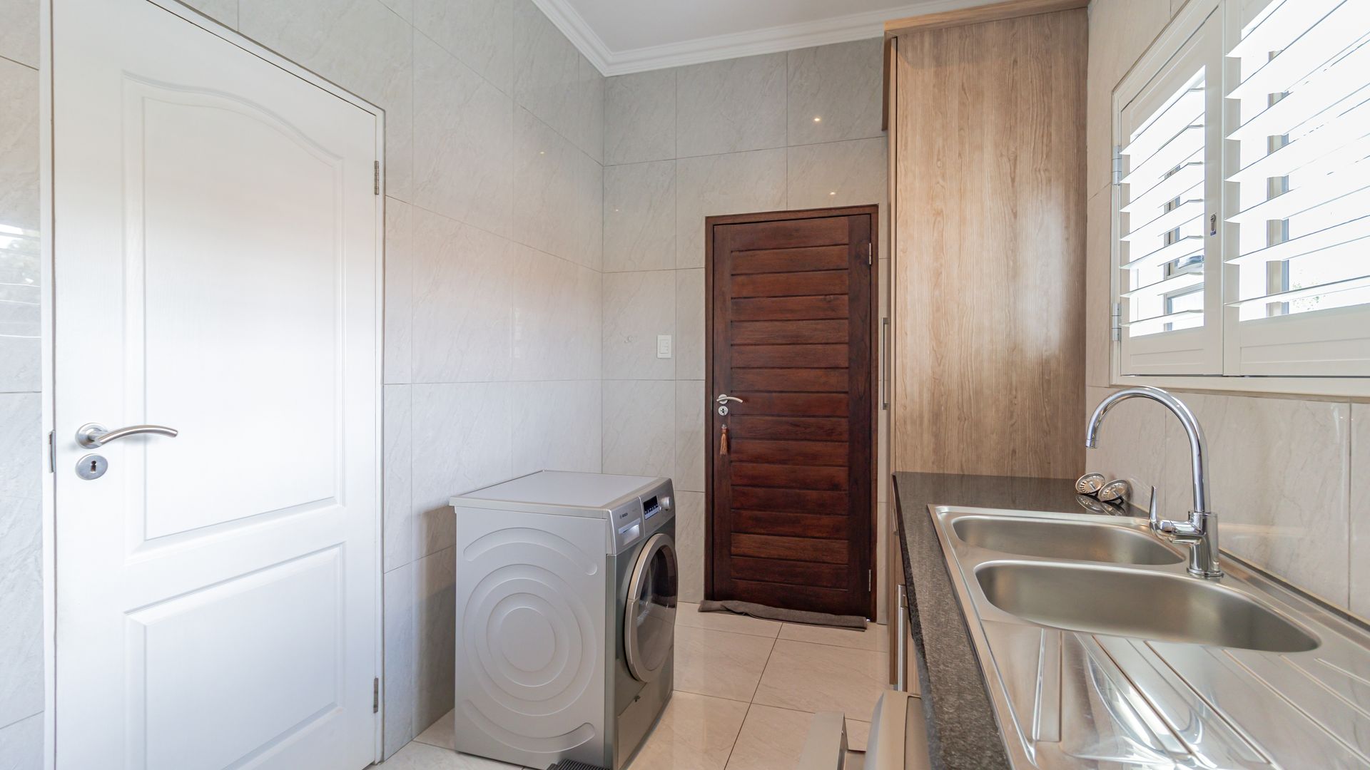 The large well designed kitchen features granite countertops, ample cabinetry and a separate scullery. A convenient laundry adds further comfort.