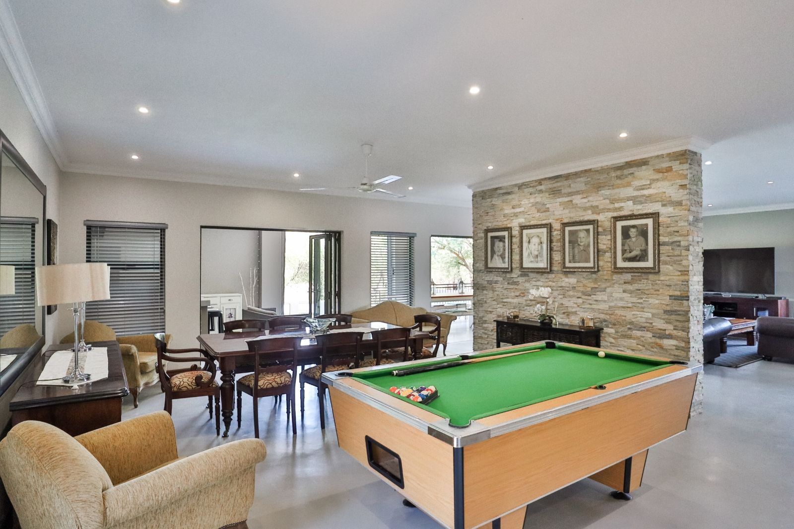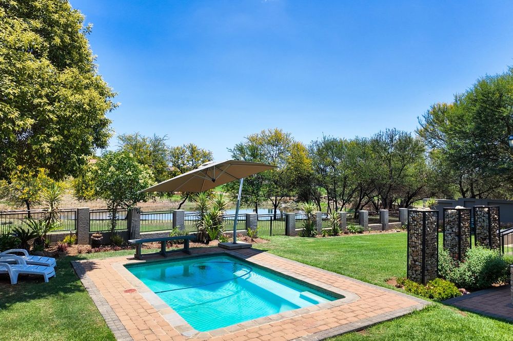 Adding to its charm, the home is surrounded by natural beauty and wildlife, with roaming springbok, impala, and nyala adding a unique touch to daily living. Whether you’re enjoying morning coffee on the patio or relaxing by the pool, the captivating views of the dam and golf course greens create an unparalleled sense of peace and tranquility.