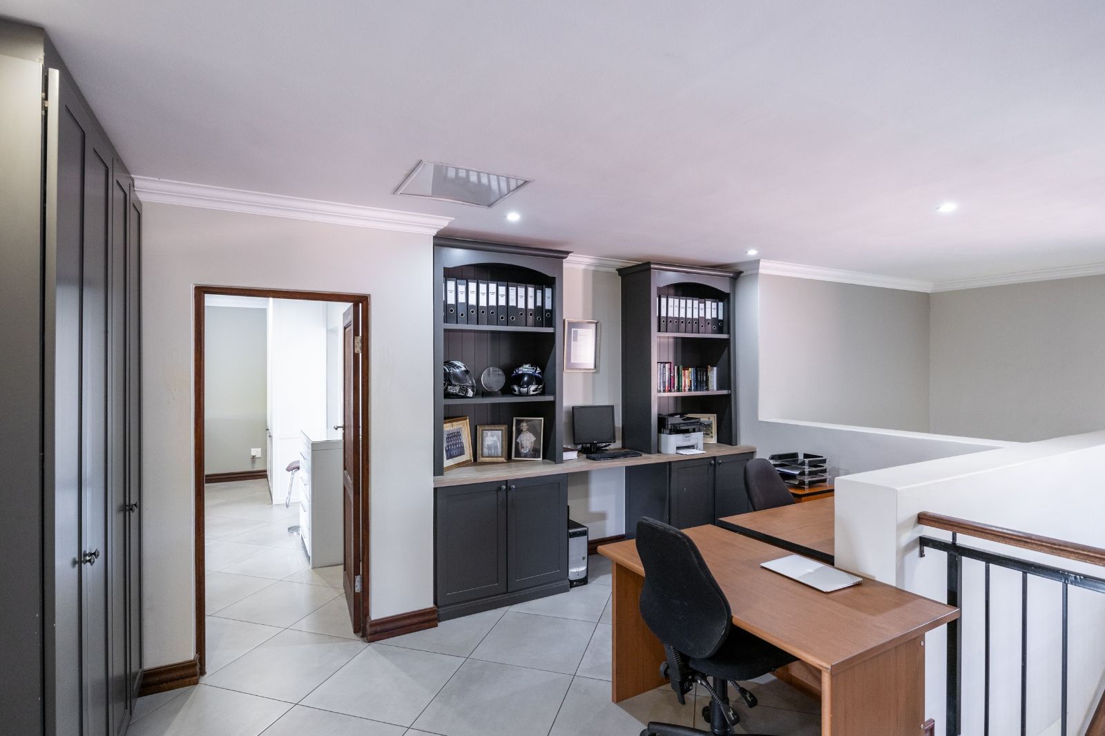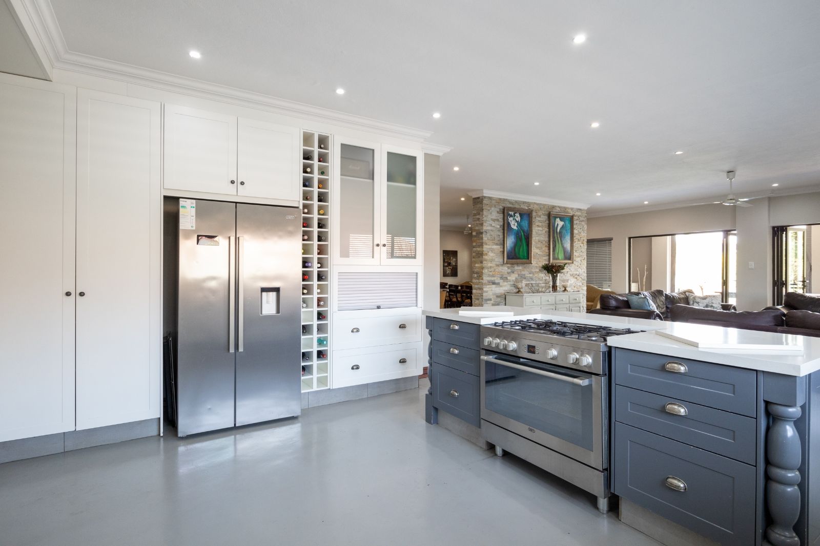The home welcomes you with expansive open-plan living areas that seamlessly blend relaxation and sophistication. The designer kitchen, a centerpiece of the home, features top-of-the-line finishes, a spacious scullery, and a walk-in pantry to cater to all your culinary needs. The adjoining dining and lounge areas create a cohesive space, ideal for both intimate family moments and grand gatherings.