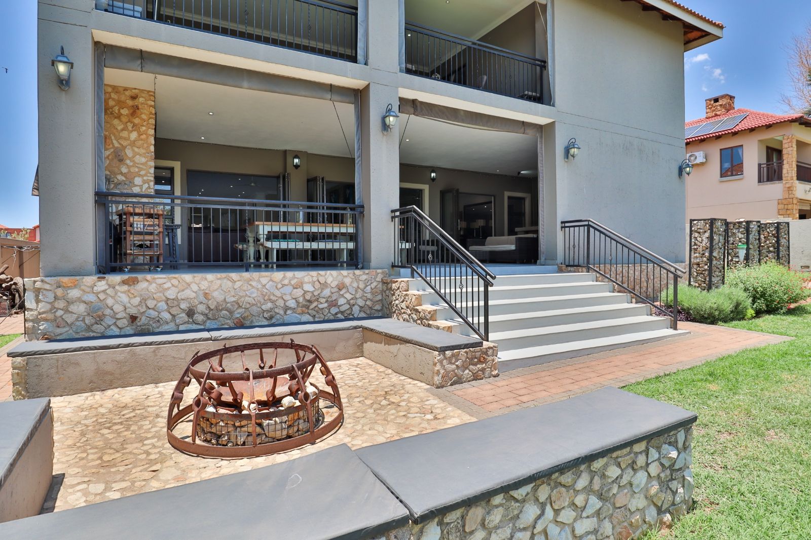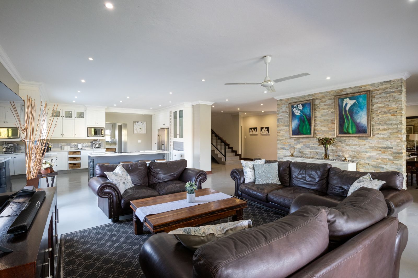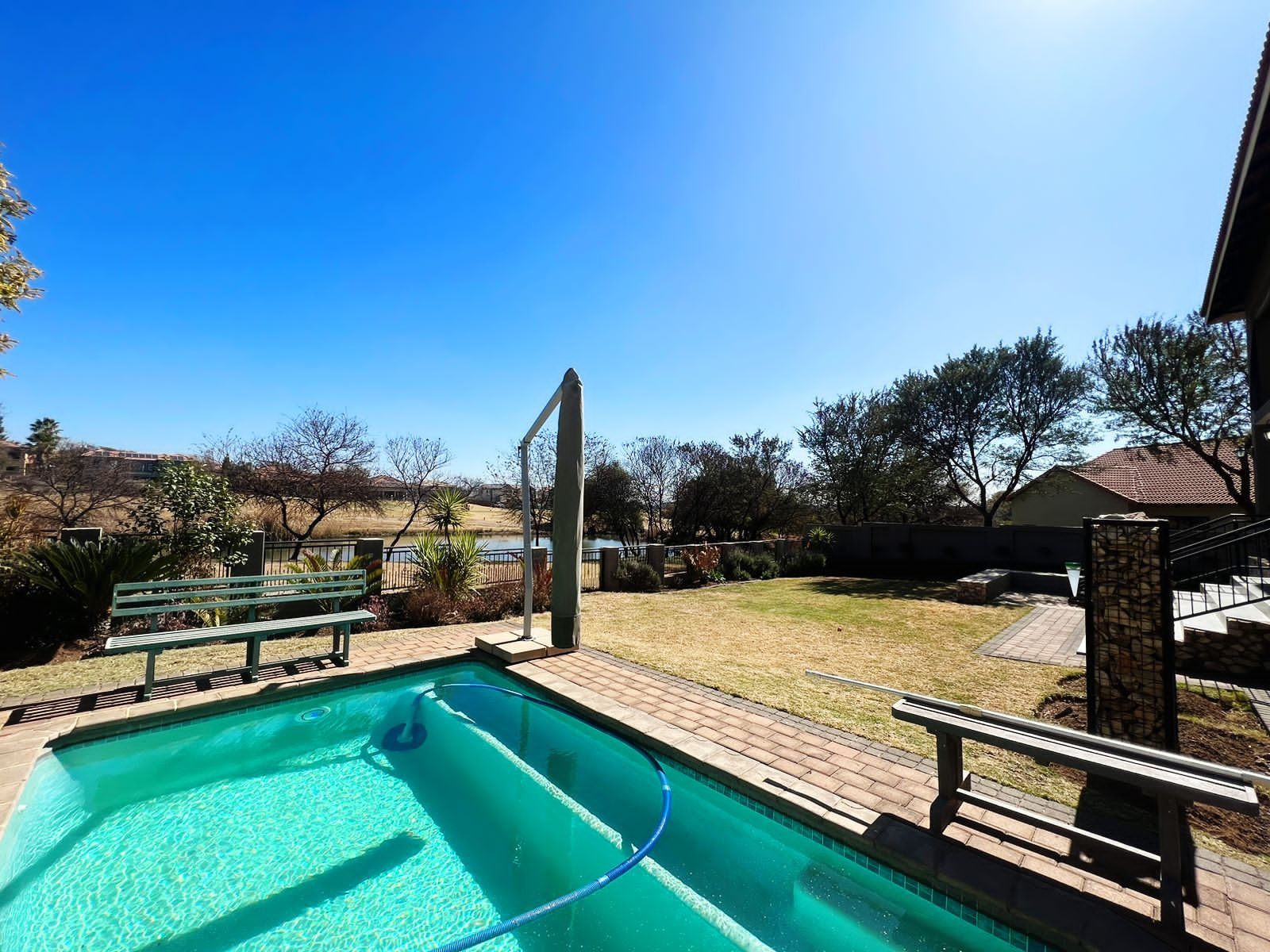 Discover the pinnacle of refined living in this exquisite 5-bedroom, 3-bathroom home designed for comfort, style, and entertaining. Set in a serene location with panoramic views of a tranquil dam and two lush golf course greens, this property is perfect for a large family or those who love to host.