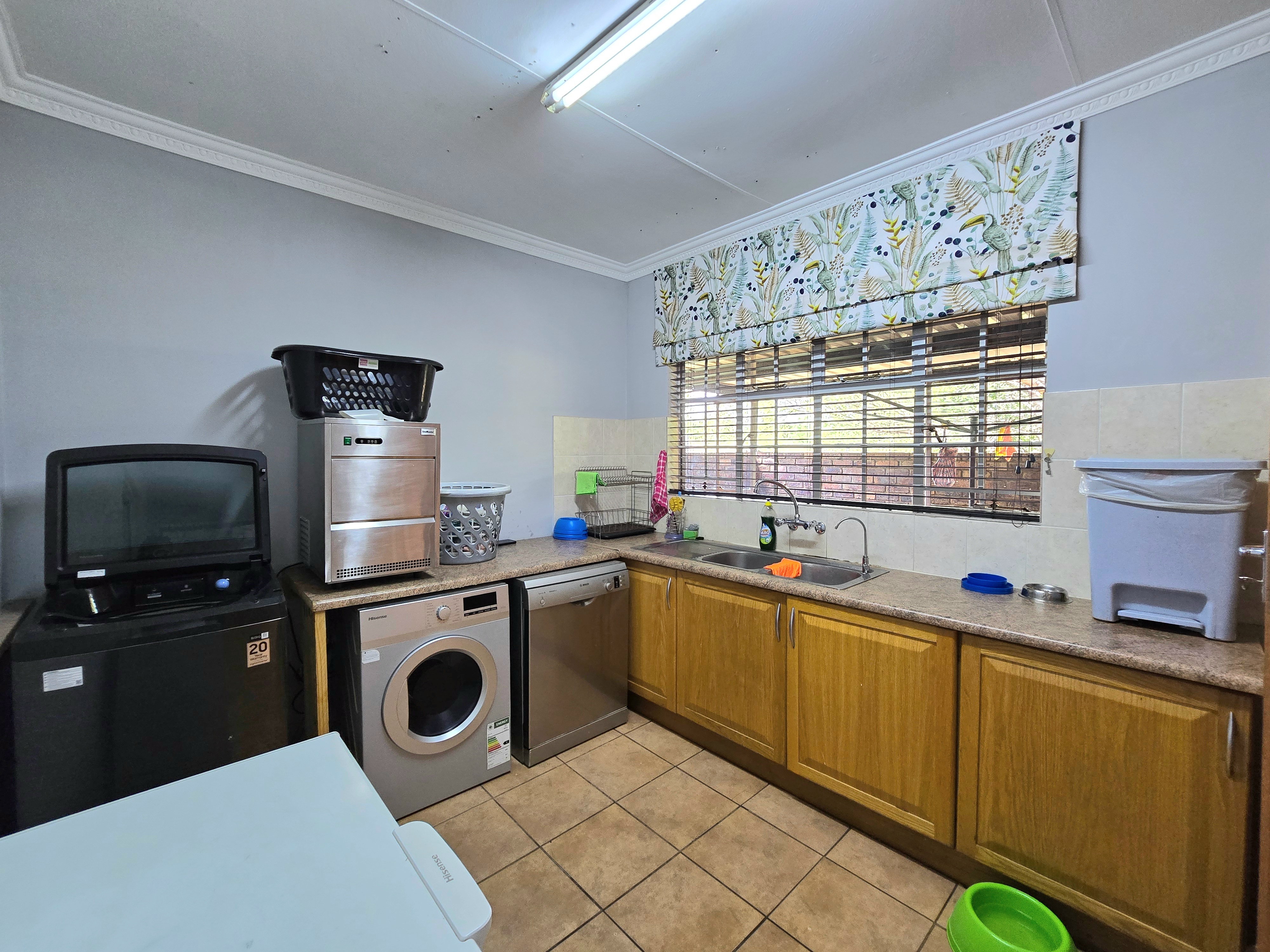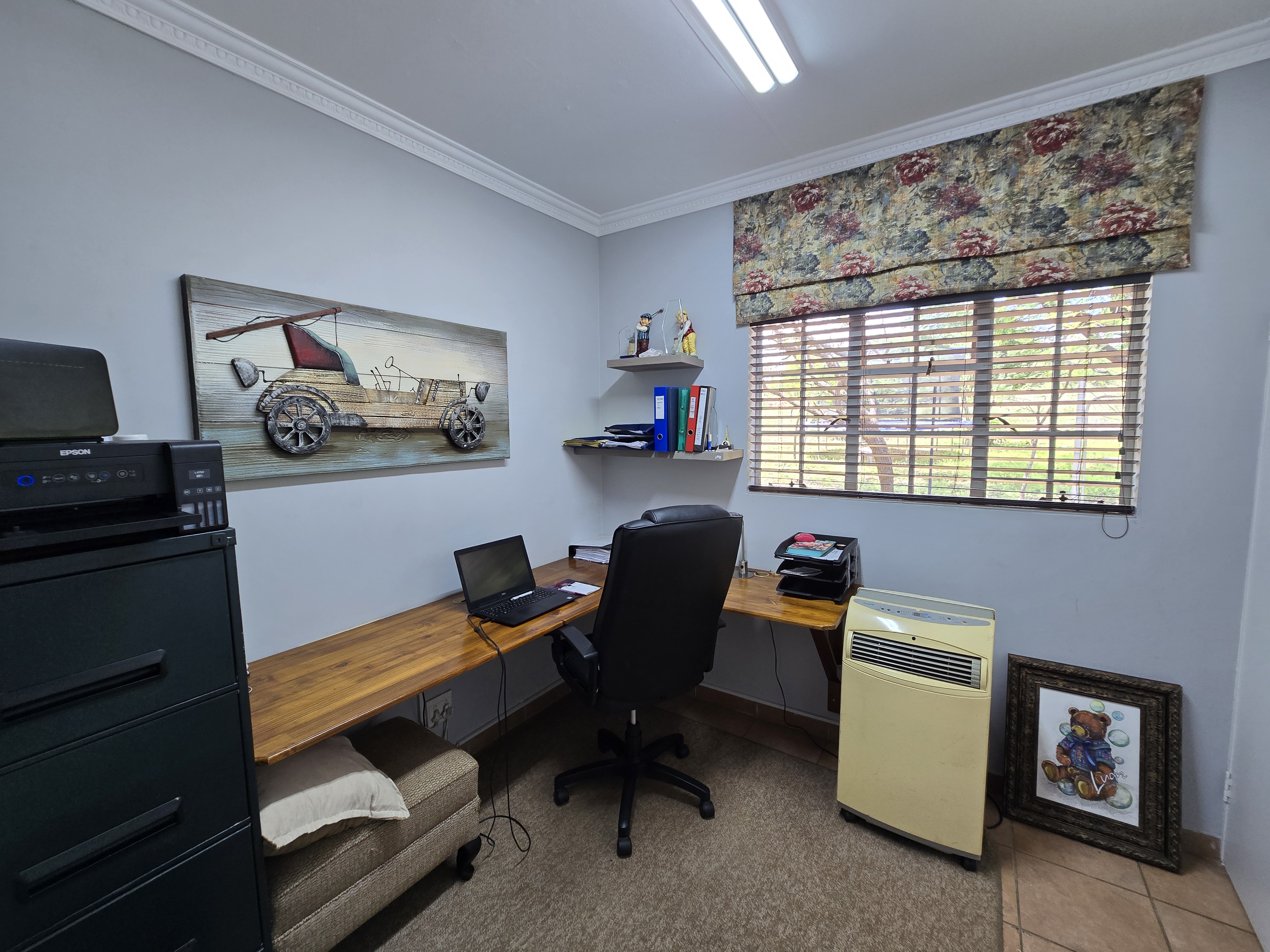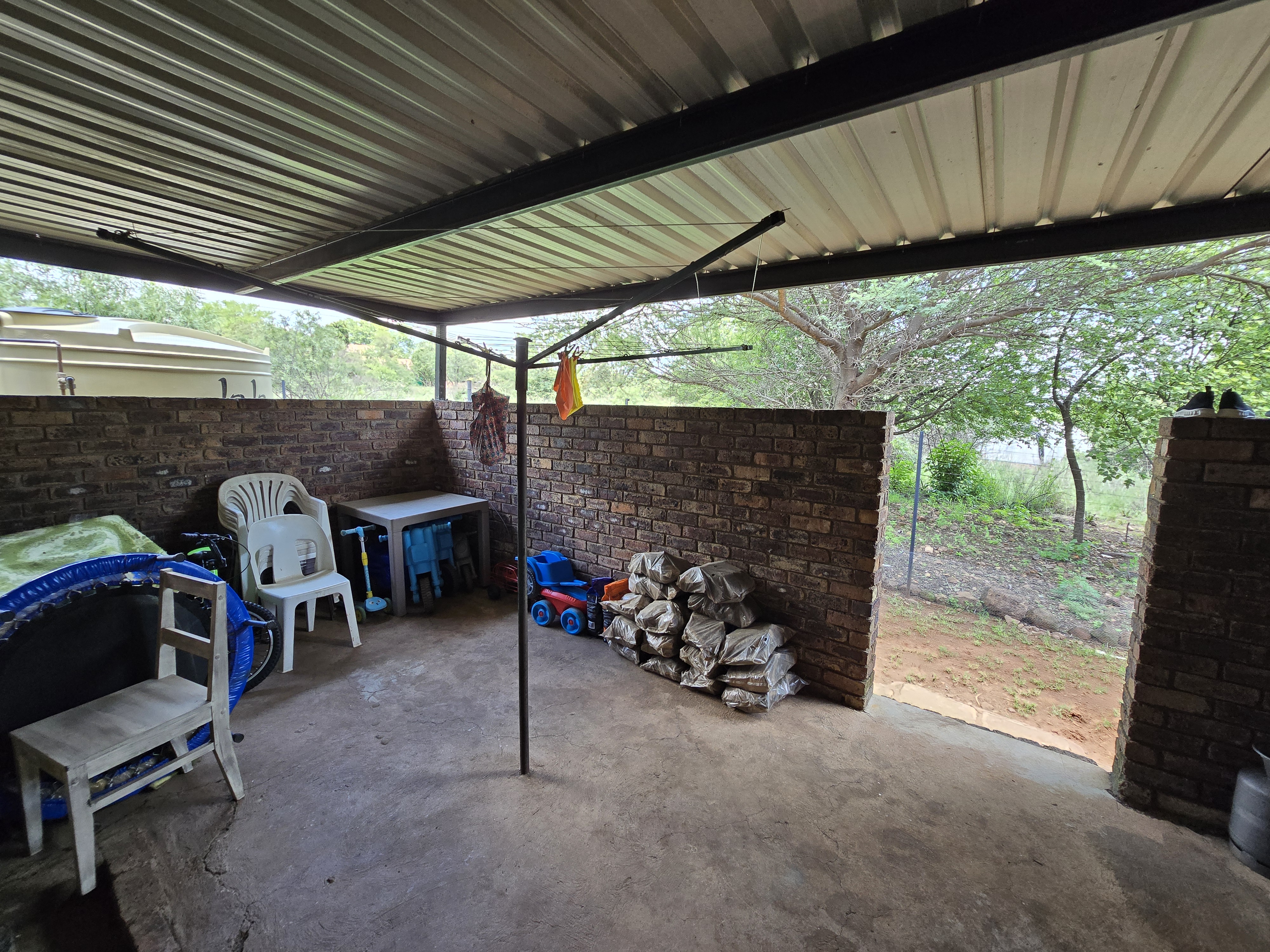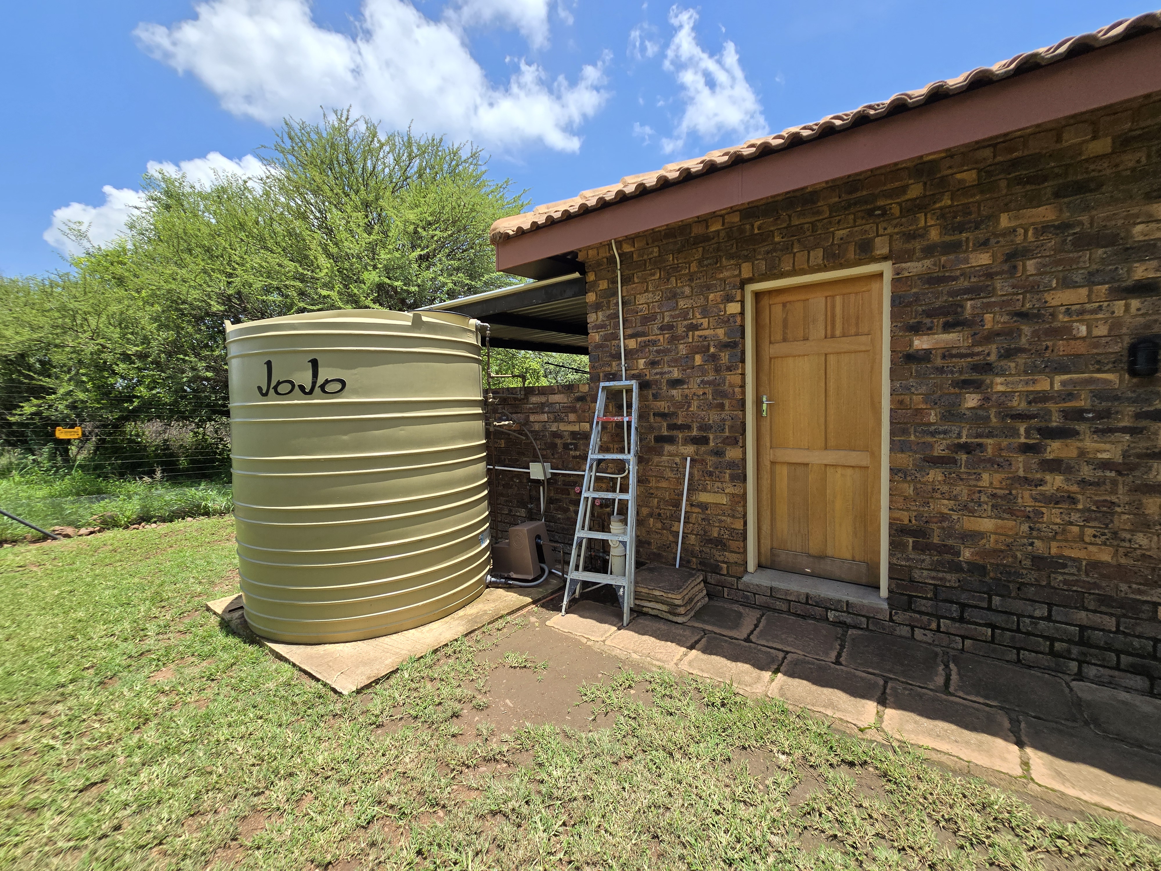 Practicality meets convenience with this fully fenced property, complete with an automated gate. A greenhouse with its own water tank and pump makes gardening a breeze, while a 5000-liter water tank and filtration system ensure a reliable water supply to the home. Additional storage is provided by a separate Wendy house and toolshed.