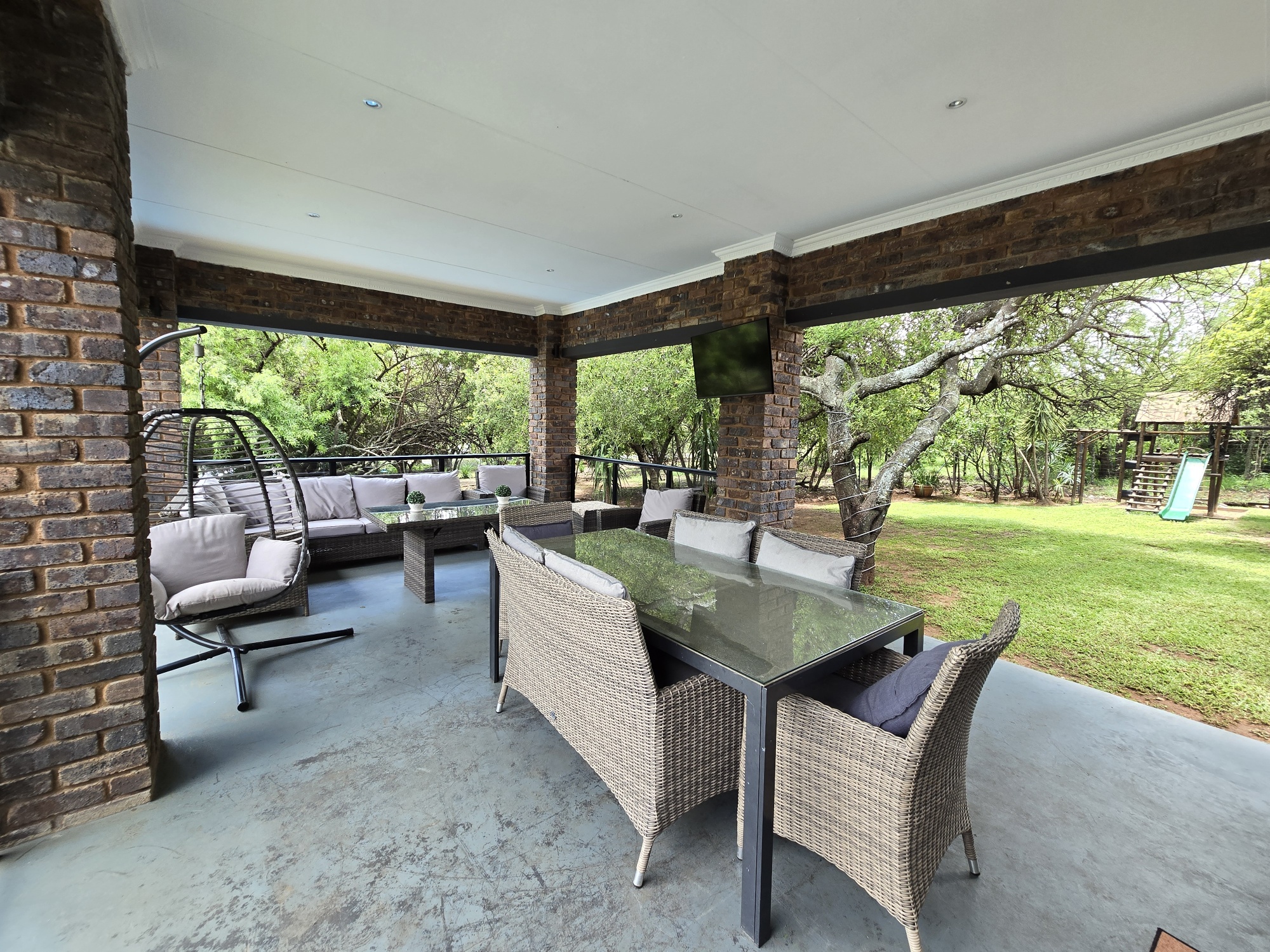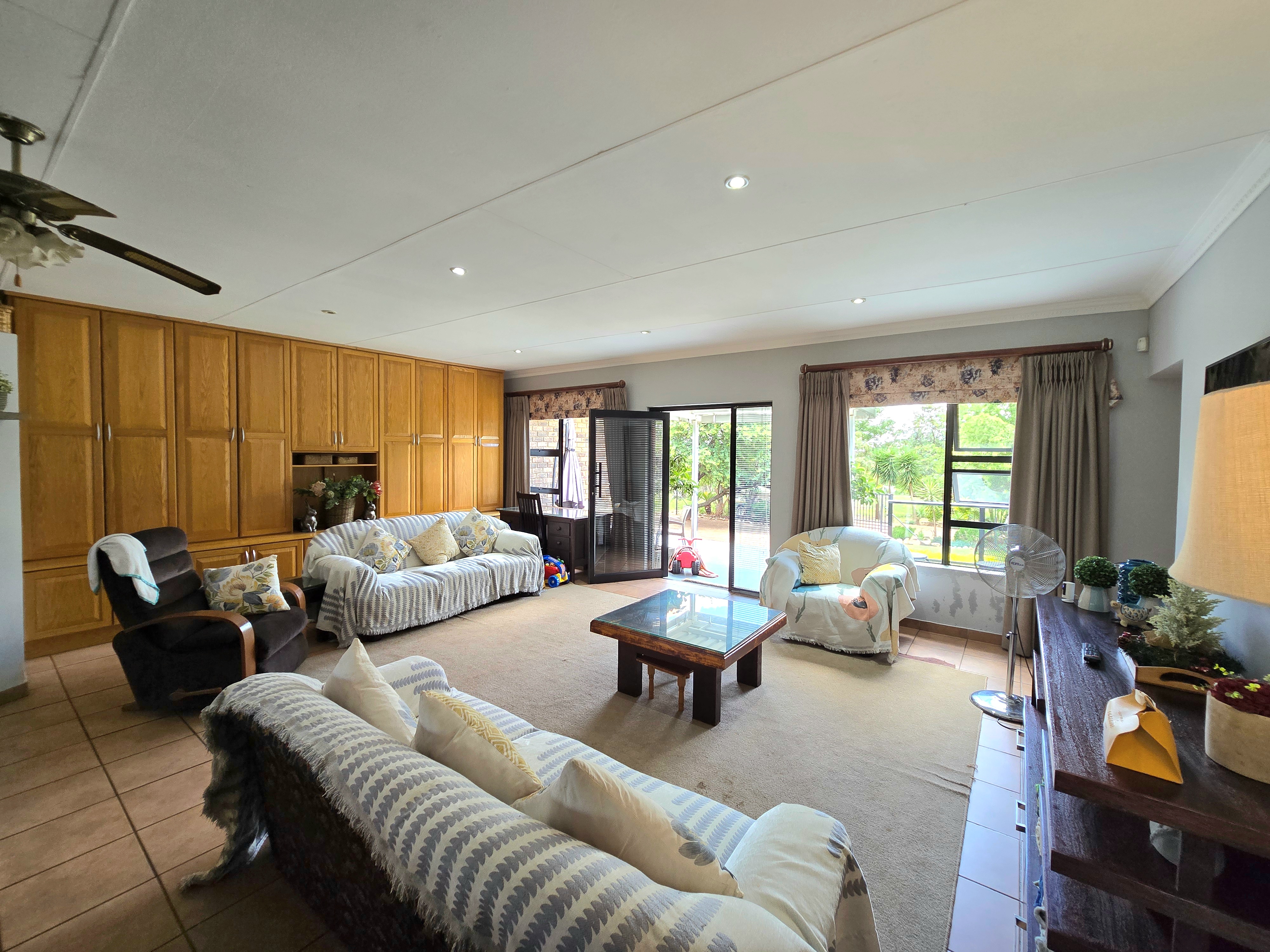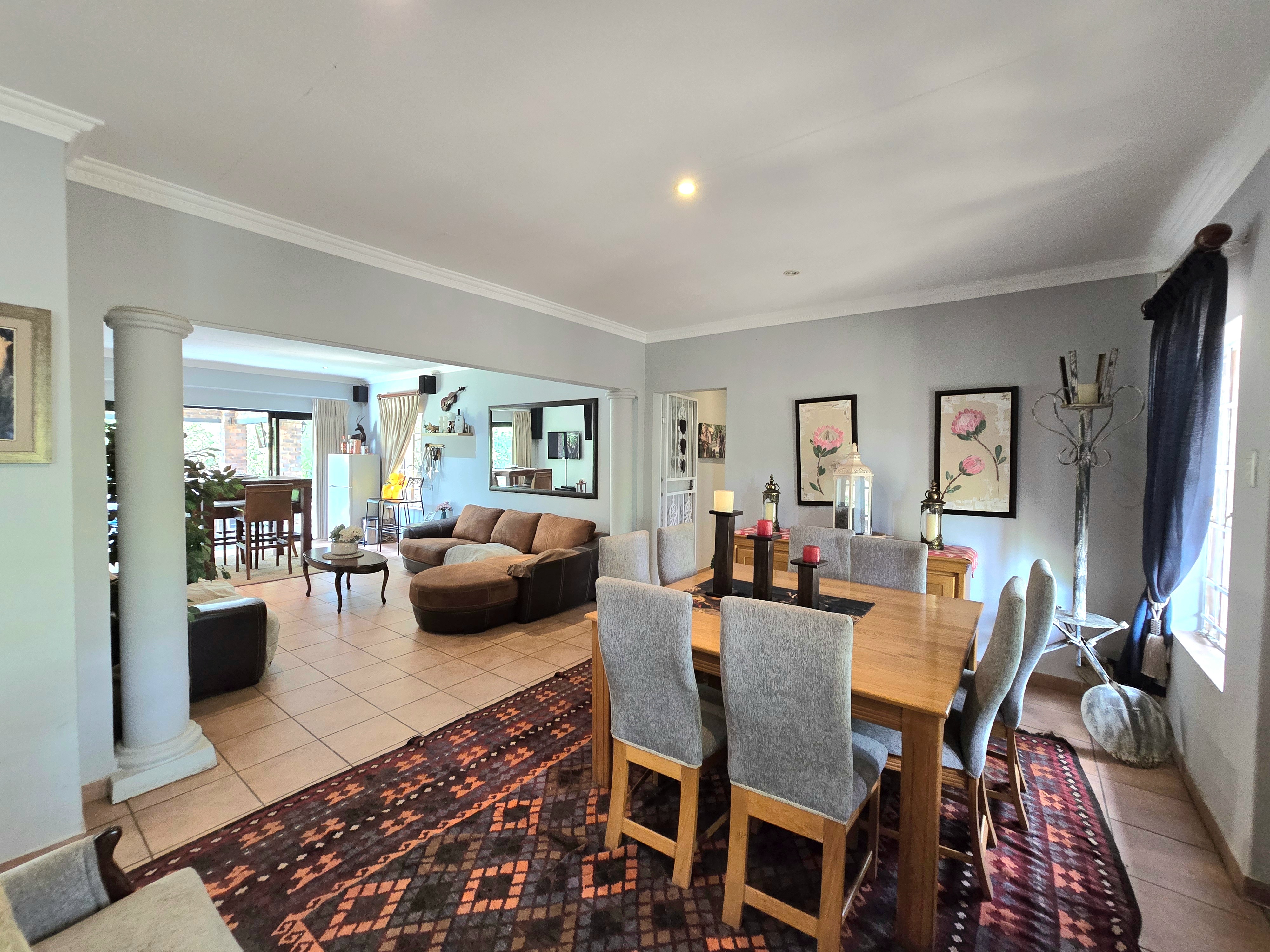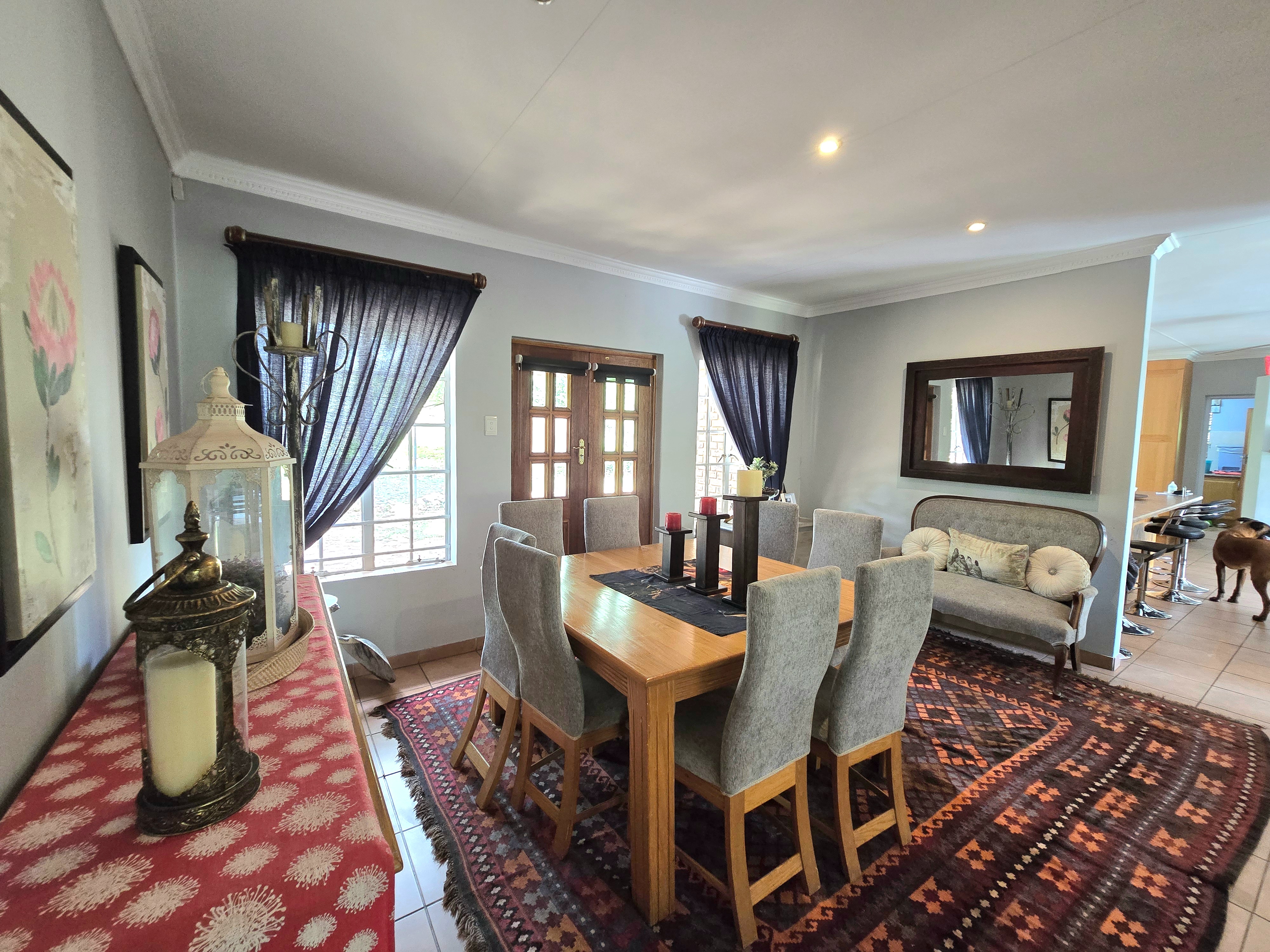 The house features 4 generously sized bedrooms and 3 full bathrooms, 2 of which are en-suite. Two lounges and two dining areas provide ample space for family living and entertaining. The heart of the home is the spacious central kitchen, complete with a separate scullery and a walk-in pantry. Step outside to the entertainment patio, where you can unwind while taking in the stunning natural surroundings.