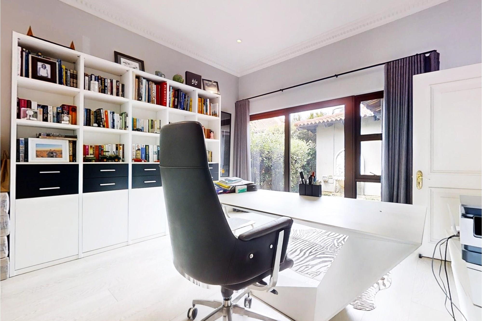 The open-plan kitchen is both functional and elegant, accompanied by a generous separate scullery/laundry room. In the west wing, you`ll find the luxurious master bedroom with an en-suite full bathroom, and a dedicated work-from-home office. The second and third bedroom share a full bathroom.