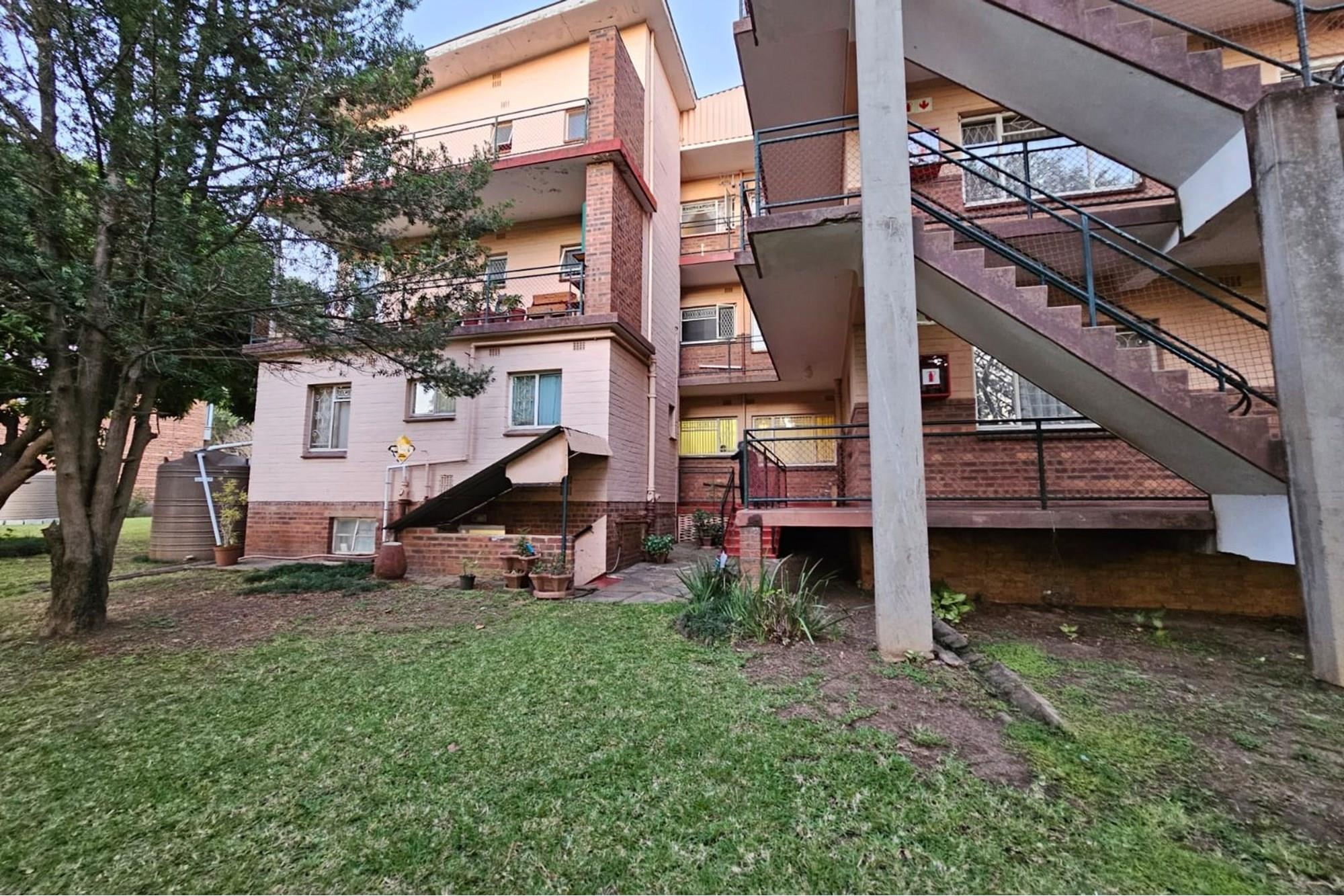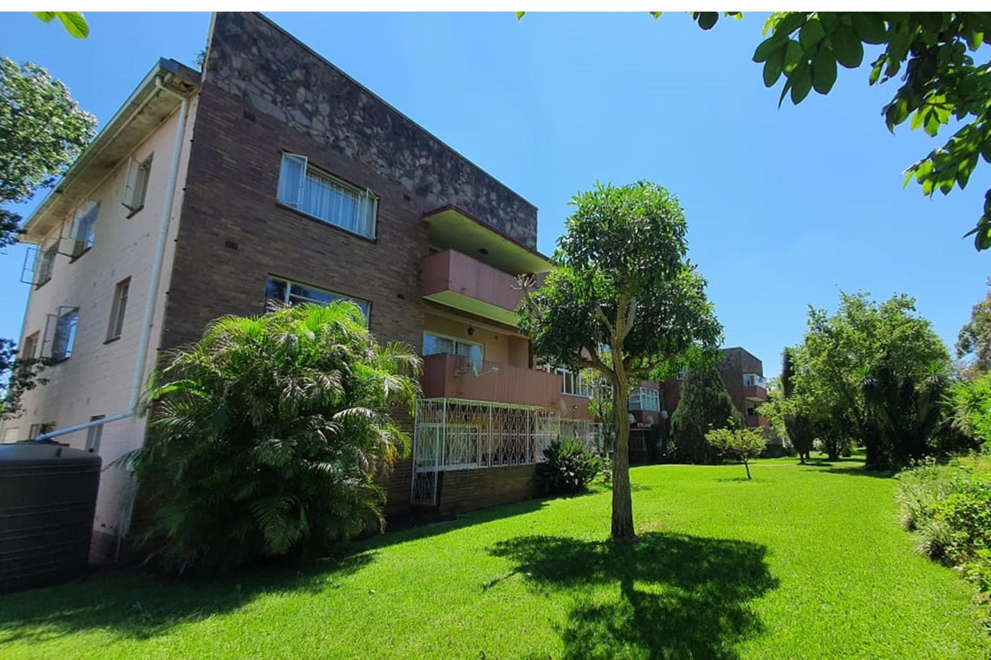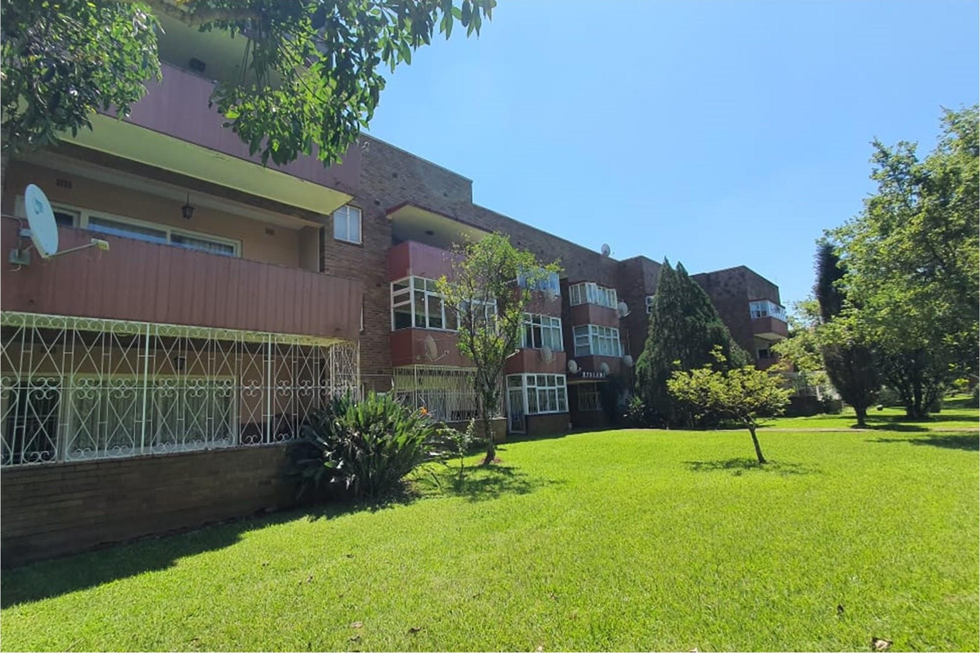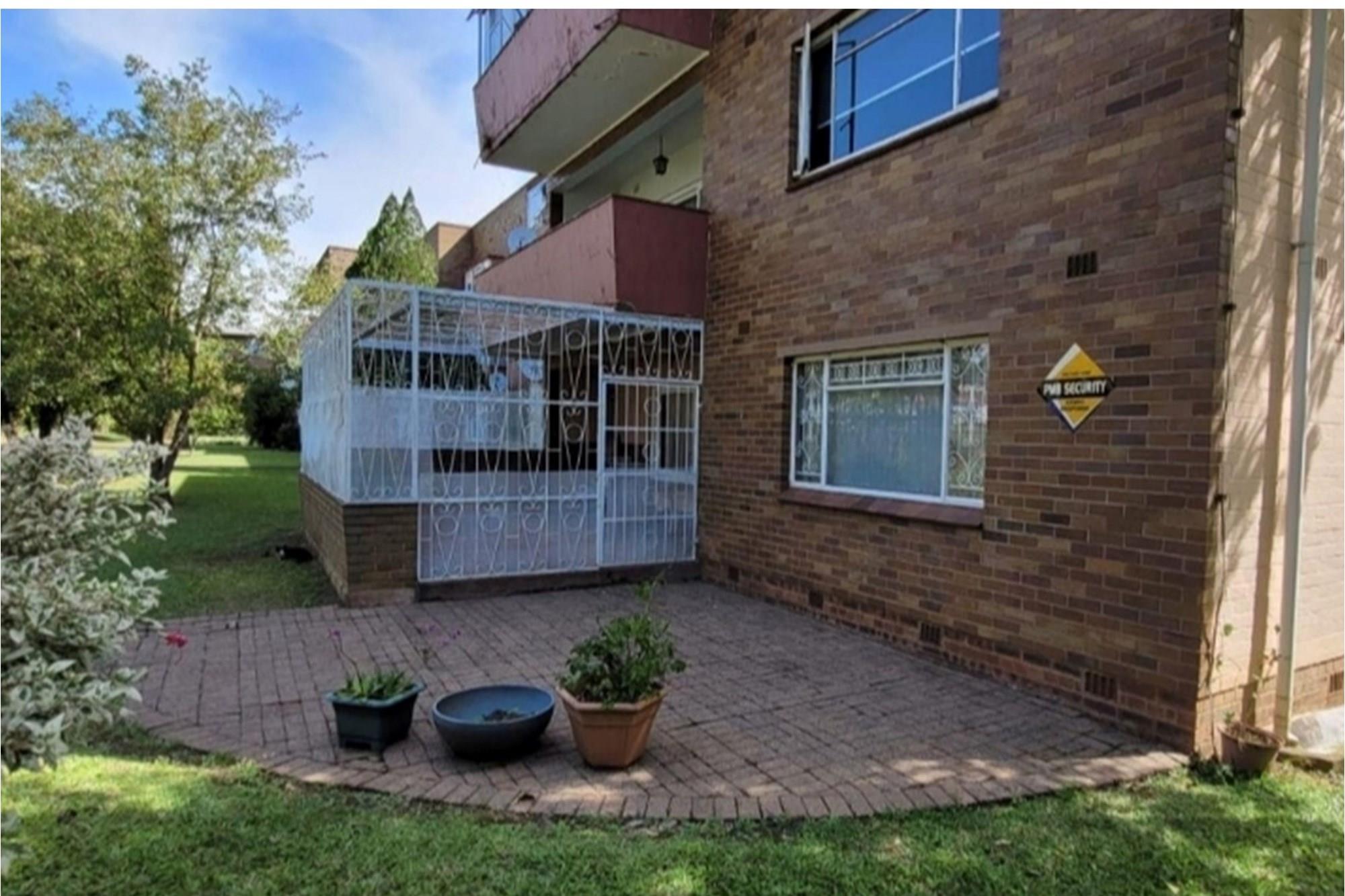 PRICE REDUCED Urgently need to sell. Situated in a park like garden and right at the beginning of this block of flats, without any walk past traffic you will find this beautiful airy and spacious flat that oozes neatness from the time you enter through the cozy entrance hall. I am sure at inception of this flat, this unit was built for the superintendent of the complex. Consists of 2 good sized Bedrooms fitted with lots of cupboard space and ceiling fans, a dining room which could be converted back to a 3rd bedroom, 2 1/2 bathrooms, main ensuite, fully fitted modern kitchen and dinette, a big lounge that opens onto a secure enclosed patio. The sealed, glistering wooden floors and high ceilings just add to the charm and warmth of this inviting flat. Now there is more to it than this. There is a spacious 1 bedroom flatlet with a kitchen, bathroom and storeroom attached to it. All neatly tiled and inviting. Where do you ever find that? The income from the flatlet covers your levies and more! Now the cherry on the top is that you will own 3 garages which is part of this flat. Now all in all you are able to rake up an additional income of R4800 from the flatlet and R500 from the garage. Again I ask. Where else will you find this? Then its LOCATION, LOCATION. LOCATION! Situated opposite the ever popular Girls High School and a walk down the road from Maritzburg College as well as Alex High School. A little further down the road you have the Woodburn shopping centre eg. Woolworths, Checkers, Pick n Pay clothing store etc. May I invite you to view this beauty. Call me today to arrange an appointment and to avoid disappointment. I can assure you it will be whipped up in a jiffy.
