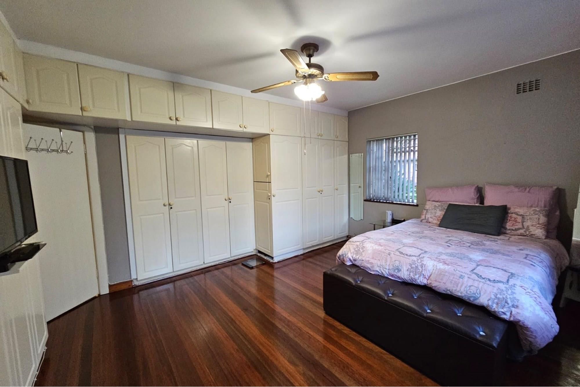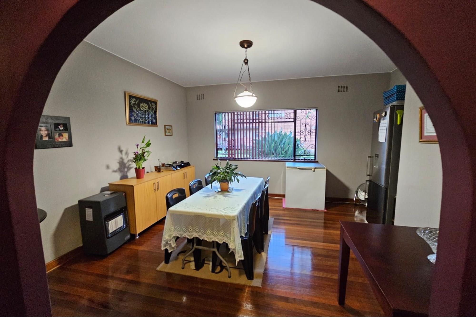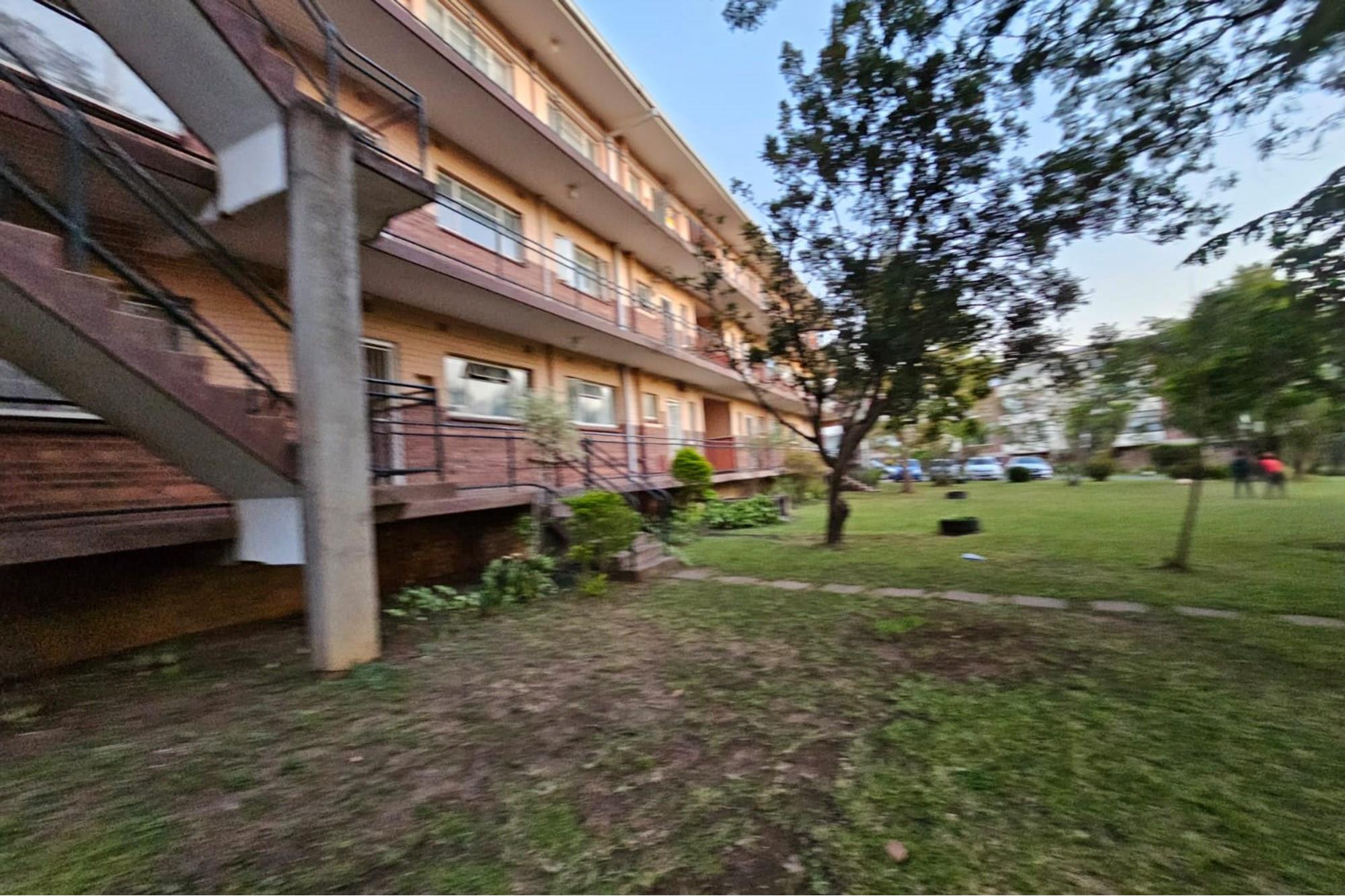 PRICE REDUCED Urgently need to sell. Situated in a park like garden and right at the beginning of this block of flats, without any walk past traffic you will find this beautiful airy and spacious flat that oozes neatness from the time you enter through the cozy entrance hall. I am sure at inception of this flat, this unit was built for the superintendent of the complex. Consists of 2 good sized Bedrooms fitted with lots of cupboard space and ceiling fans, a dining room which could be converted back to a 3rd bedroom, 2 1/2 bathrooms, main ensuite, fully fitted modern kitchen and dinette, a big lounge that opens onto a secure enclosed patio. The sealed, glistering wooden floors and high ceilings just add to the charm and warmth of this inviting flat. Now there is more to it than this. There is a spacious 1 bedroom flatlet with a kitchen, bathroom and storeroom attached to it. All neatly tiled and inviting. Where do you ever find that? The income from the flatlet covers your levies and more! Now the cherry on the top is that you will own 3 garages which is part of this flat. Now all in all you are able to rake up an additional income of R4800 from the flatlet and R500 from the garage. Again I ask. Where else will you find this? Then its LOCATION, LOCATION. LOCATION! Situated opposite the ever popular Girls High School and a walk down the road from Maritzburg College as well as Alex High School. A little further down the road you have the Woodburn shopping centre eg. Woolworths, Checkers, Pick n Pay clothing store etc. May I invite you to view this beauty. Call me today to arrange an appointment and to avoid disappointment. I can assure you it will be whipped up in a jiffy.