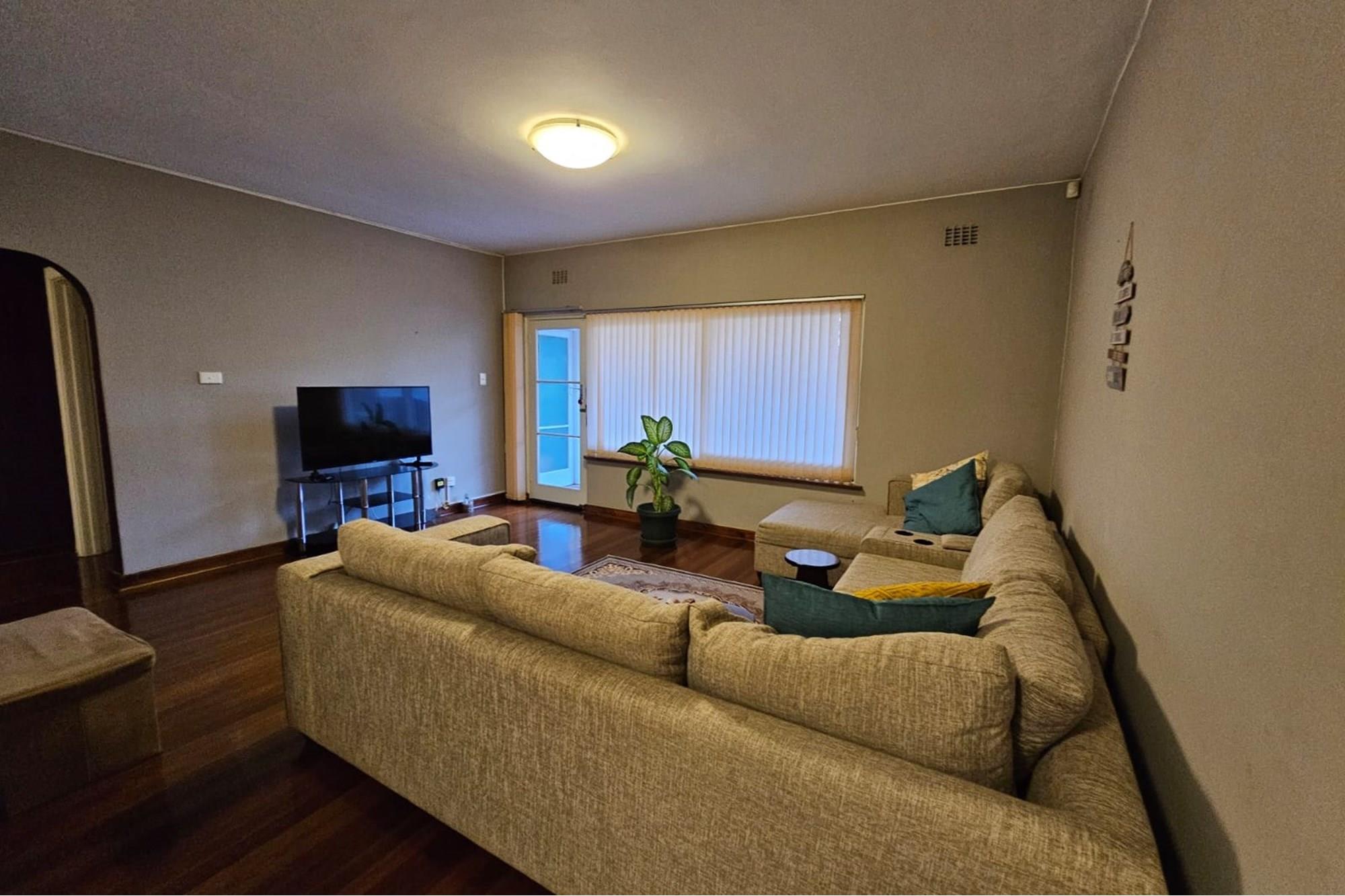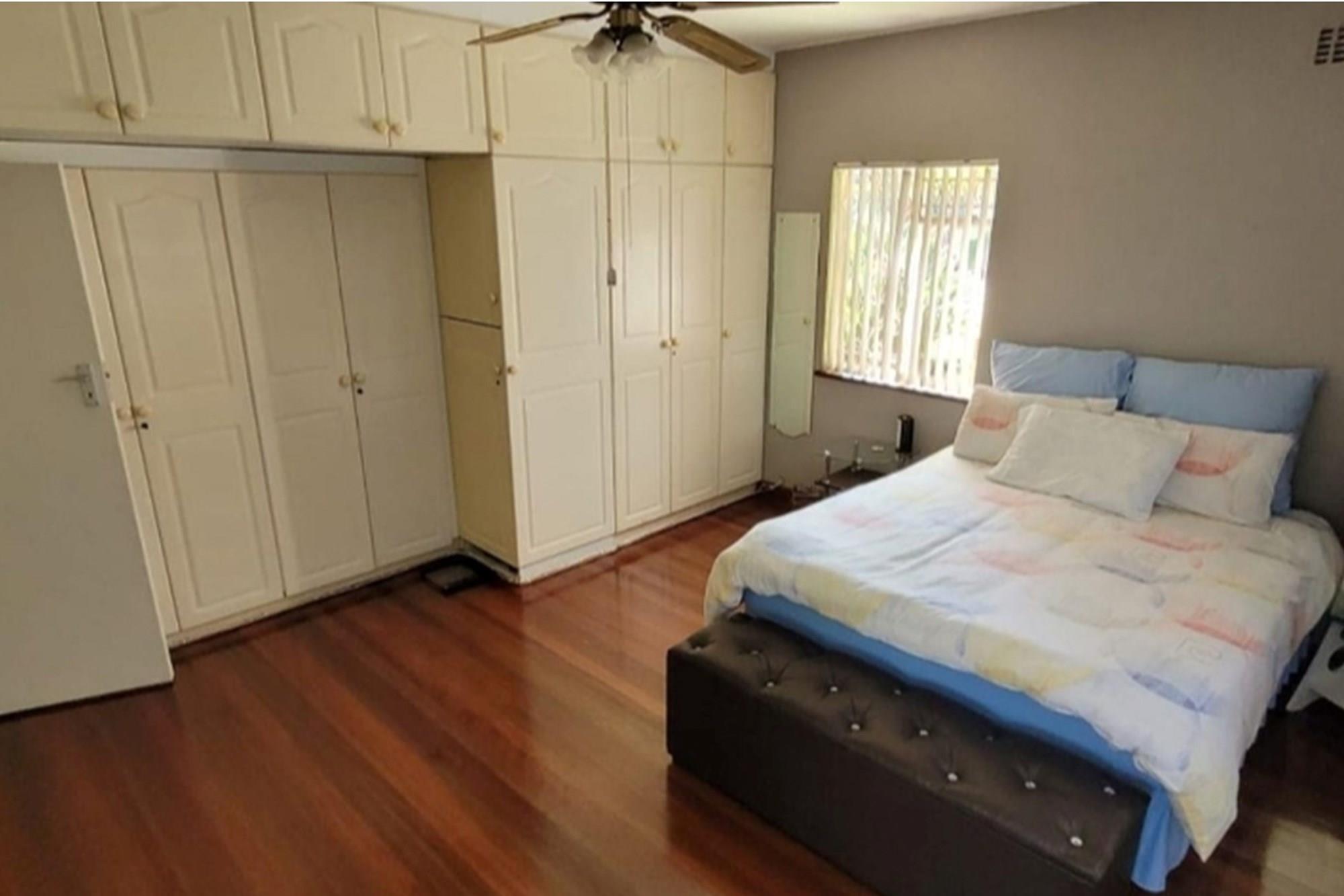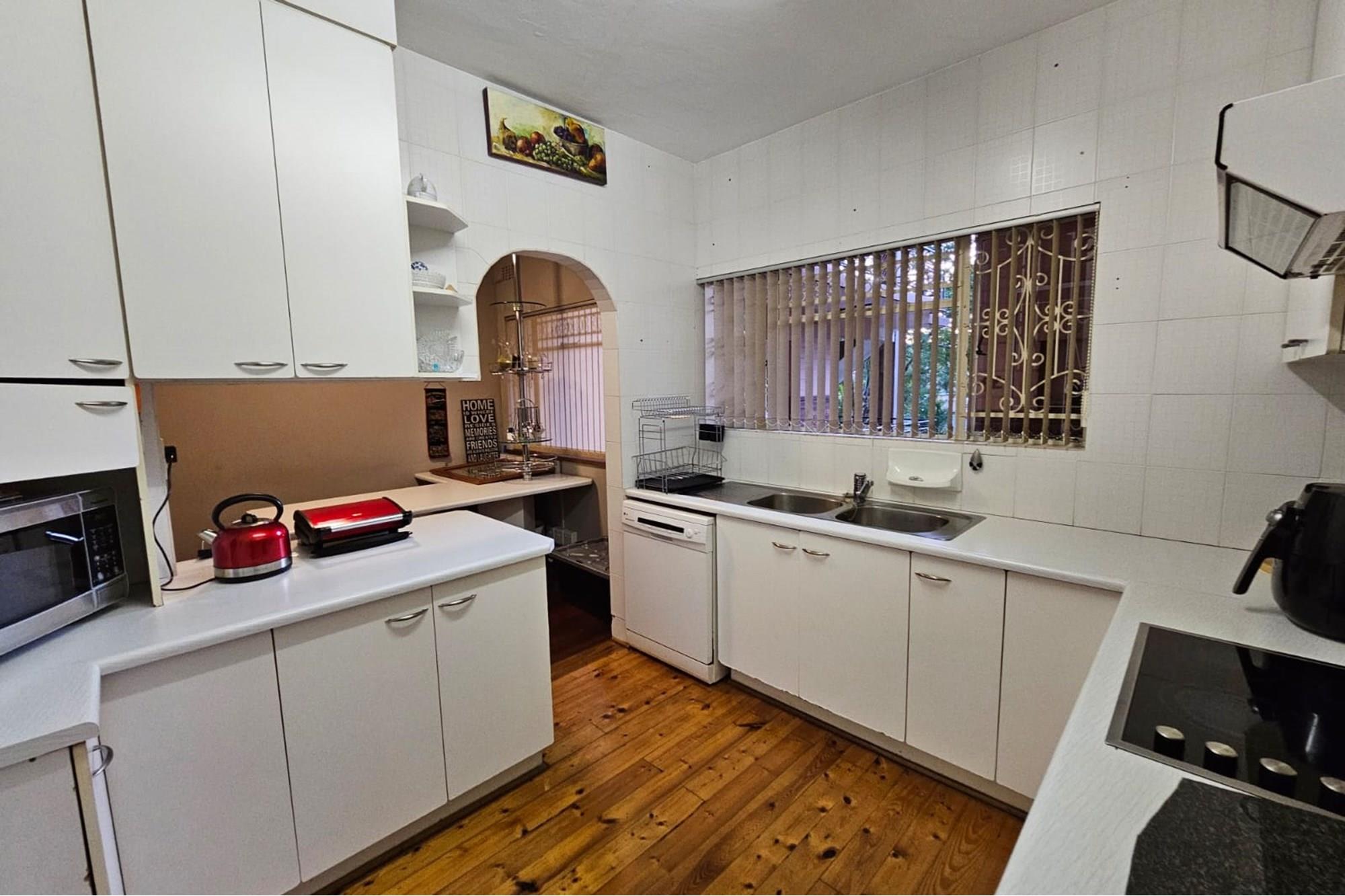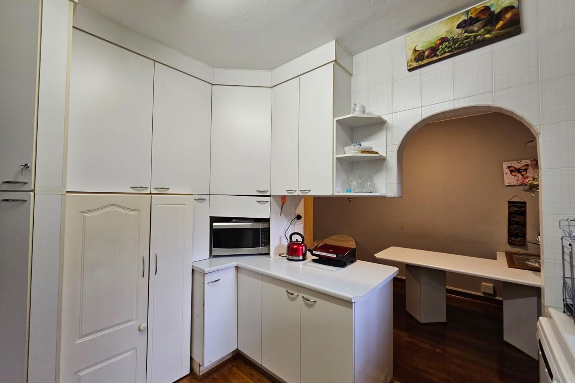 PRICE REDUCED Urgently need to sell. Situated in a park like garden and right at the beginning of this block of flats, without any walk past traffic you will find this beautiful airy and spacious flat that oozes neatness from the time you enter through the cozy entrance hall. I am sure at inception of this flat, this unit was built for the superintendent of the complex. Consists of 2 good sized Bedrooms fitted with lots of cupboard space and ceiling fans, a dining room which could be converted back to a 3rd bedroom, 2 1/2 bathrooms, main ensuite, fully fitted modern kitchen and dinette, a big lounge that opens onto a secure enclosed patio. The sealed, glistering wooden floors and high ceilings just add to the charm and warmth of this inviting flat. Now there is more to it than this. There is a spacious 1 bedroom flatlet with a kitchen, bathroom and storeroom attached to it. All neatly tiled and inviting. Where do you ever find that? The income from the flatlet covers your levies and more! Now the cherry on the top is that you will own 3 garages which is part of this flat. Now all in all you are able to rake up an additional income of R4800 from the flatlet and R500 from the garage. Again I ask. Where else will you find this? Then its LOCATION, LOCATION. LOCATION! Situated opposite the ever popular Girls High School and a walk down the road from Maritzburg College as well as Alex High School. A little further down the road you have the Woodburn shopping centre eg. Woolworths, Checkers, Pick n Pay clothing store etc. May I invite you to view this beauty. Call me today to arrange an appointment and to avoid disappointment. I can assure you it will be whipped up in a jiffy.