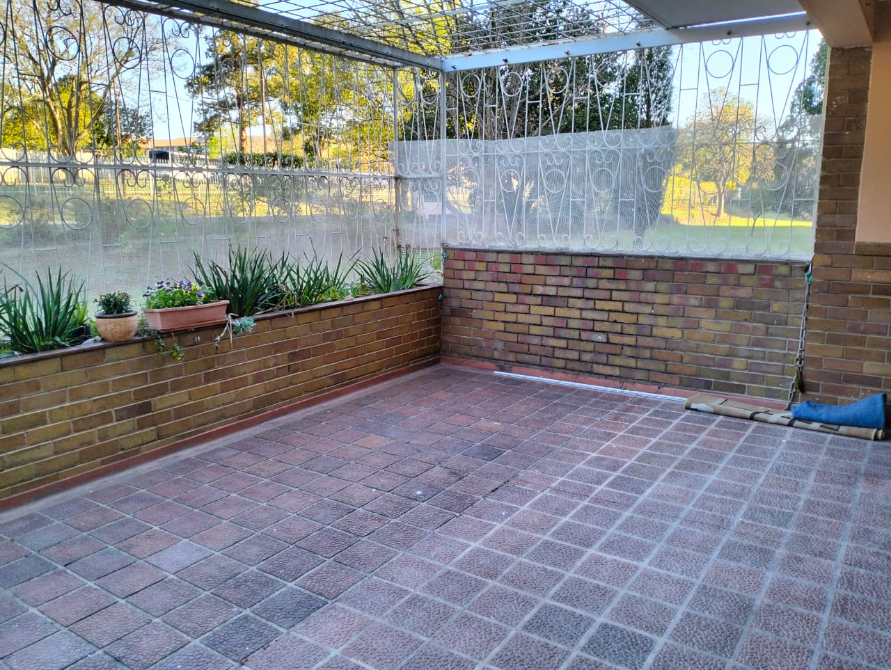 The kitchen is equipped with built-in cupboards, a stove and hob, as well as connections for a dishwasher, and a double basin for all your culinary needs. Adjacent to the kitchen, the semi-attached dining room provides the perfect setting for family meals or hosting game nights. The expansive lounge leads out to an exclusive enclosed veranda, ideal for entertaining, relaxing, or enjoying a weekend braai.