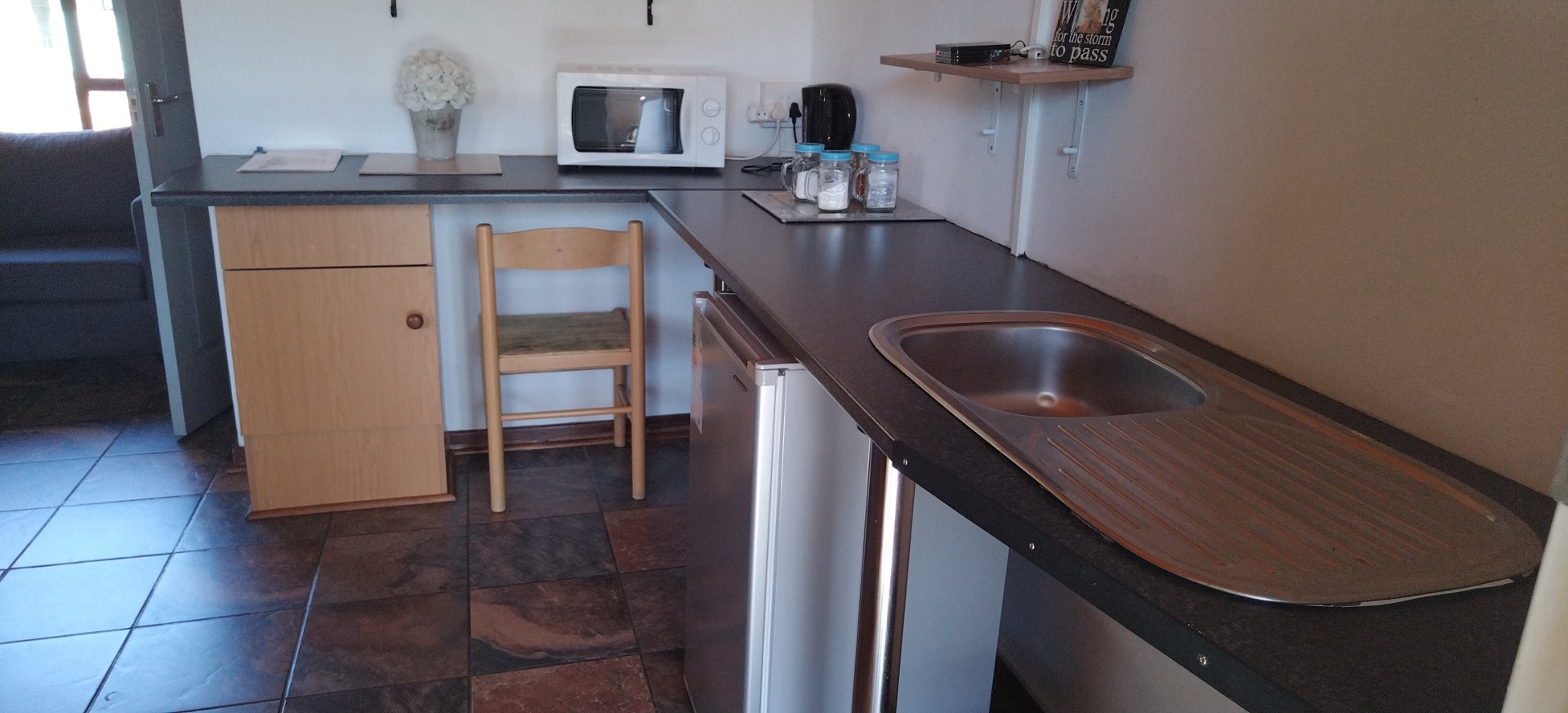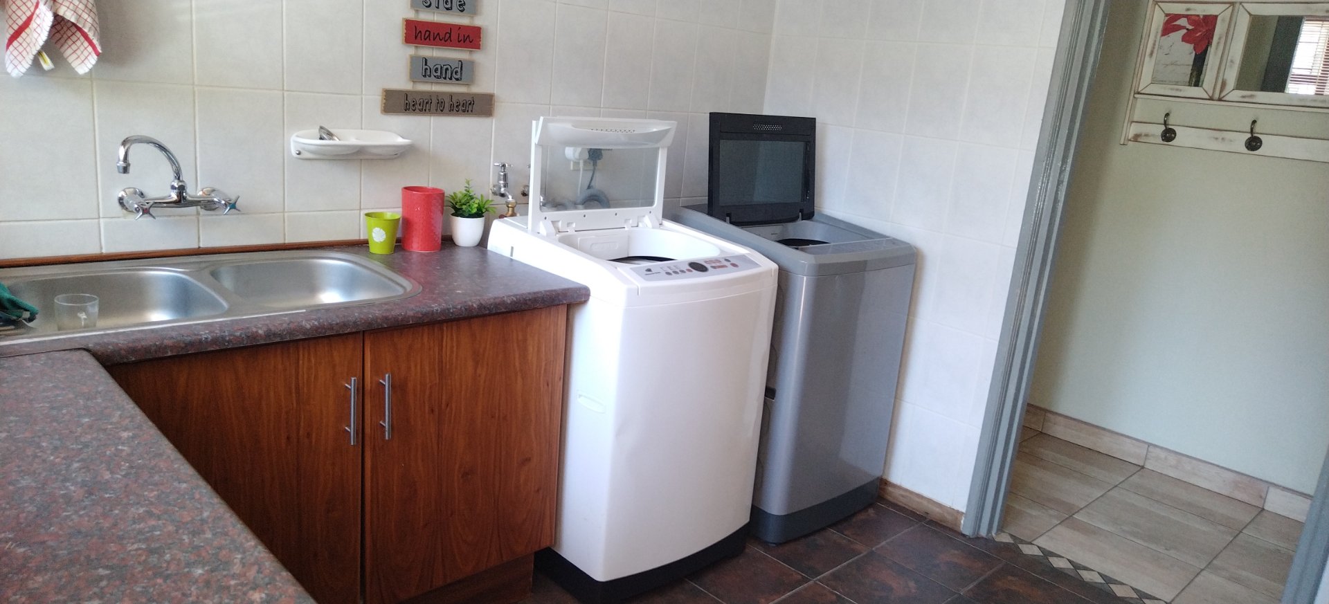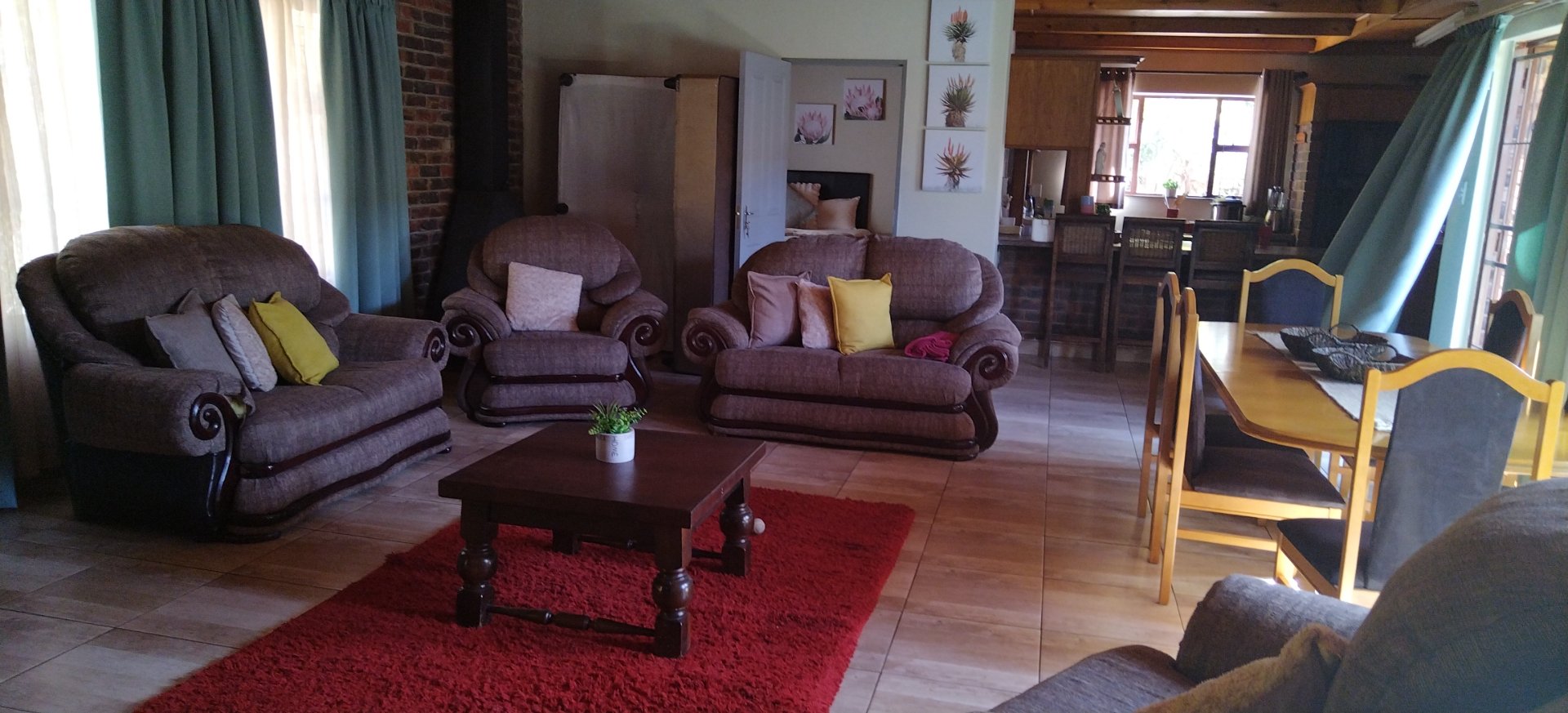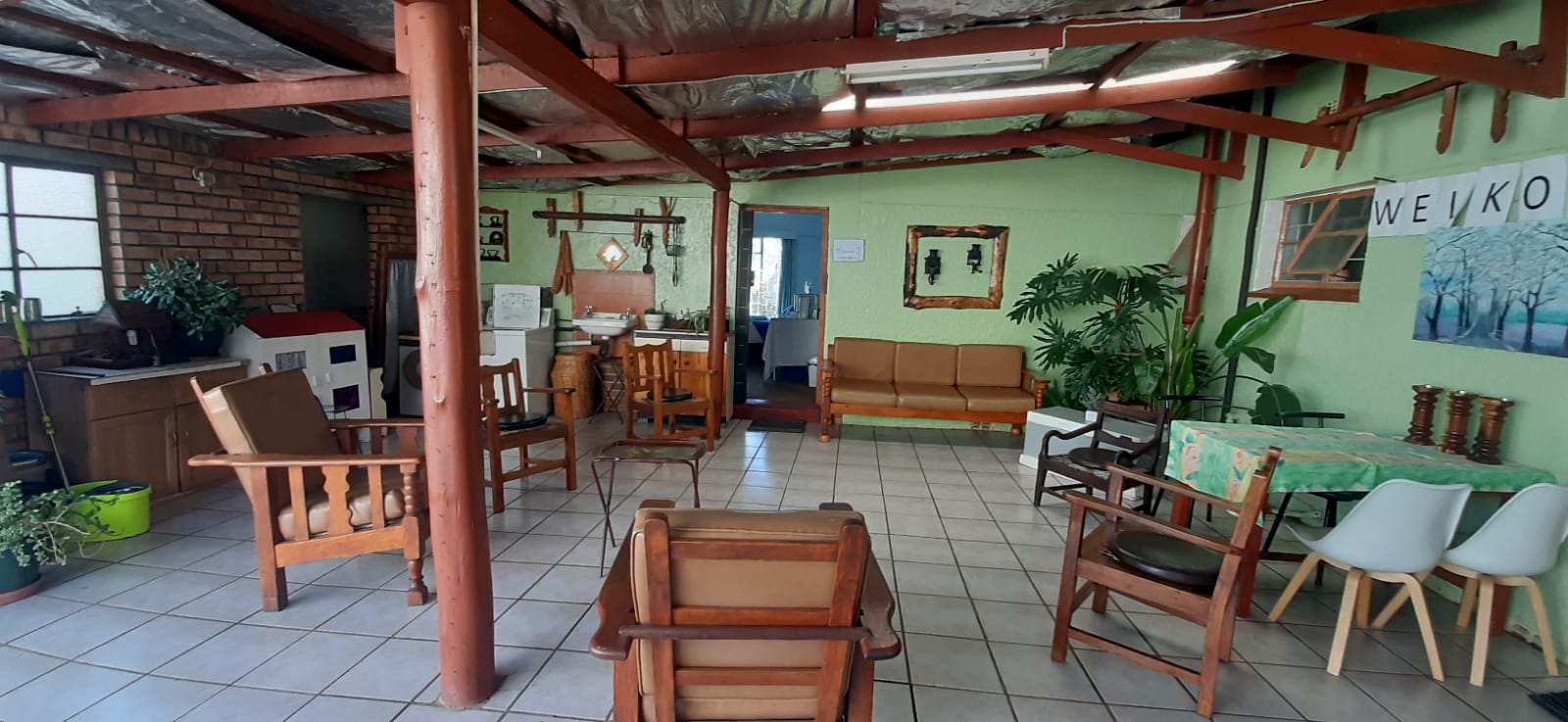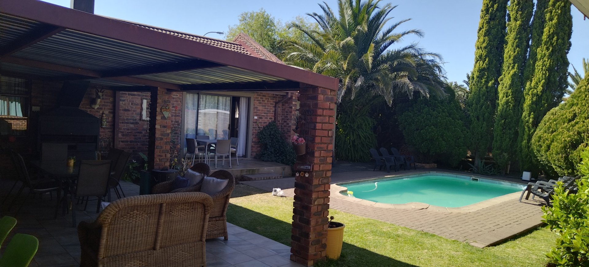 The main house consist 3 bedrooms with 2 bathrooms, lovely open plan kitchen with a scullery / laundry, open plan dining room and lounge with a fireplace, tiled flooring and door open to the entertainment area with a sparkling pool and well maintained garden. There is 3 self catering rooms with en suite bathrooms.