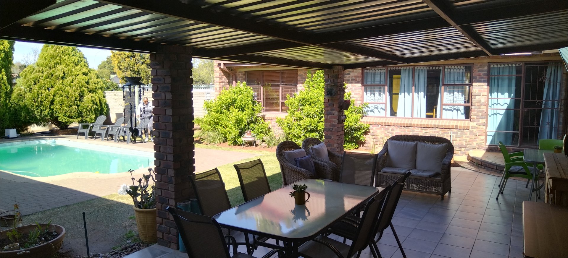 Lots of extras like a borehole with pump, 2 Jo-Jo Tanks, 3 gate entrances to the house, lots of paving and a lovely garden, pool area where the guests can relax in these hot summer days. Lots of parking space. Solar Panels and Solar geyser. Each rooms is also equipped with a new Inverter Airconditioner. Near well known school, Shopping Center and Mall.