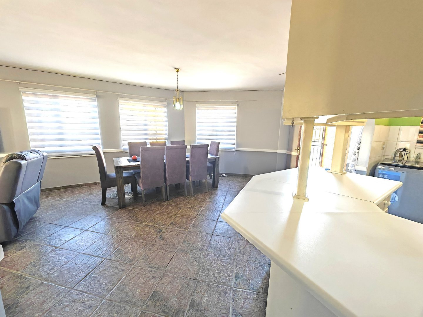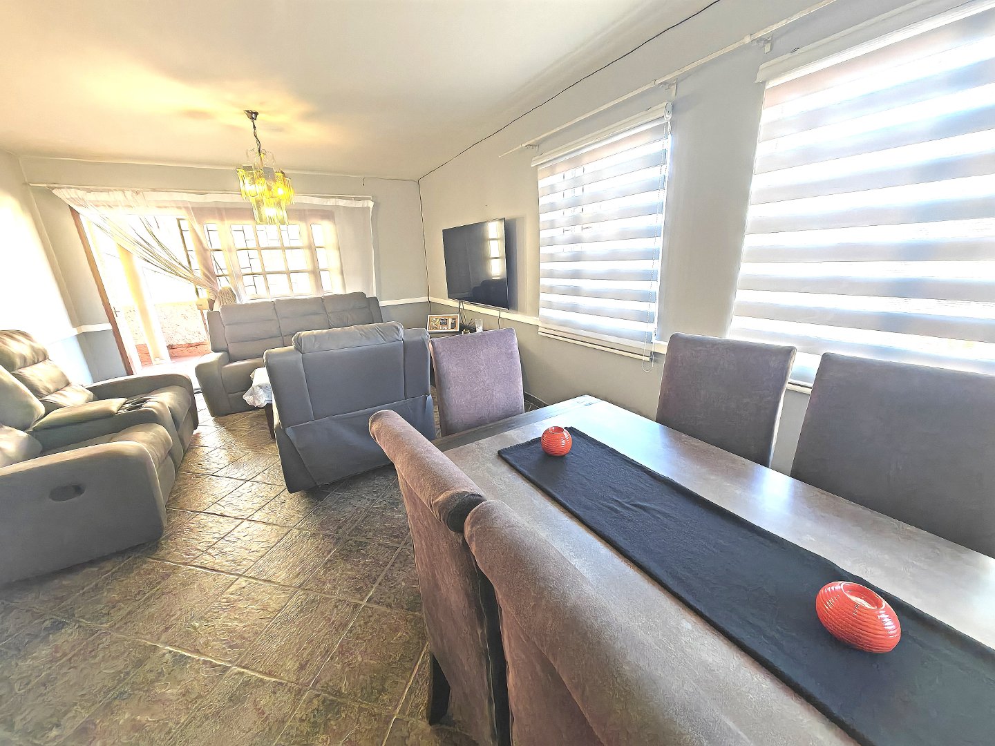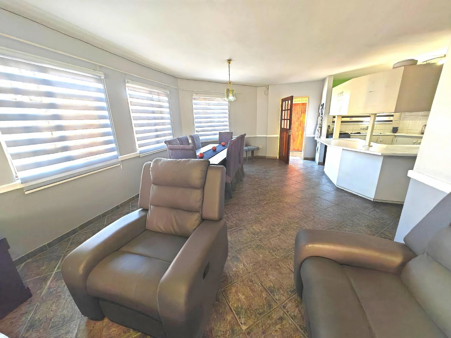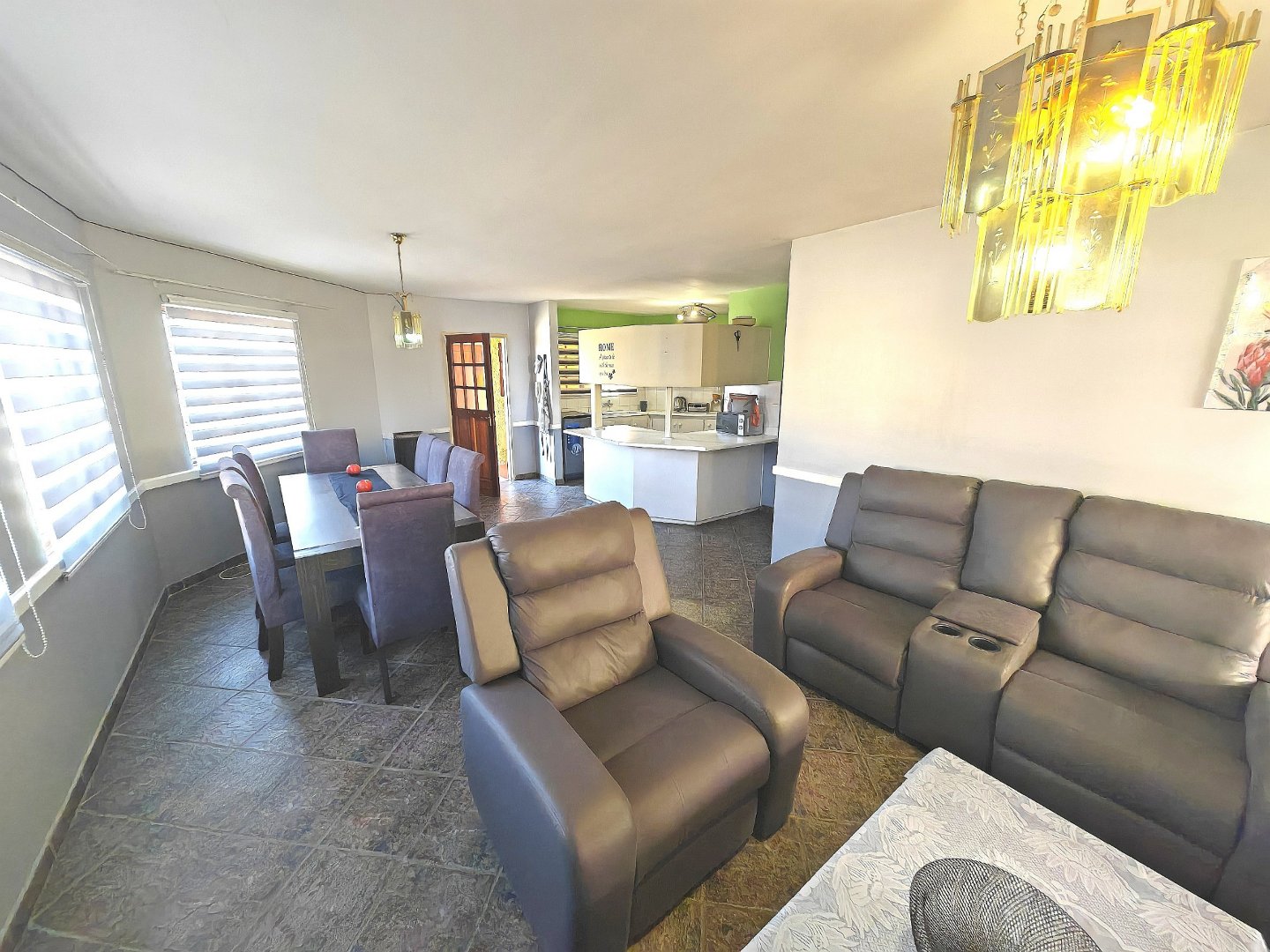 The large living room flows seamlessly into a spacious dining area, creating a welcoming environment for relaxing or entertaining. From here, step out onto your own ground floor stoep/balcony, complete with a built-in braai – ideal for weekend gatherings with friends and family.