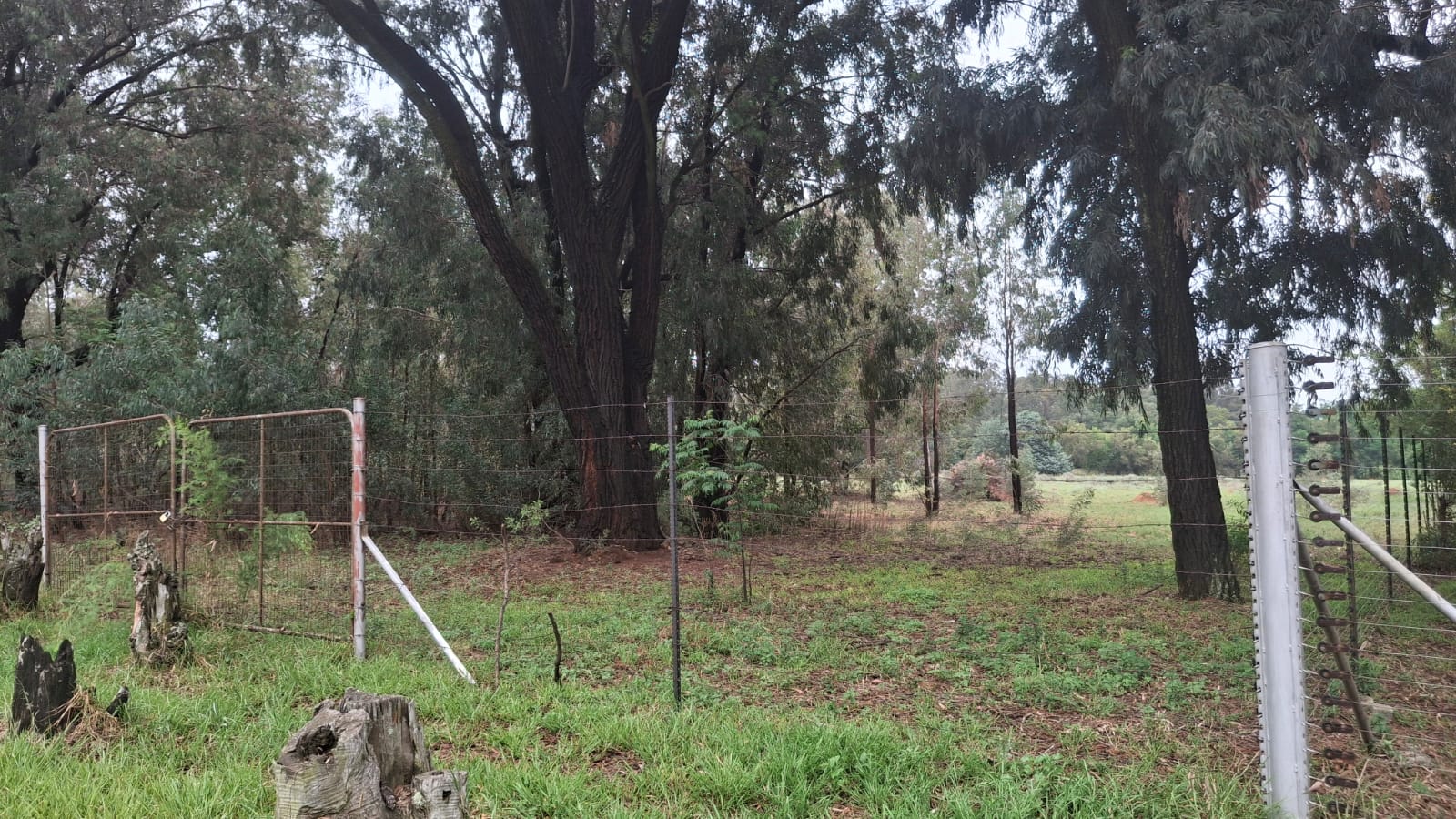 Bordered by established trees for natural privacy and fully fenced, it provides dual access with one side on a tarred road and the other on a gravel road.