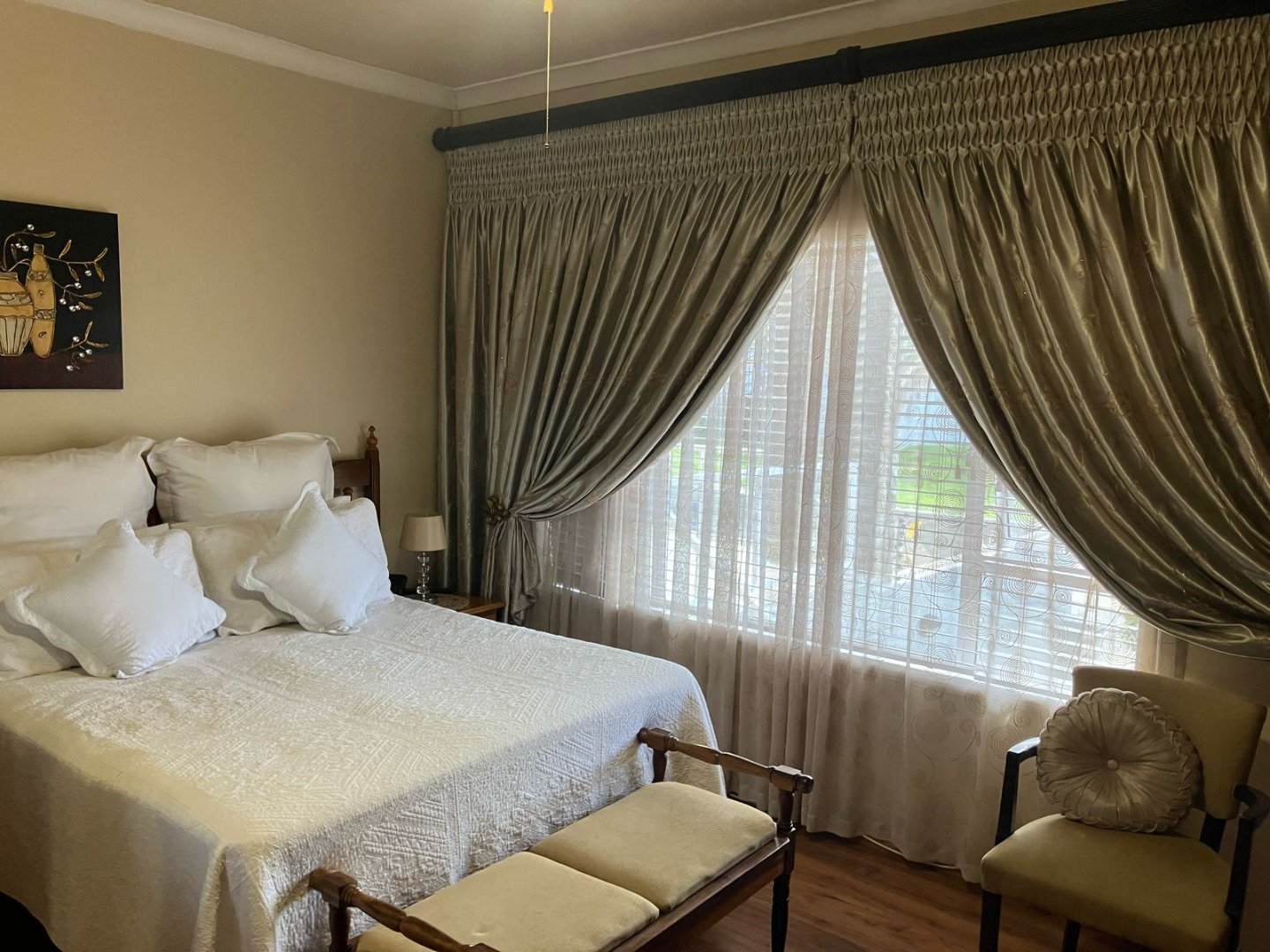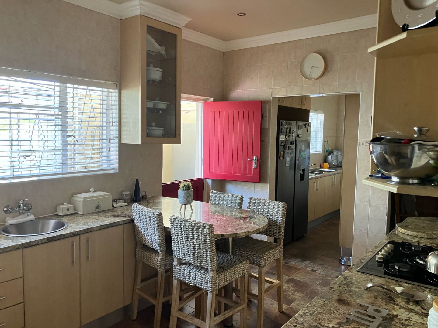 Move in ready! Entertainers dream! Beautiful garden. 3 Bedrooms are spacious with laminated floors and BIC. 1 Beautiful bathroom and 1 en-suite. Modern kitchen with granite tops and gas top with scullery. Lounge and dining room area. TV room with built-in-bar and ai-con. Inside and outside braai / entertainment area.