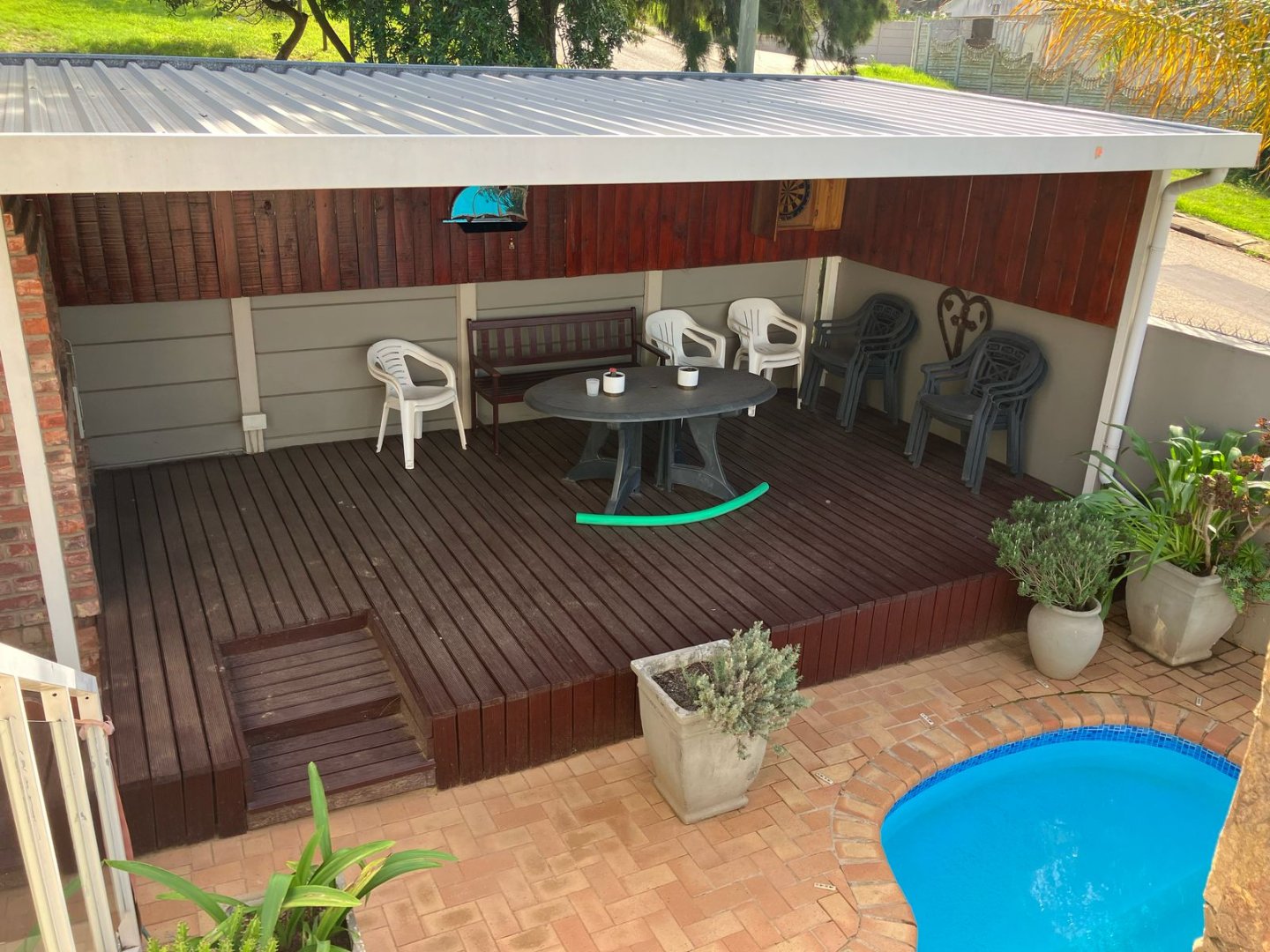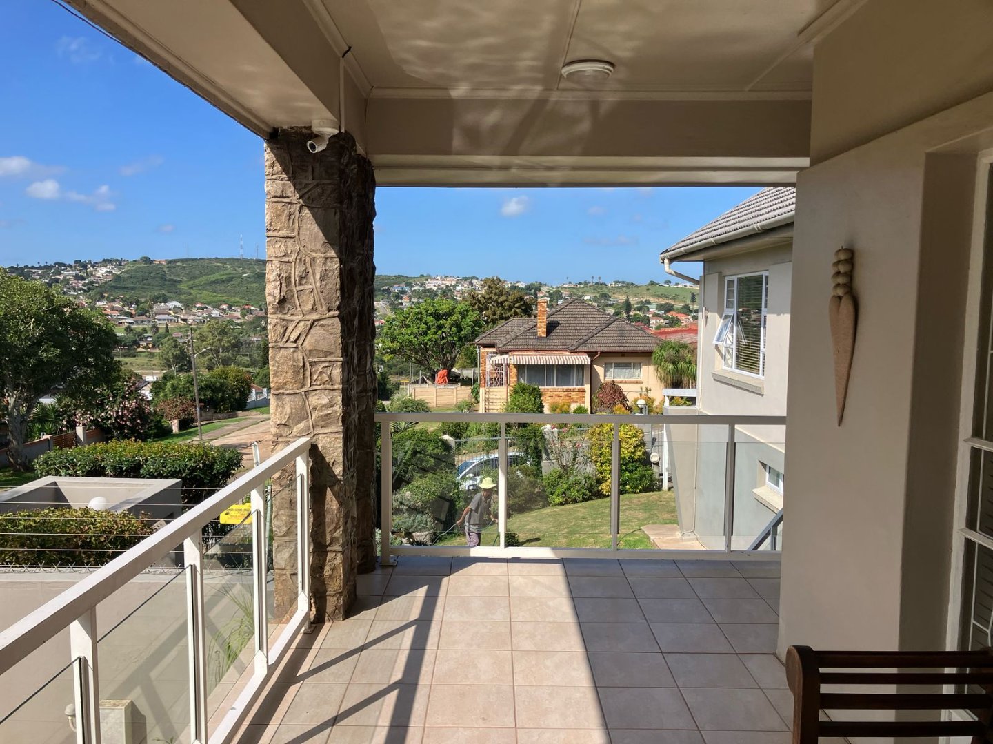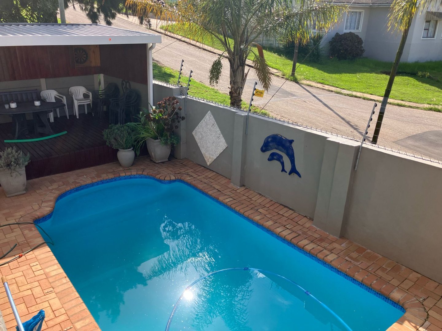 Patio overlooks sparkling pool and beautiful views over Uitenhage. Added CCTV, Alarm system and electric Fencing. Invertor plus battery. Tandem garage on remote and double carport with driveway gate.