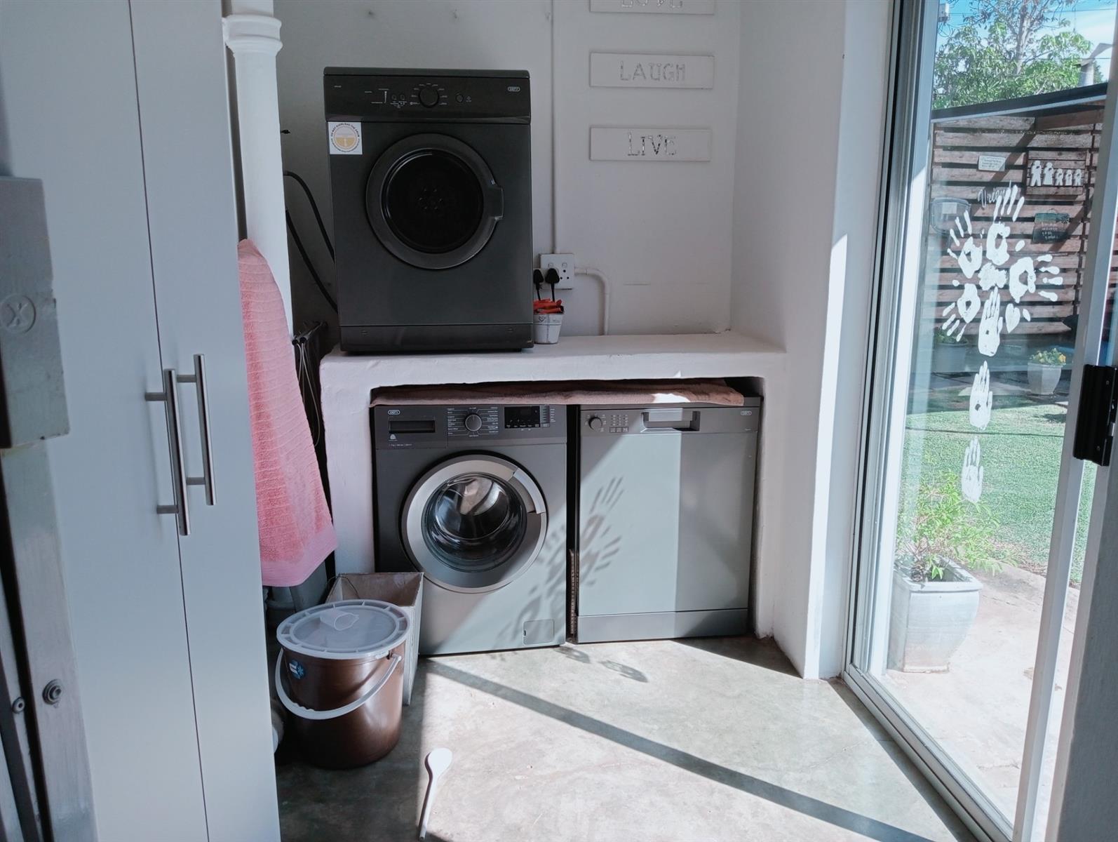 The heart of the home is the well-appointed farm style kitchen, equipped with a modern gas hob, making meal preparation a delight. Adjacent to the kitchen, you`ll find a convenient laundry room. Enjoy entertaining friends and family in the dedicated braai room that opens up to the beautifully maintained garden and yard, providing a serene outdoor oasis.