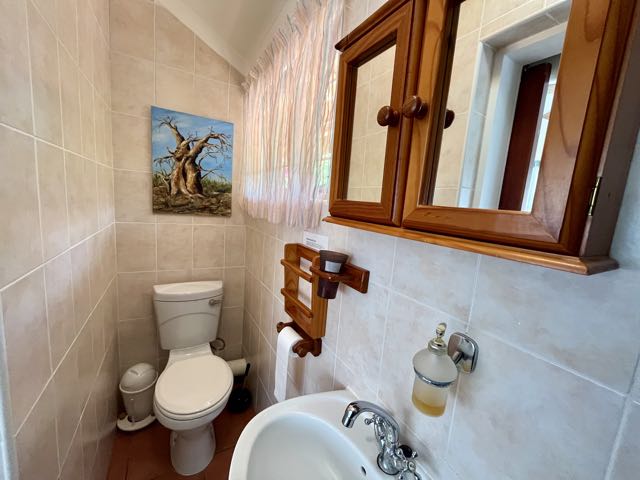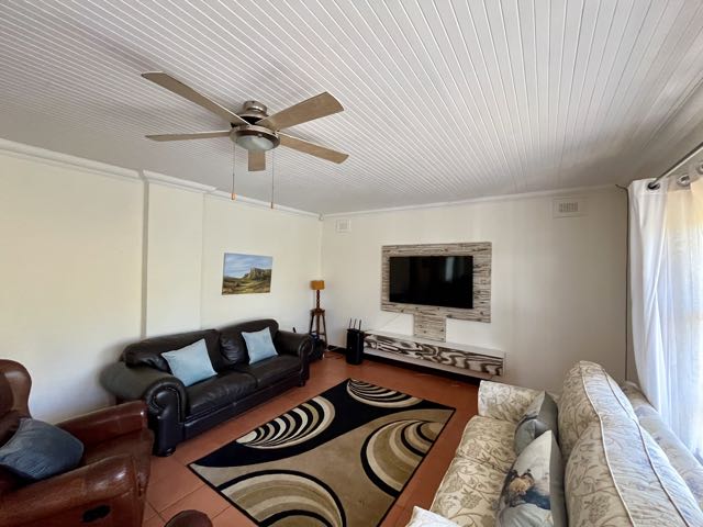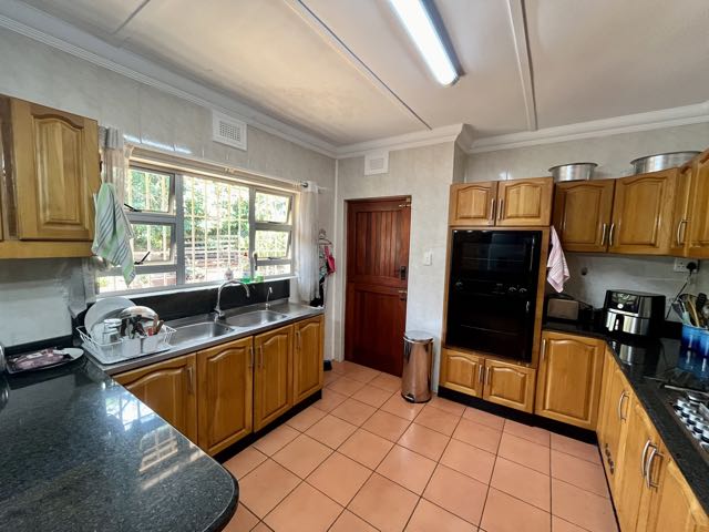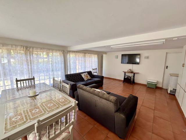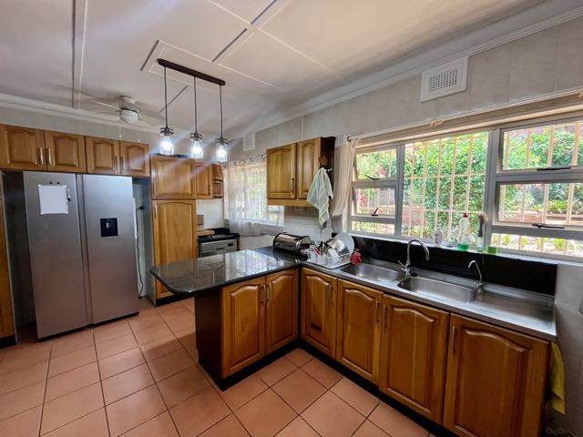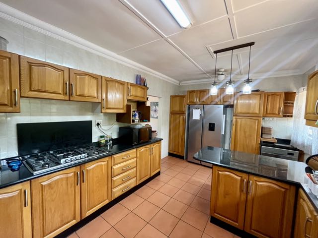 The house itself consists of 3.5 bathrooms and 4 bedrooms, which are well sized, have curtains, built-in cupboards, and tiled floors. The kitchen has built in cupboards beautiful granite tops and plenty of space. The kitchen leads to the lounge and dining area. The veranda is tiled and has a built-in braai. There is also a second lounge/entertainment area that could be turned into the perfect mancave.