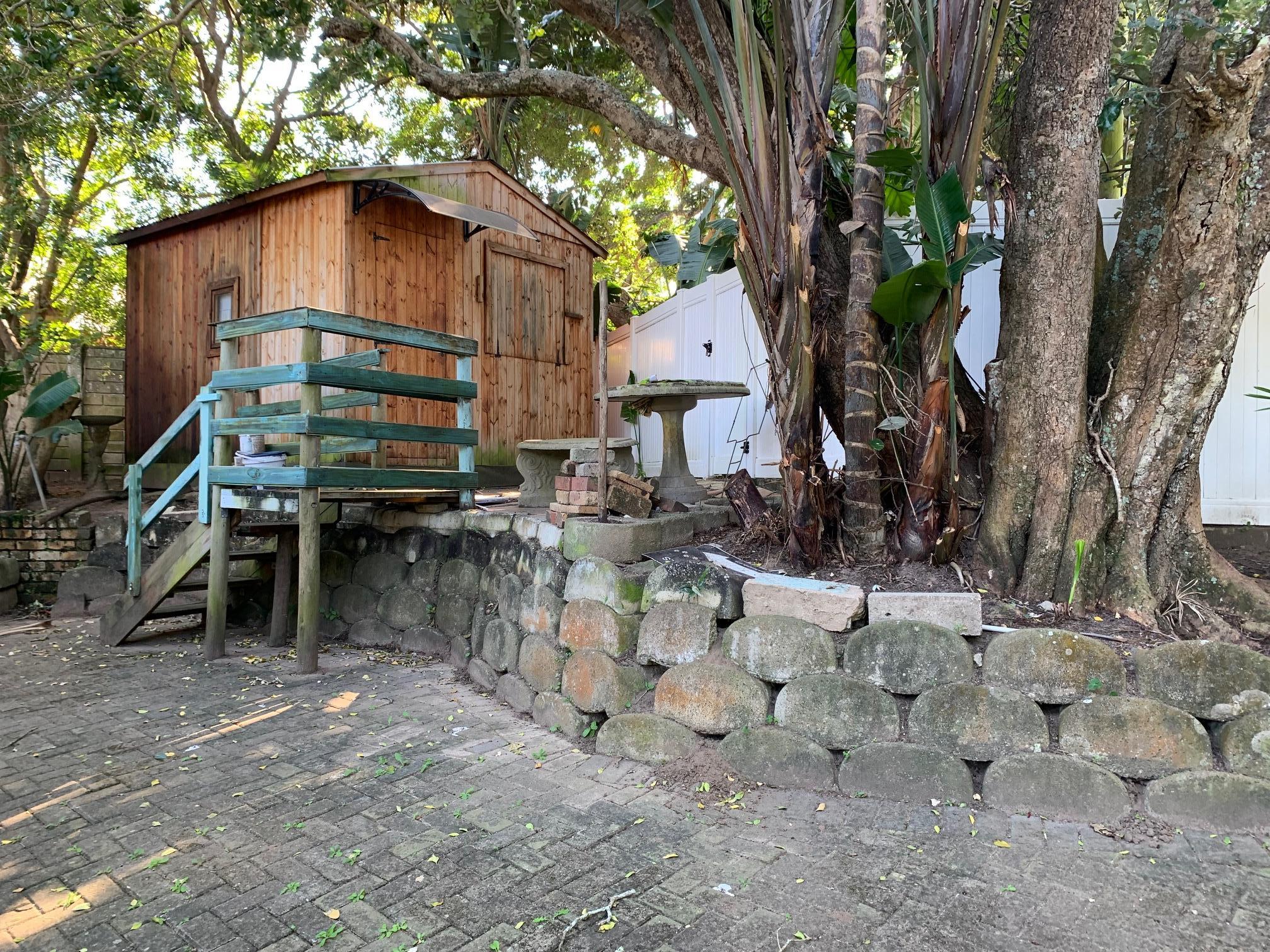 A single garage and a garden hut to have as a man cave or to store your garden machinery.