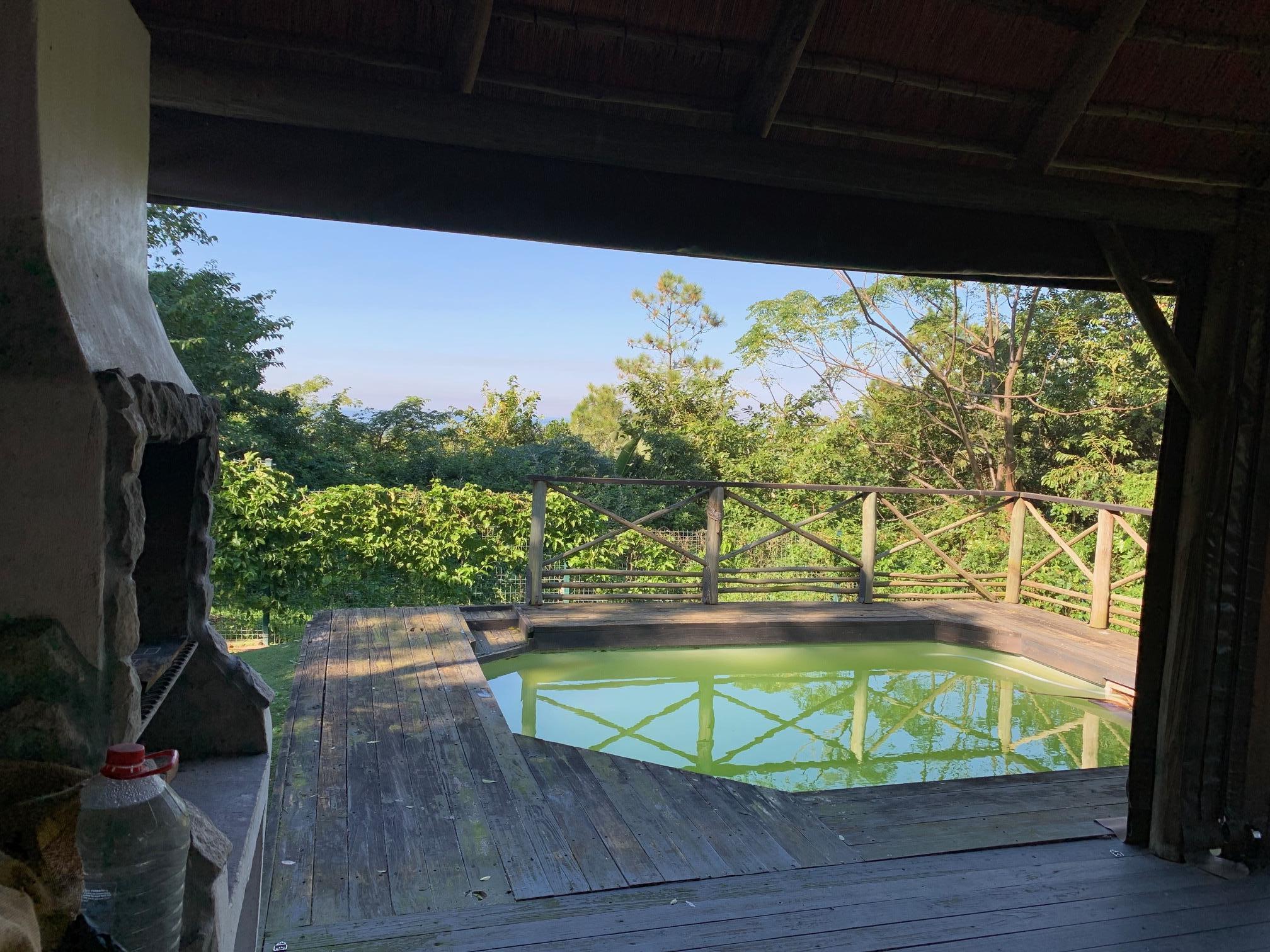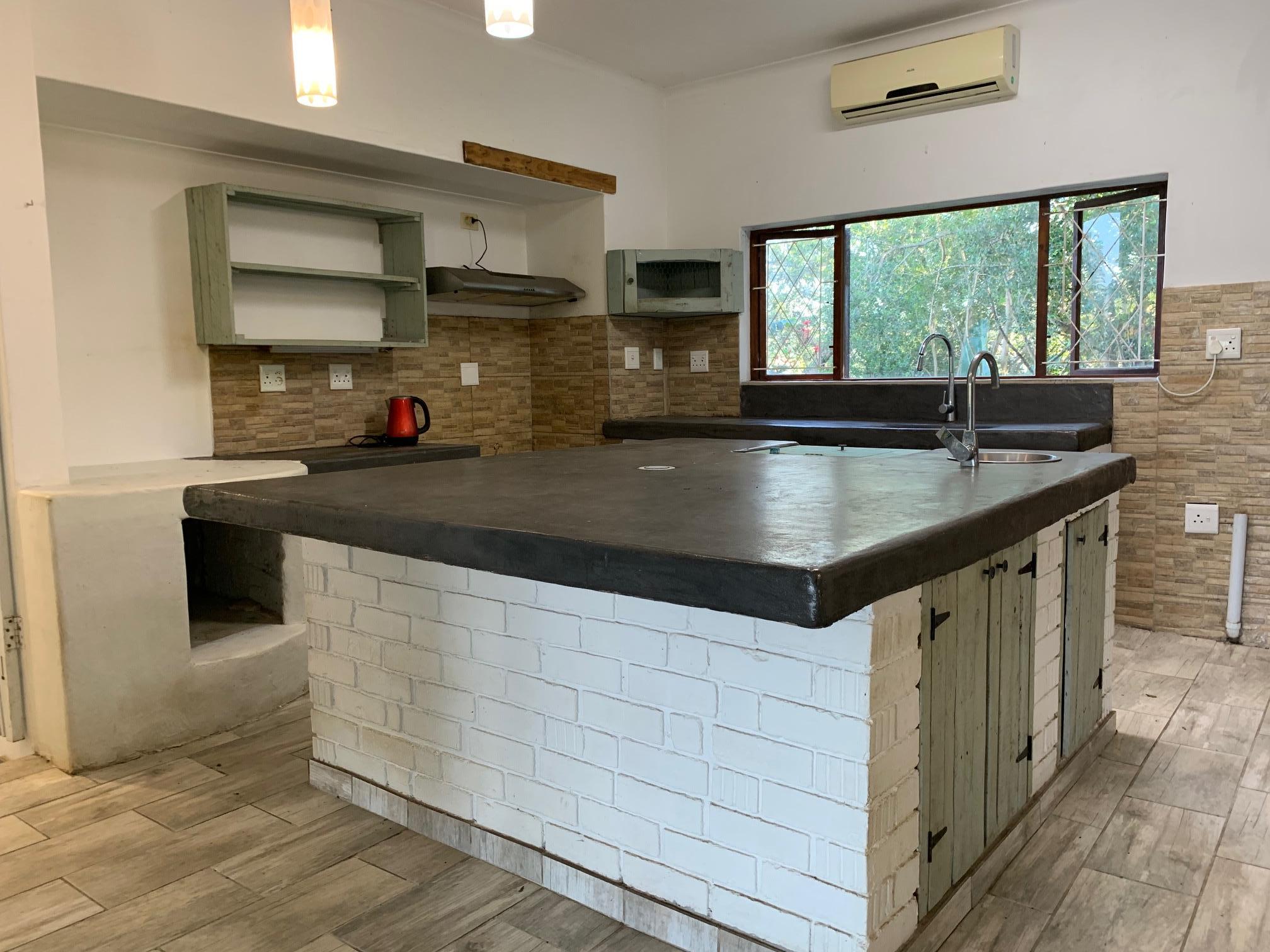 The living area is open plan flowing from the lounge to the thatched veranda and out into the garden with a super splash pool.