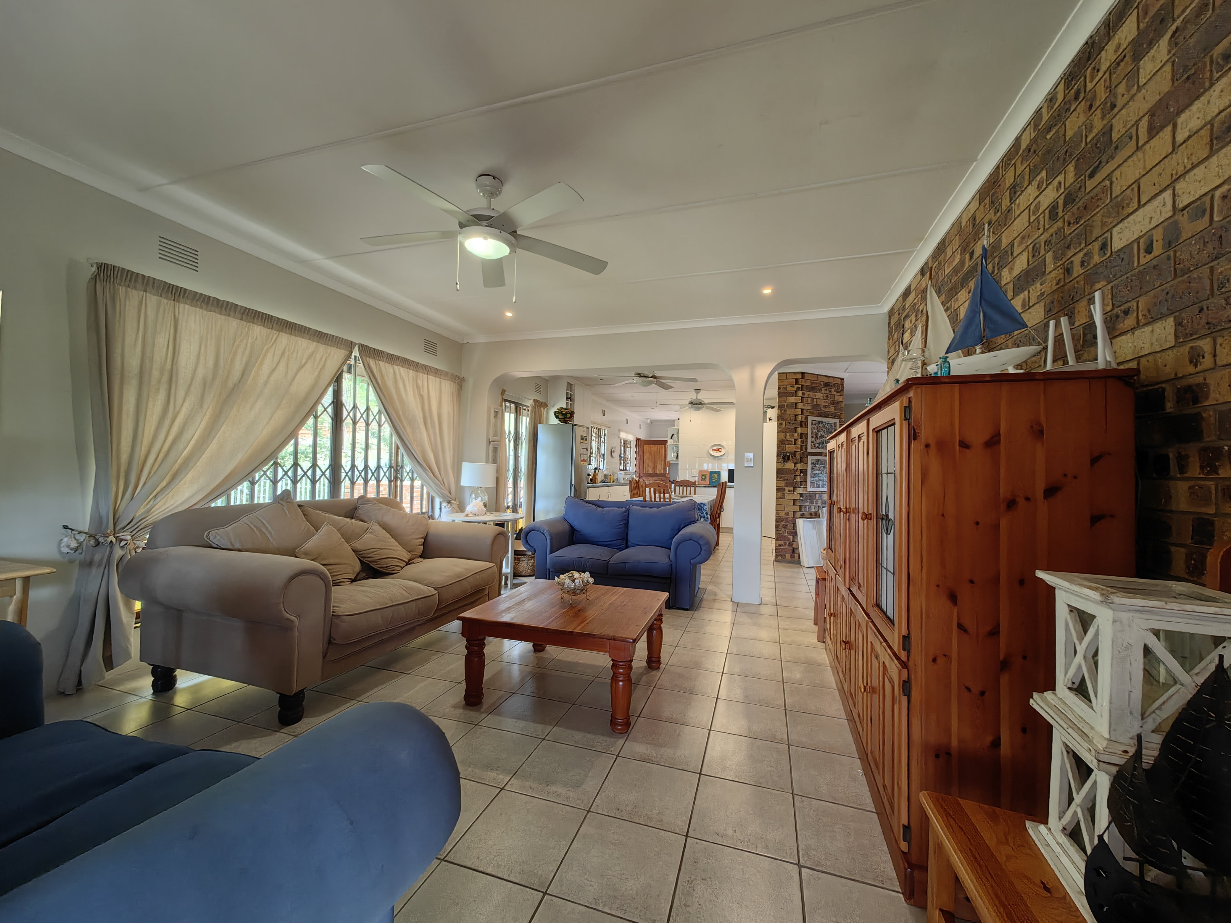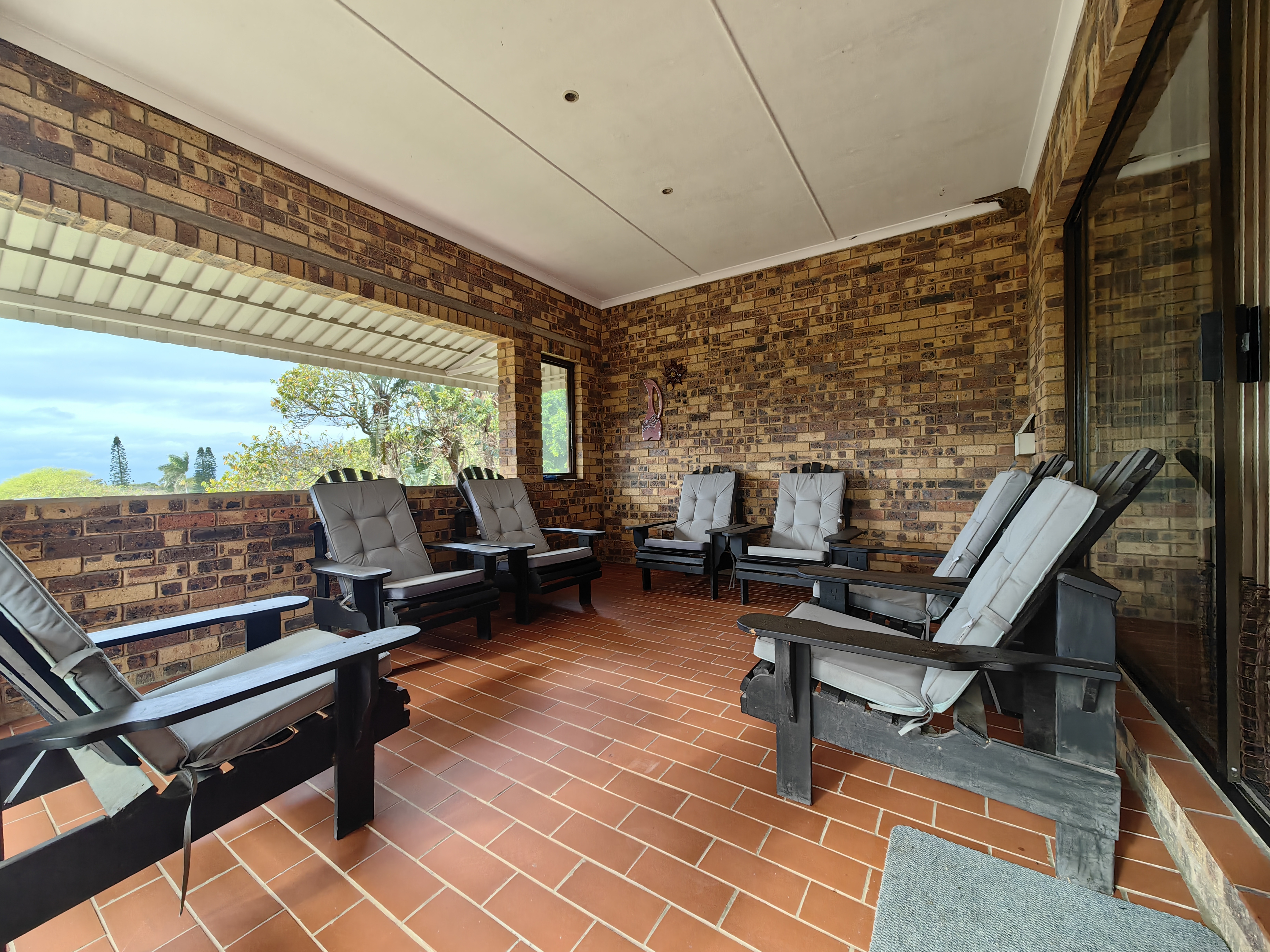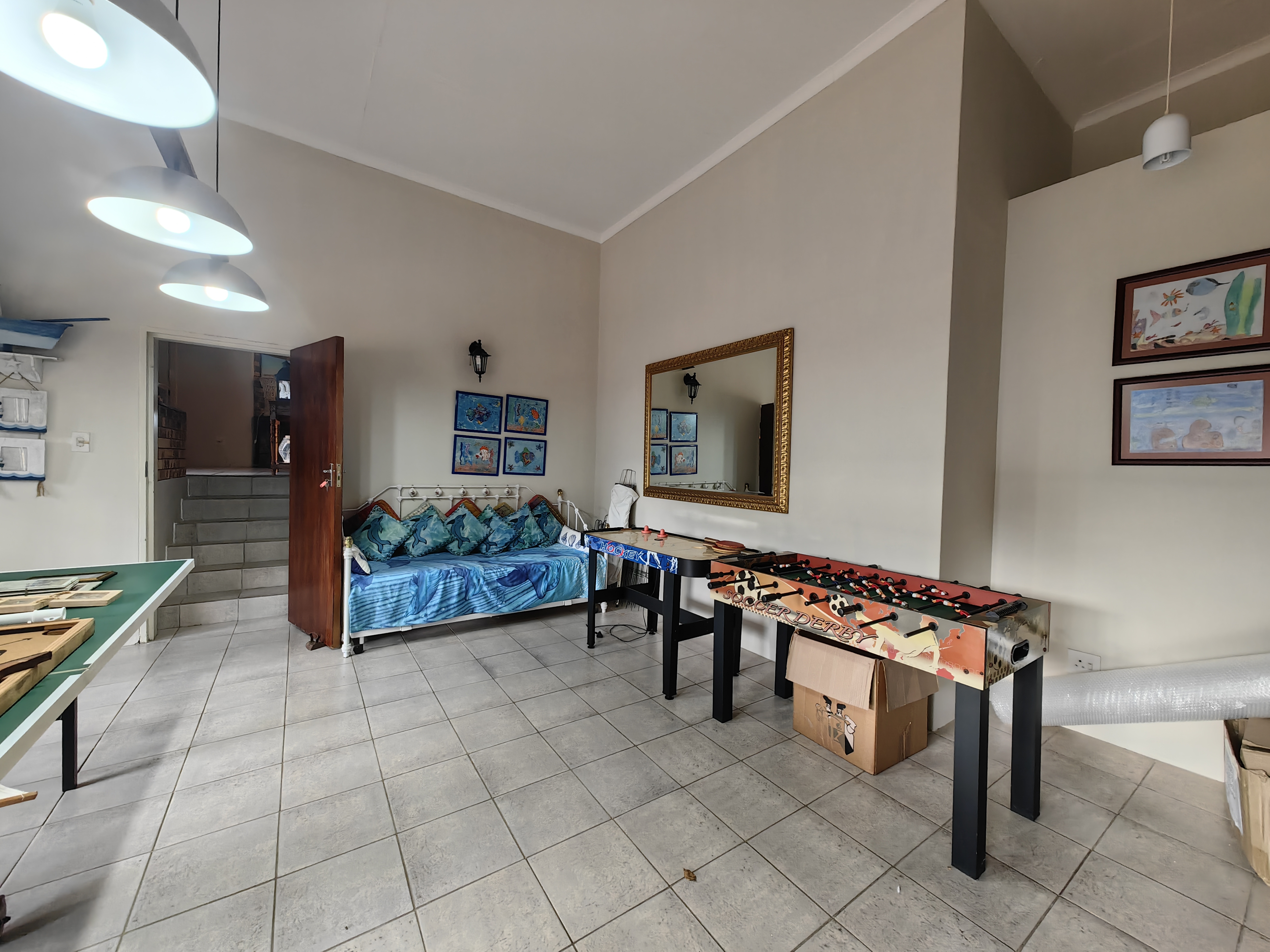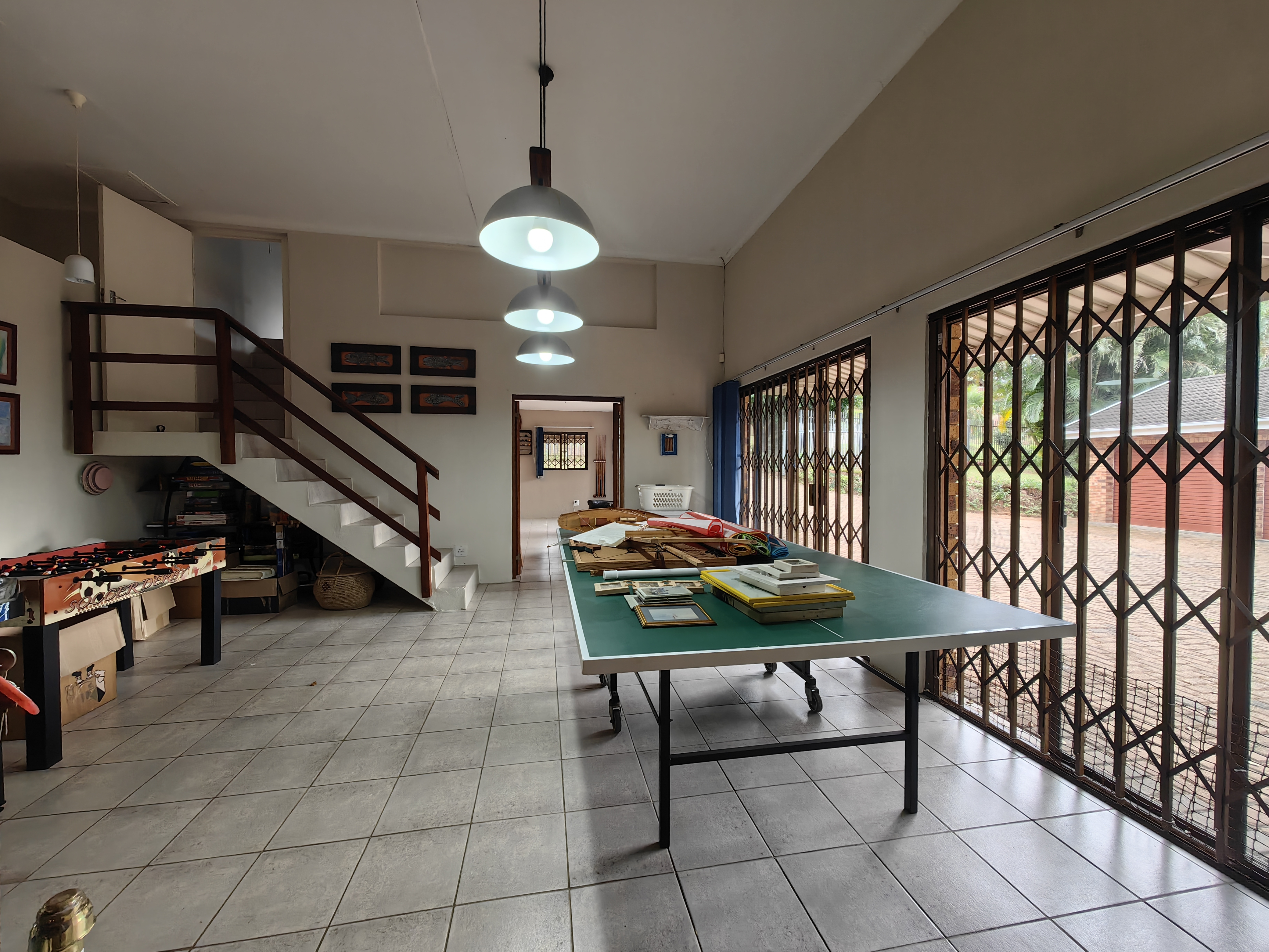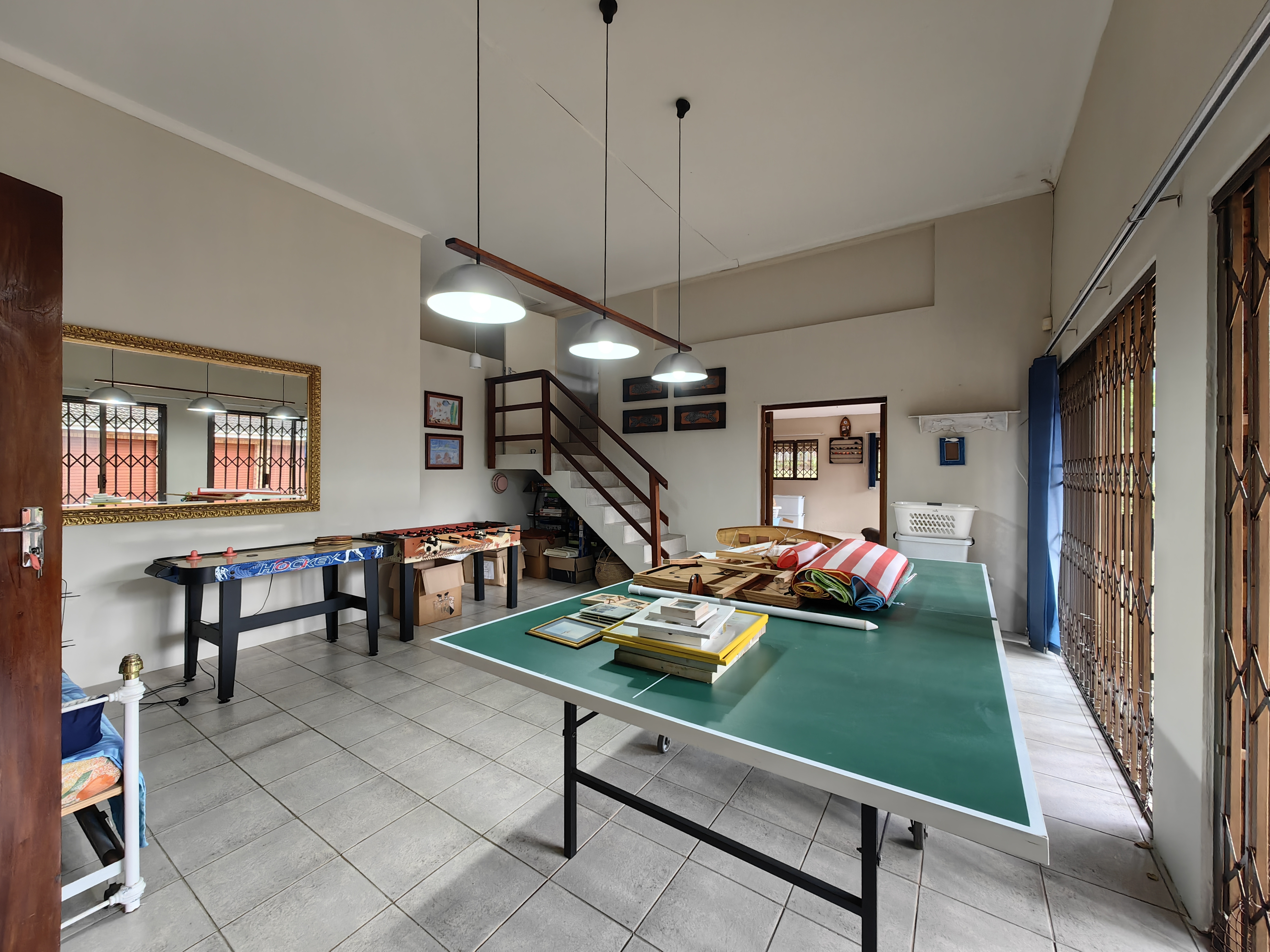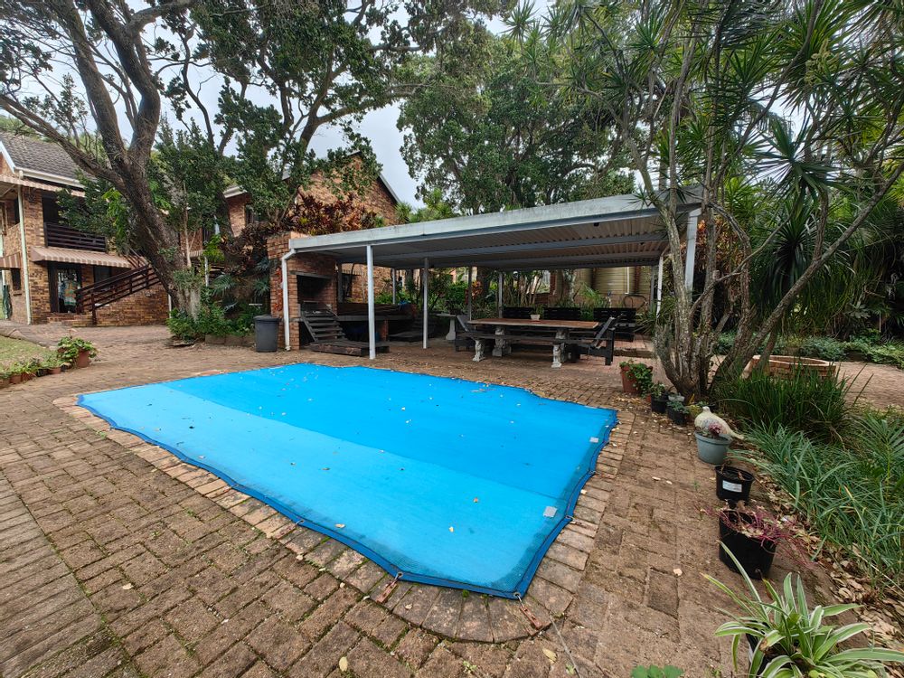 The main home boasts four bedrooms, with two situated on the “entertainment side” of the house for easy access to the large games and playroom that flows seamlessly outdoors. Here, the party continues in style — a beautiful level garden frames a generous lapa and braai area, overlooking a sparkling swimming pool and set within a lush, well-established garden with distant sea views.