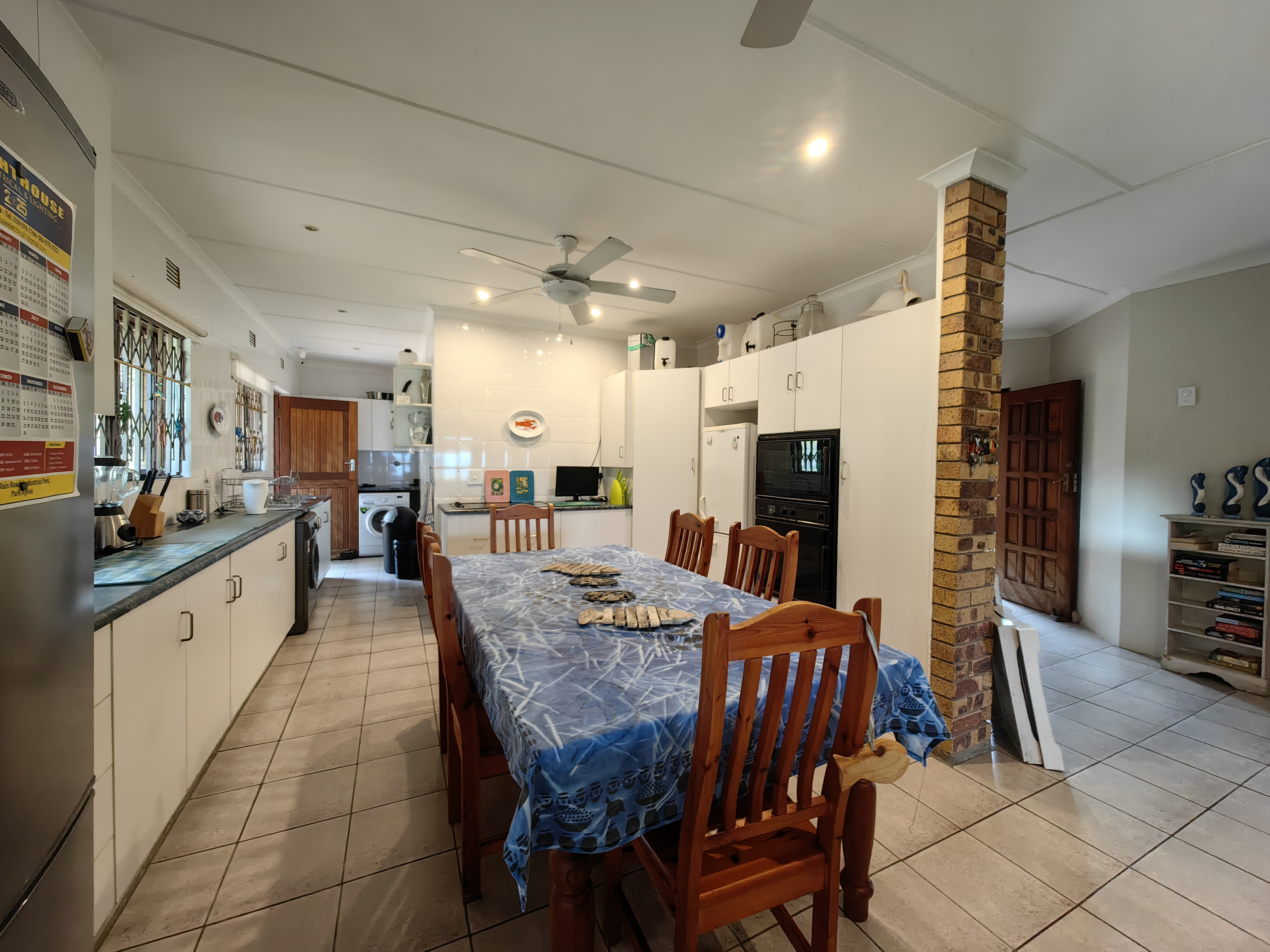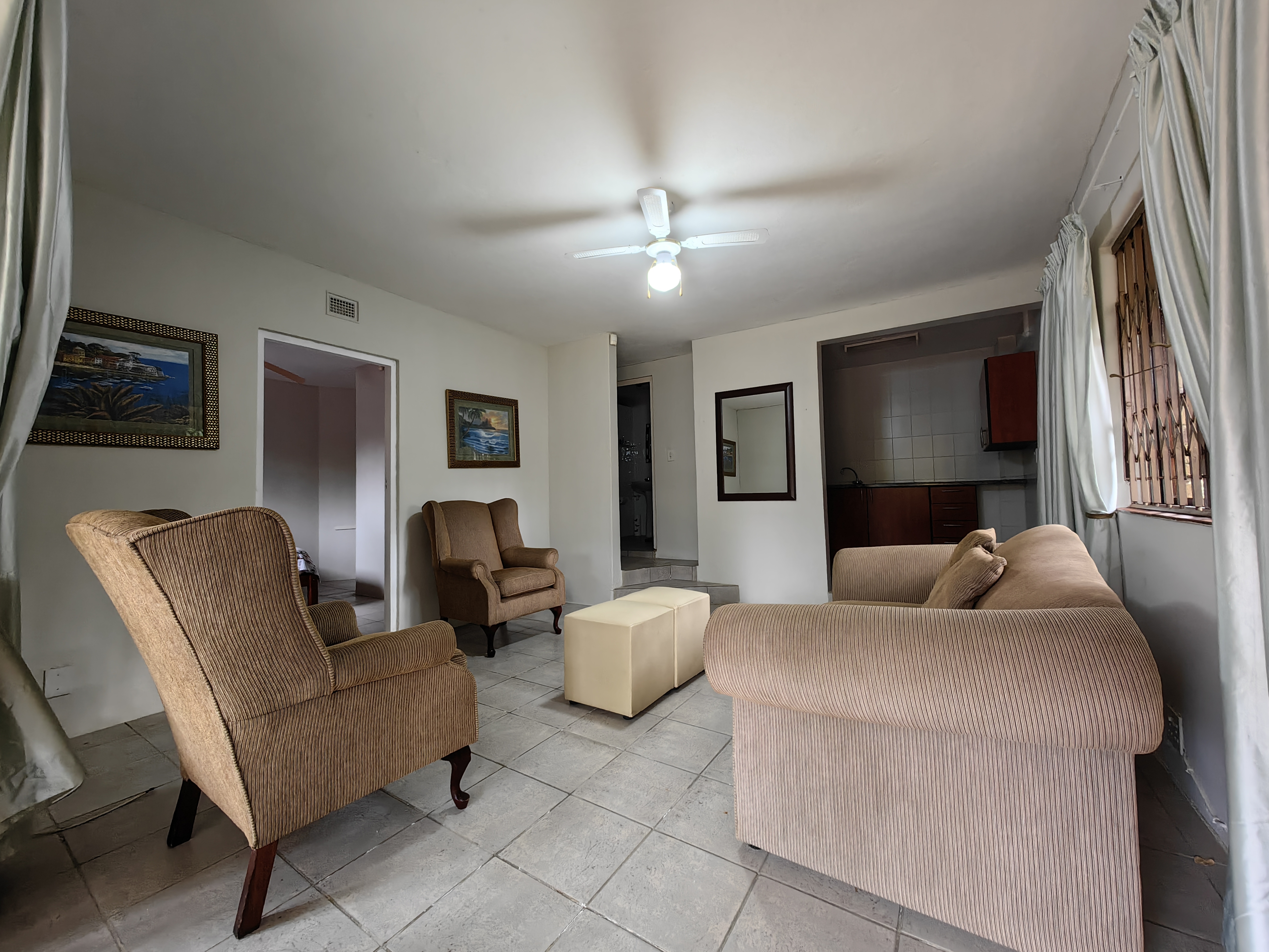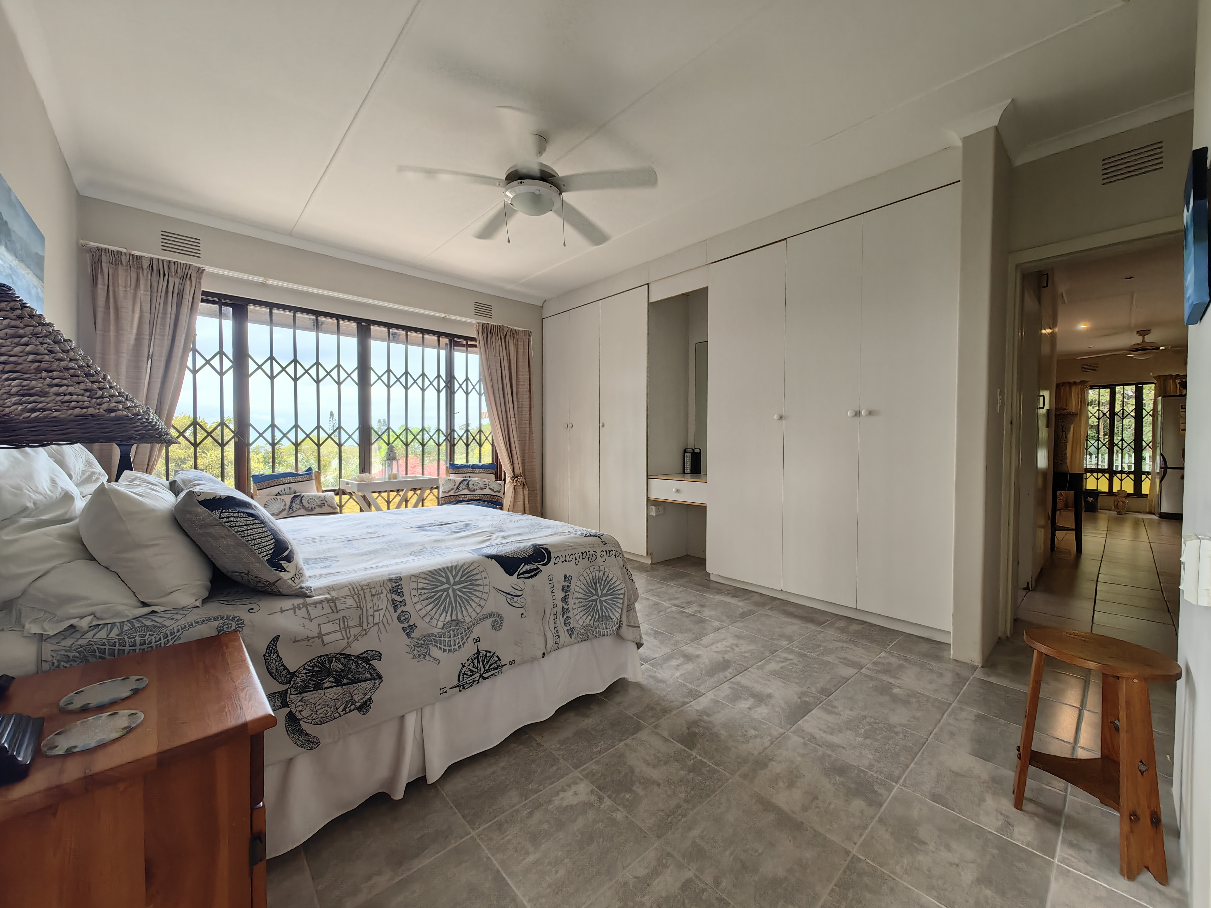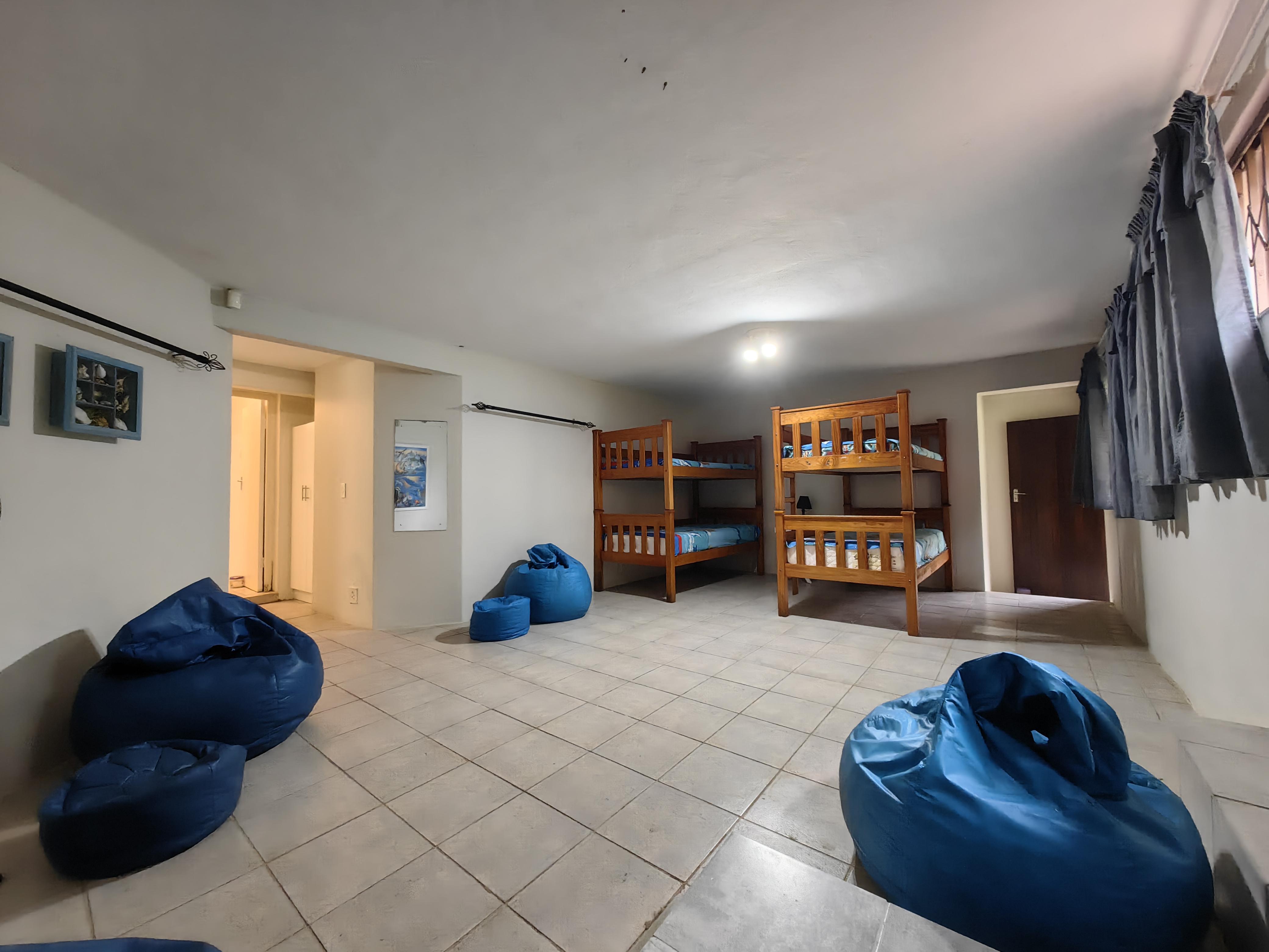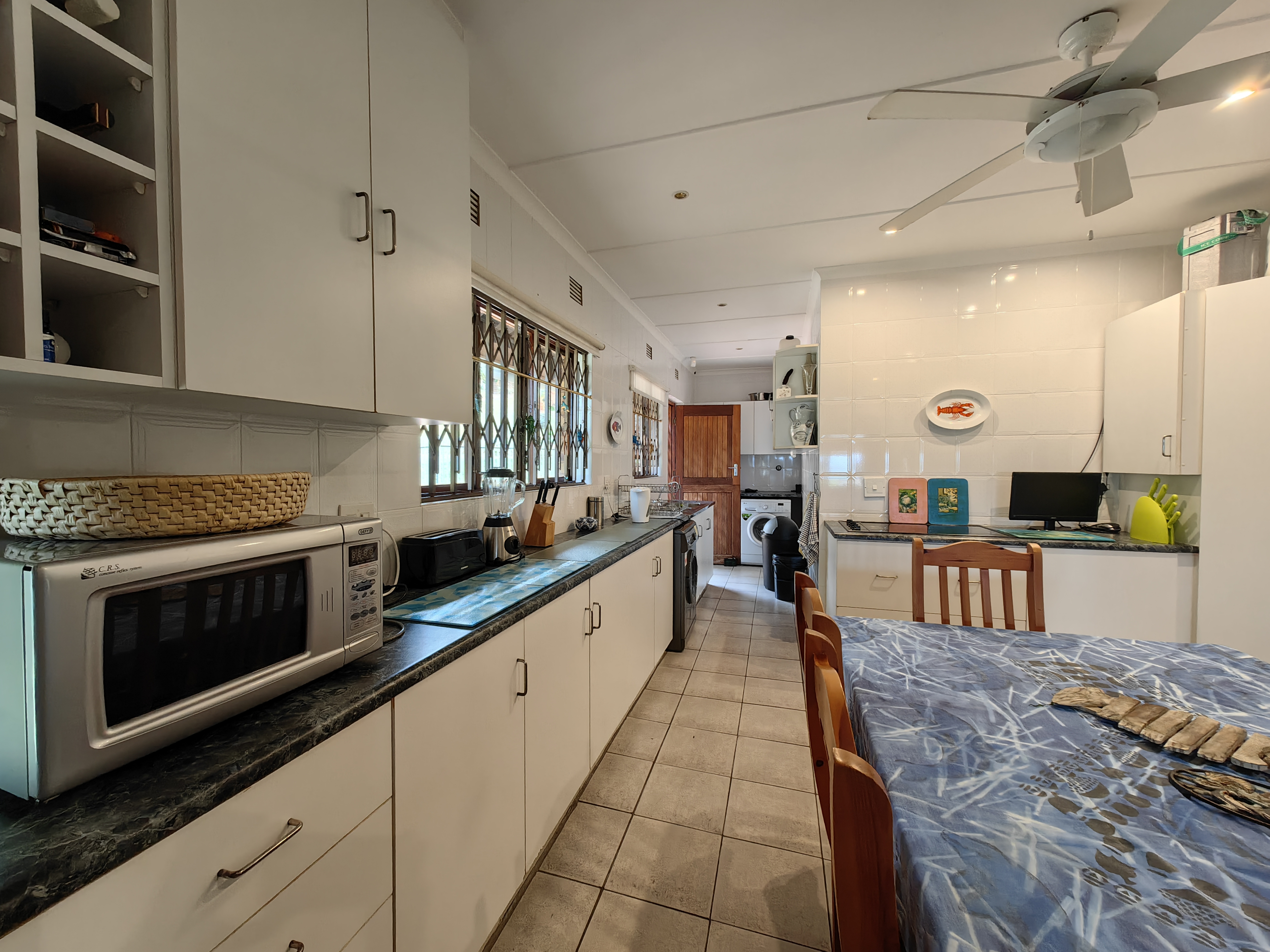 The main home boasts four bedrooms, with two situated on the “entertainment side” of the house for easy access to the large games and playroom that flows seamlessly outdoors. Here, the party continues in style — a beautiful level garden frames a generous lapa and braai area, overlooking a sparkling swimming pool and set within a lush, well-established garden with distant sea views.