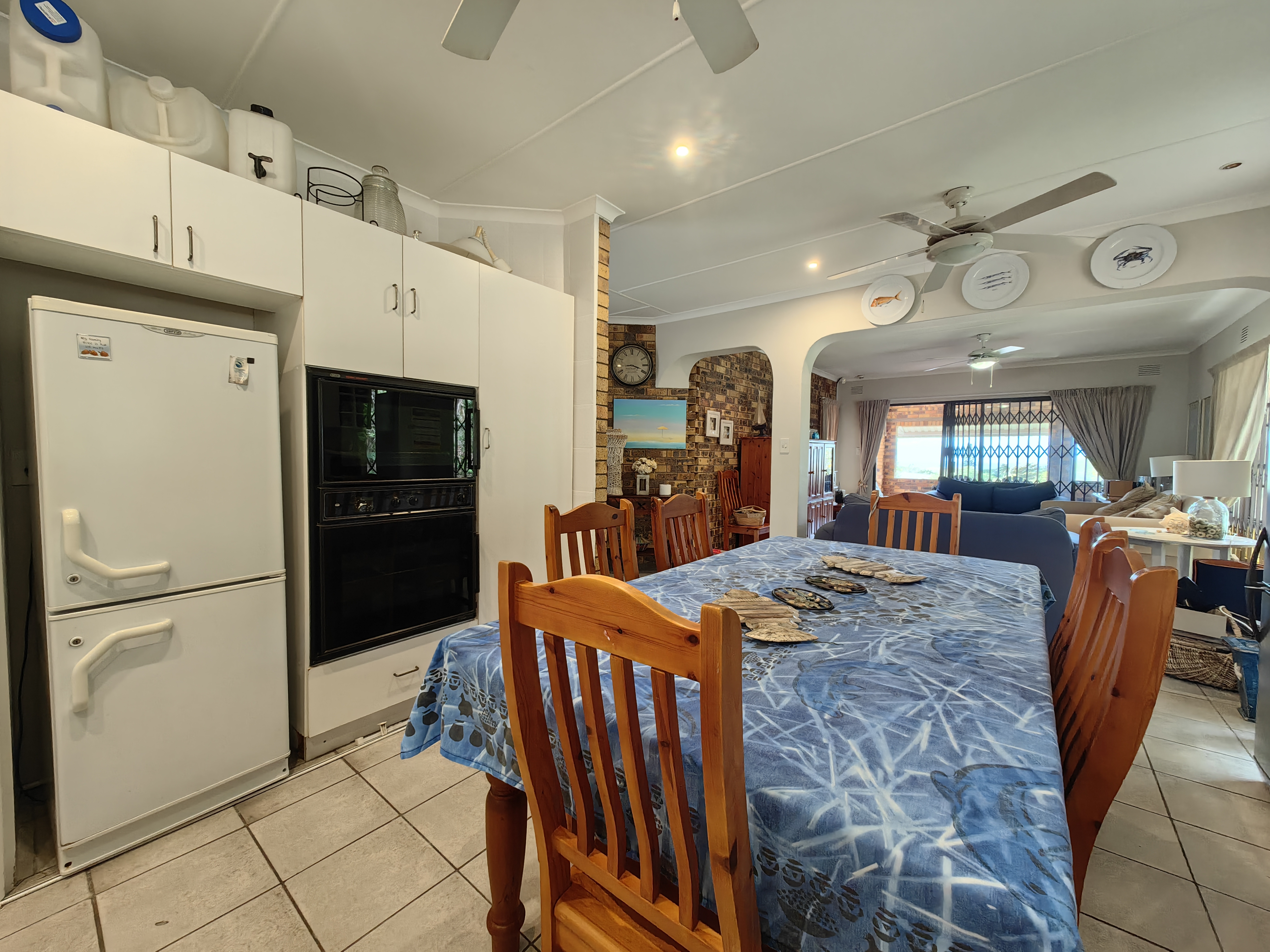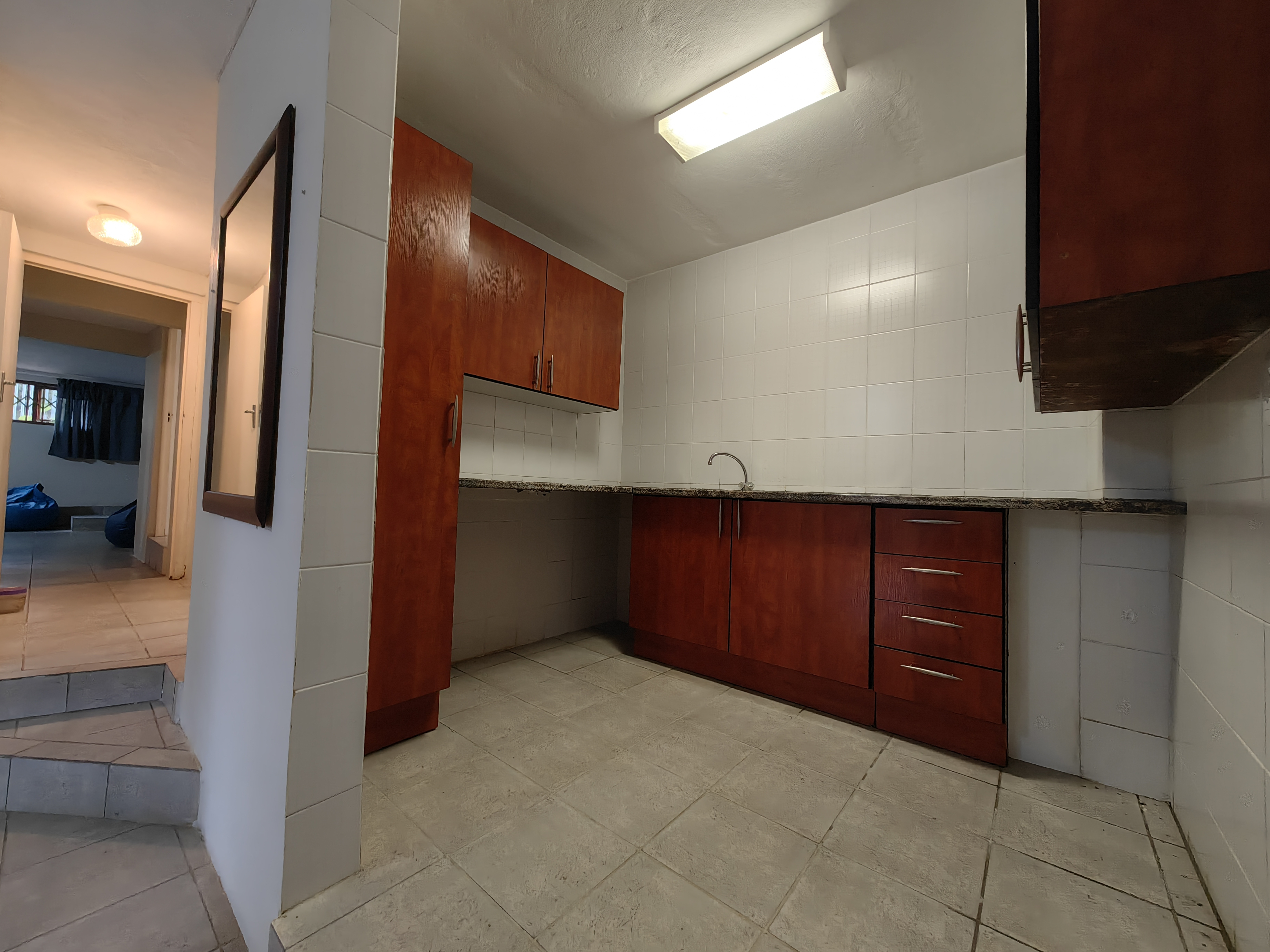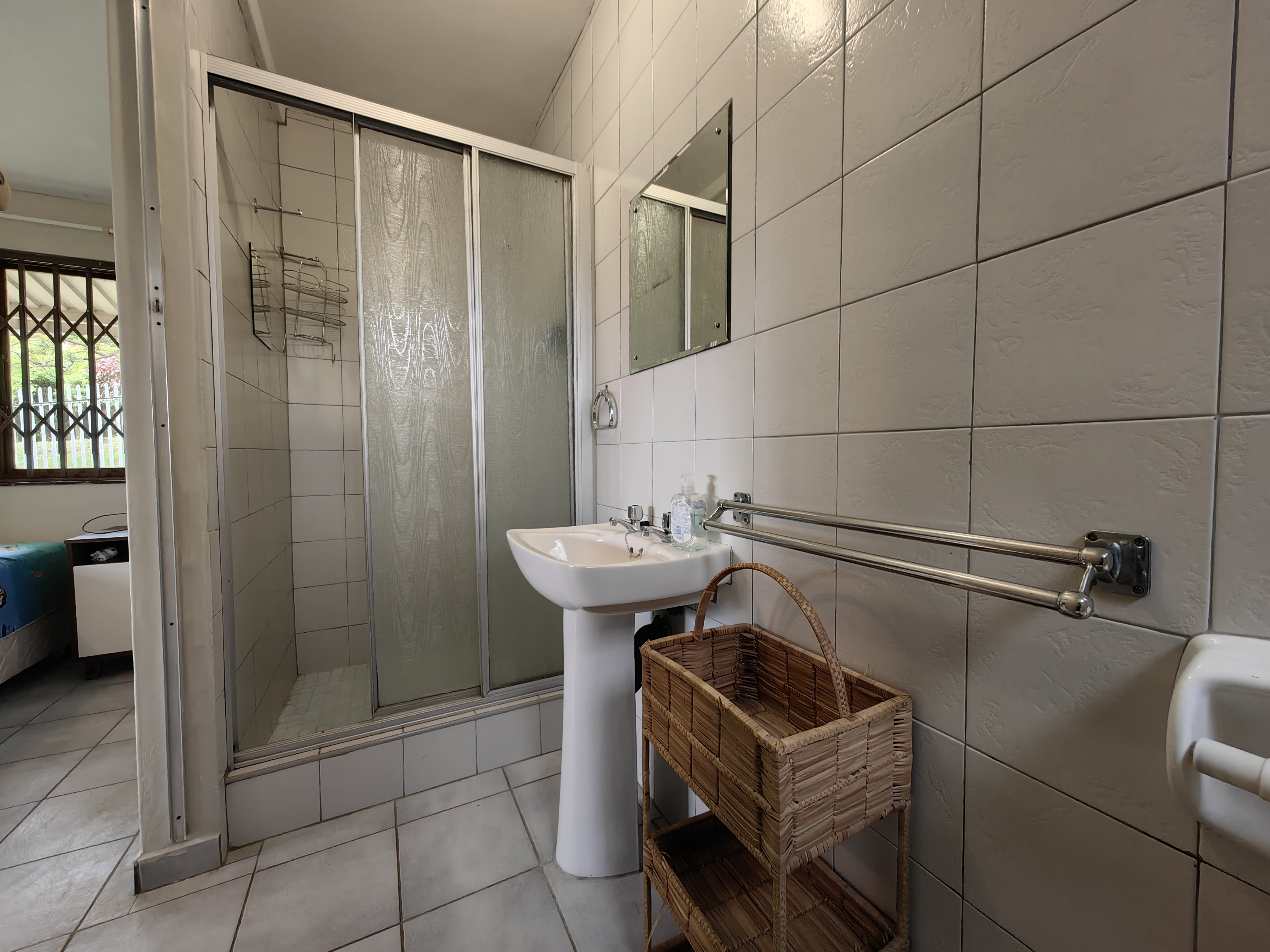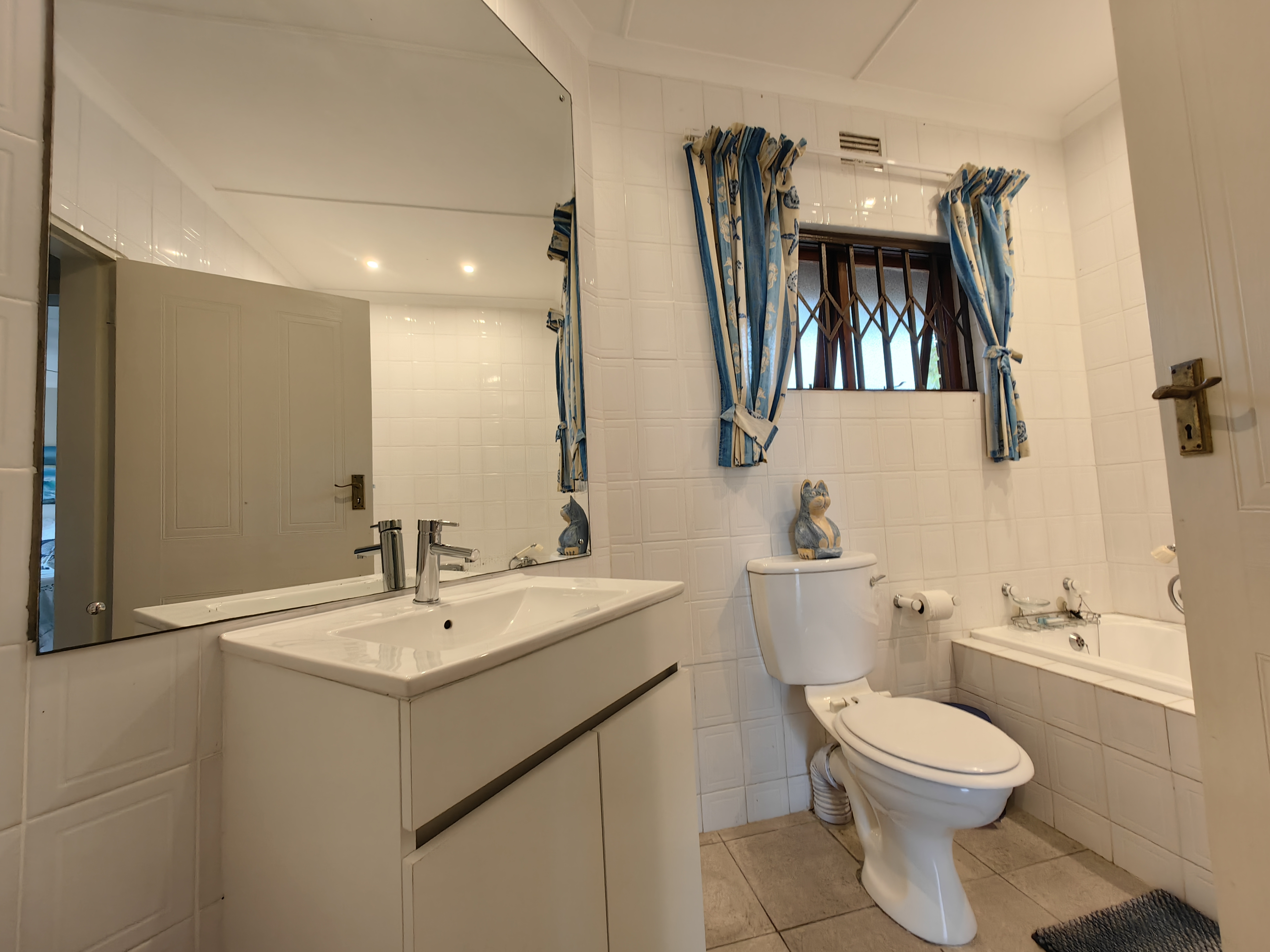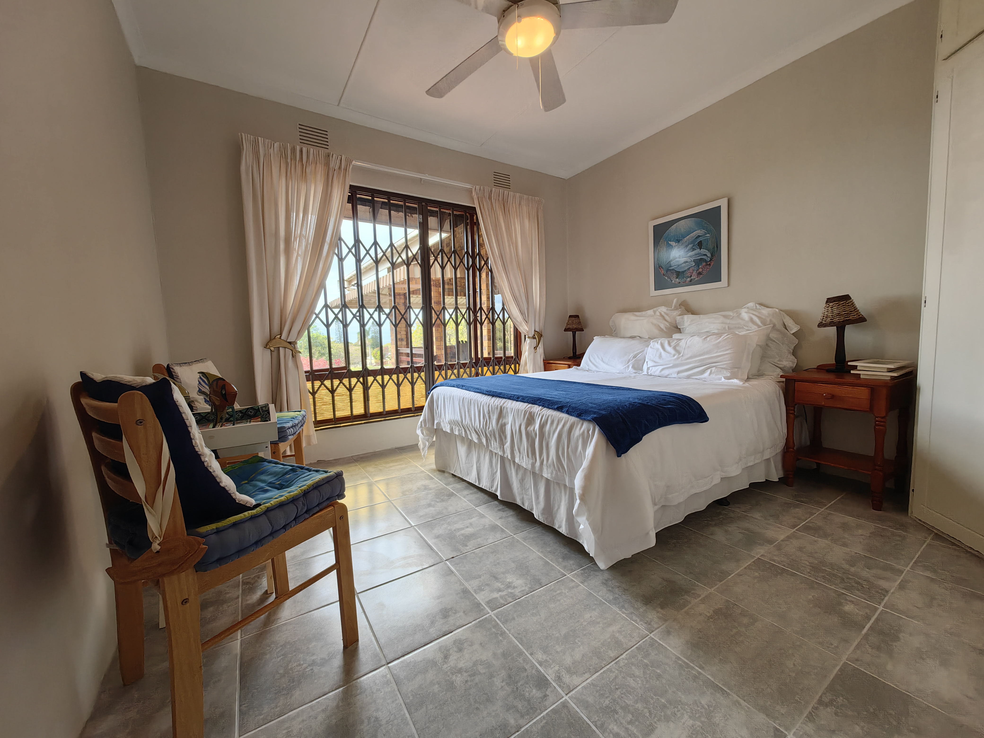 The main home boasts four bedrooms, with two situated on the “entertainment side” of the house for easy access to the large games and playroom that flows seamlessly outdoors. Here, the party continues in style — a beautiful level garden frames a generous lapa and braai area, overlooking a sparkling swimming pool and set within a lush, well-established garden with distant sea views.