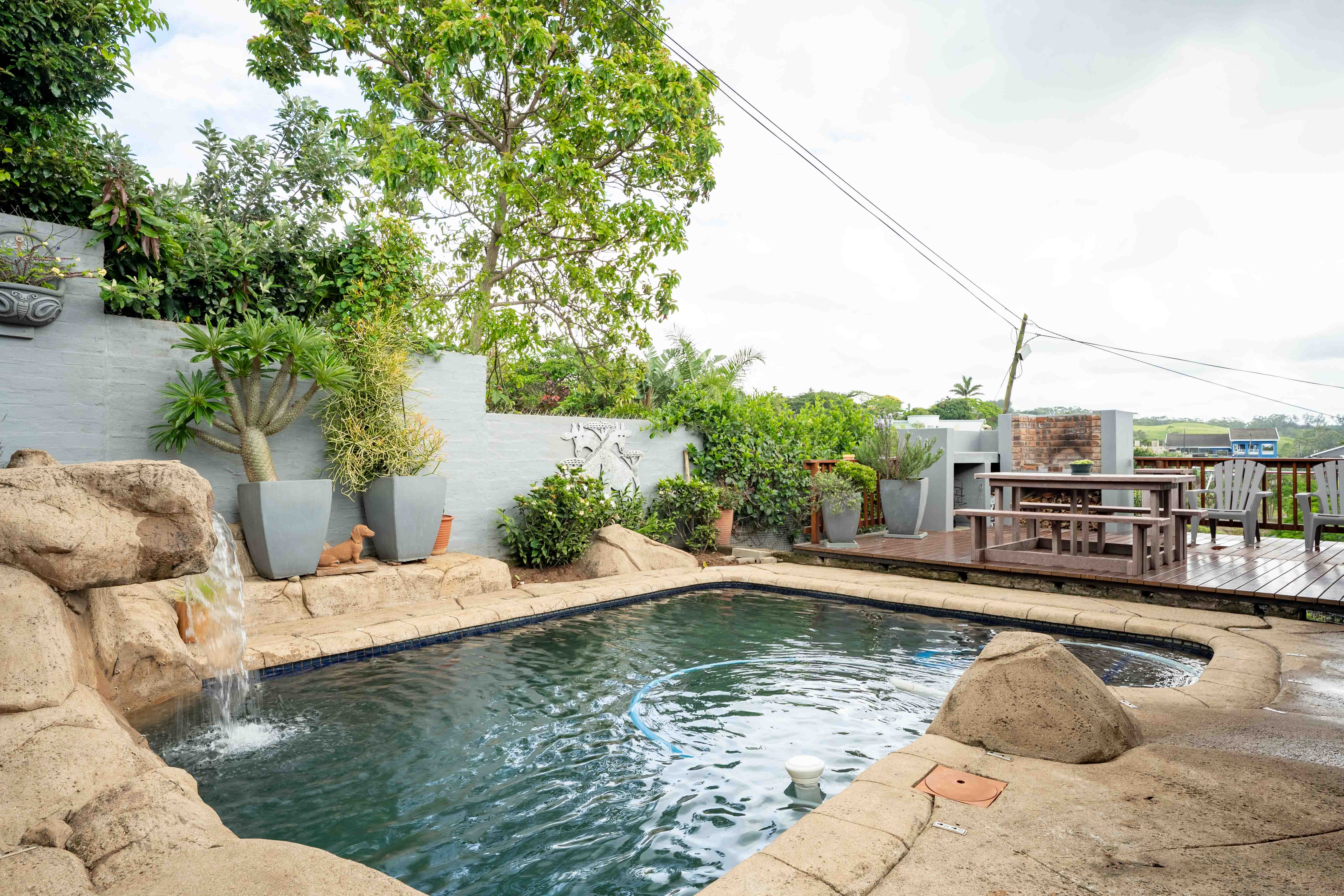 Step outside to a beautifully designed entertainment area featuring a sparkling pool, a newly built braai, and a deck extension—perfect for relaxed gatherings with family and friends. The garden is fully irrigated and meticulously maintained, providing a serene and private setting.