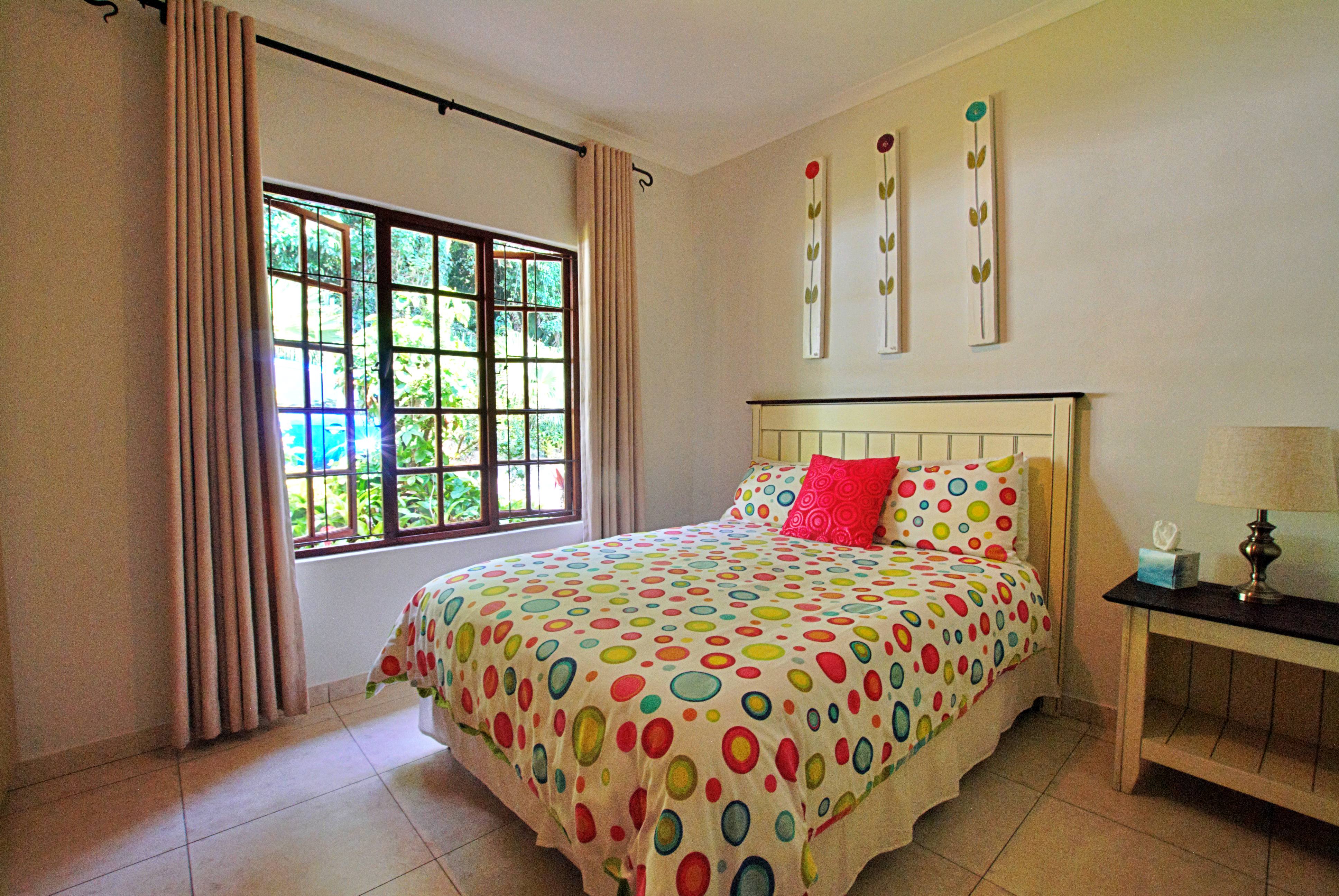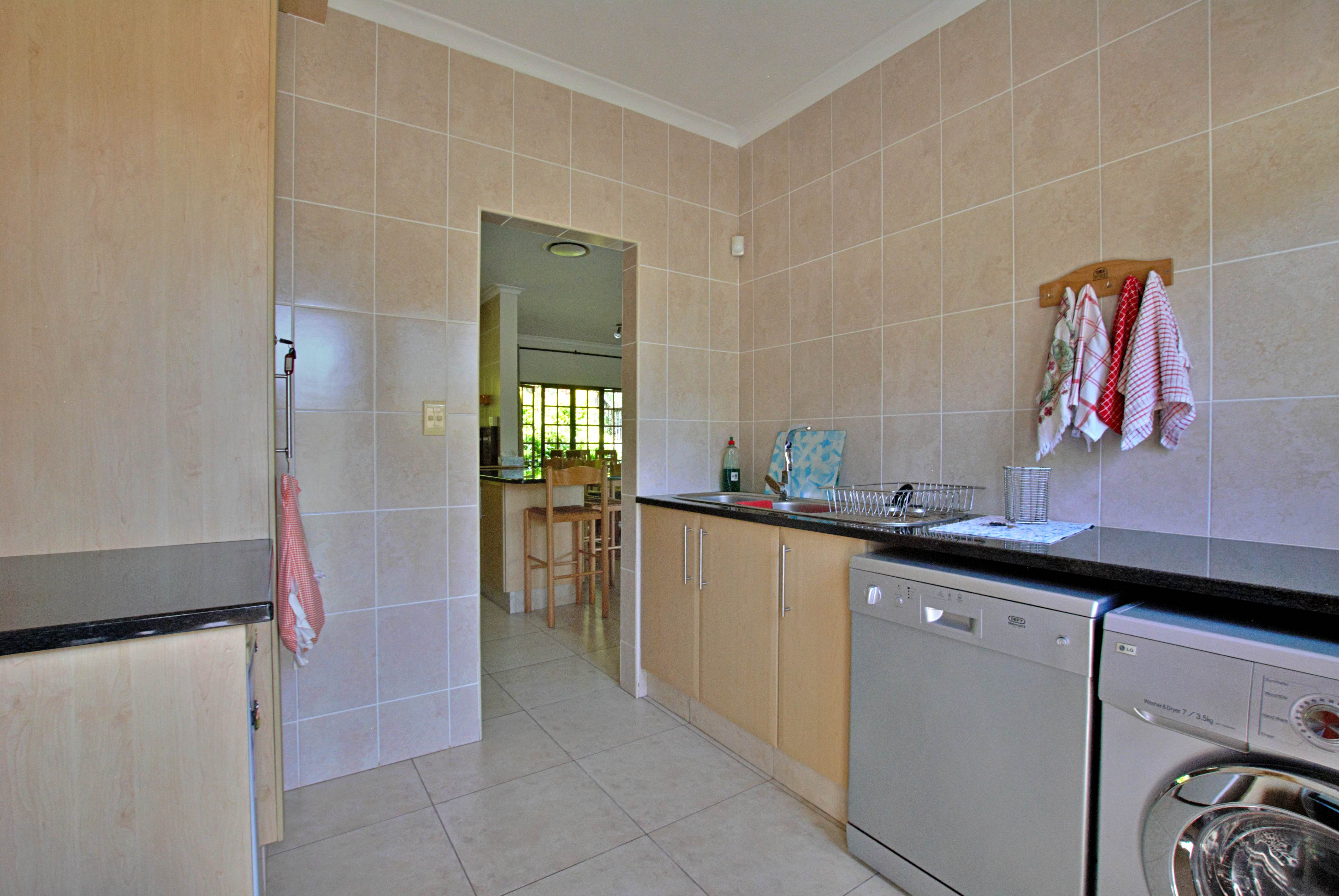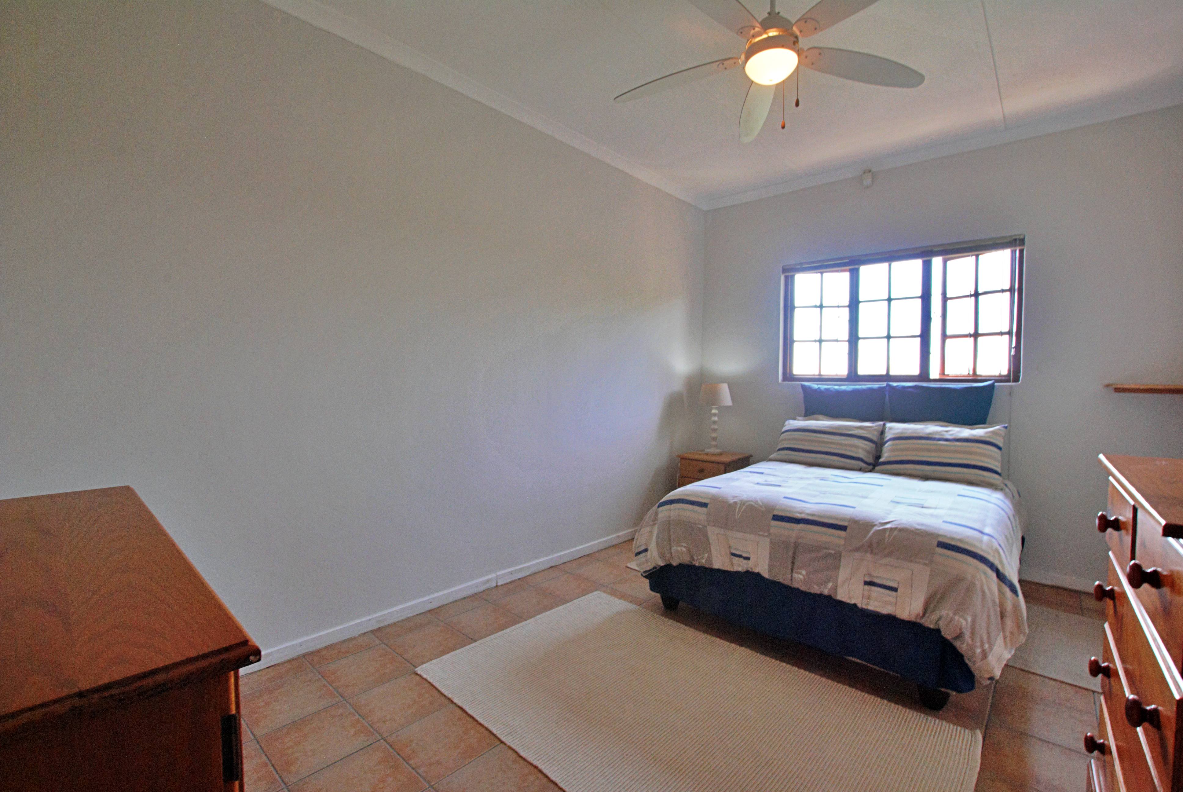 A fifth bedroom was created by partitioning part of the extra-length single garage with drywall. The room has a ceiling fan and no built-in cupboards. The remaining garage space houses a geyser and still allows room for a golf cart and storage. If needed, it can easily be converted back into a full garage (move the geyser). Spacious parking space in front of the house.