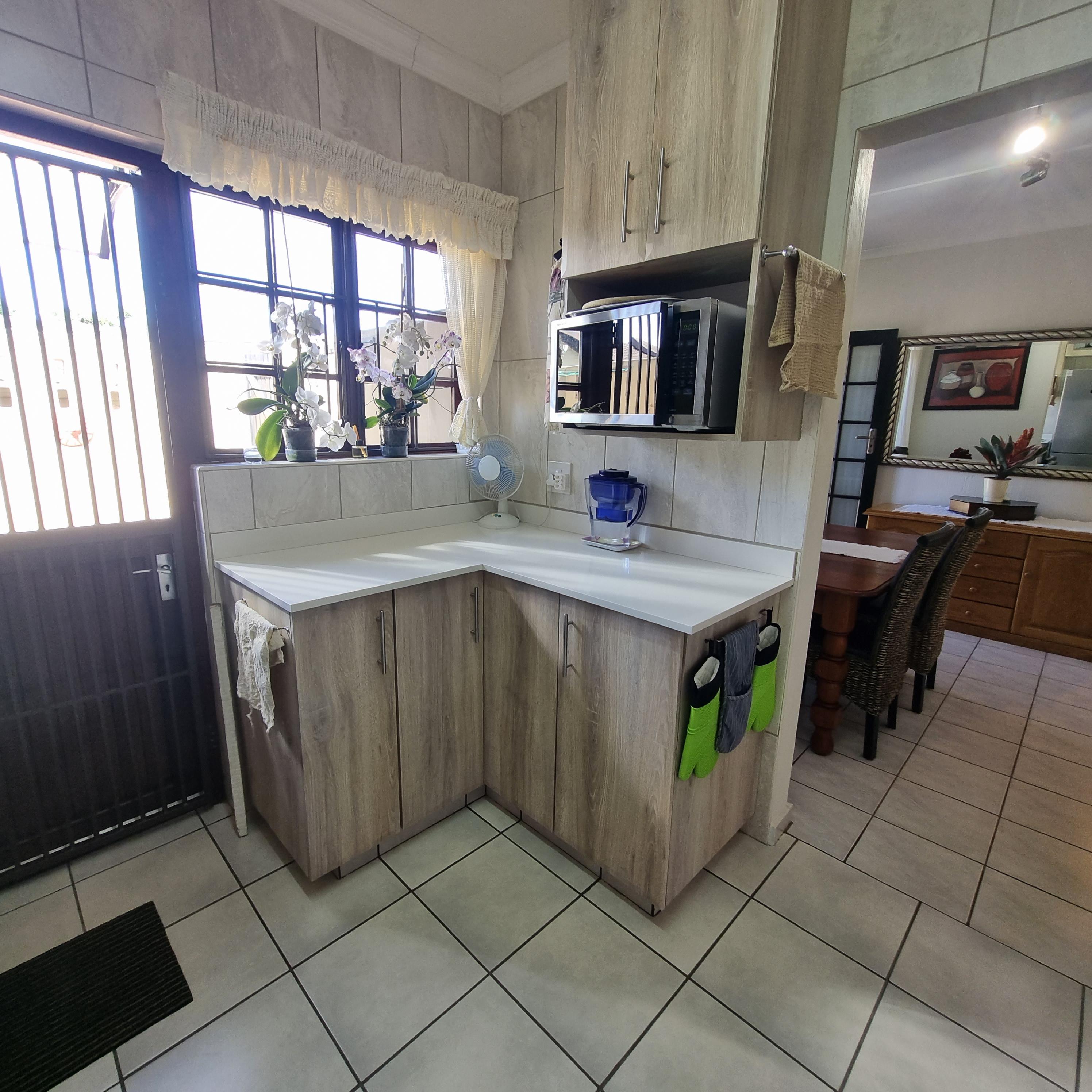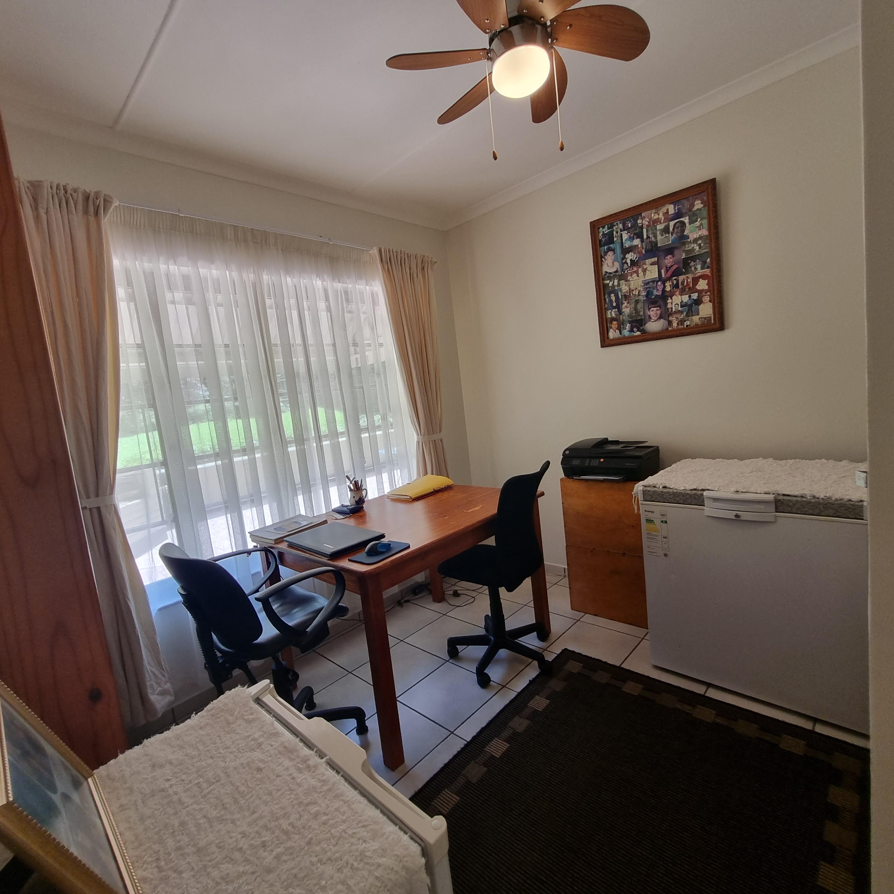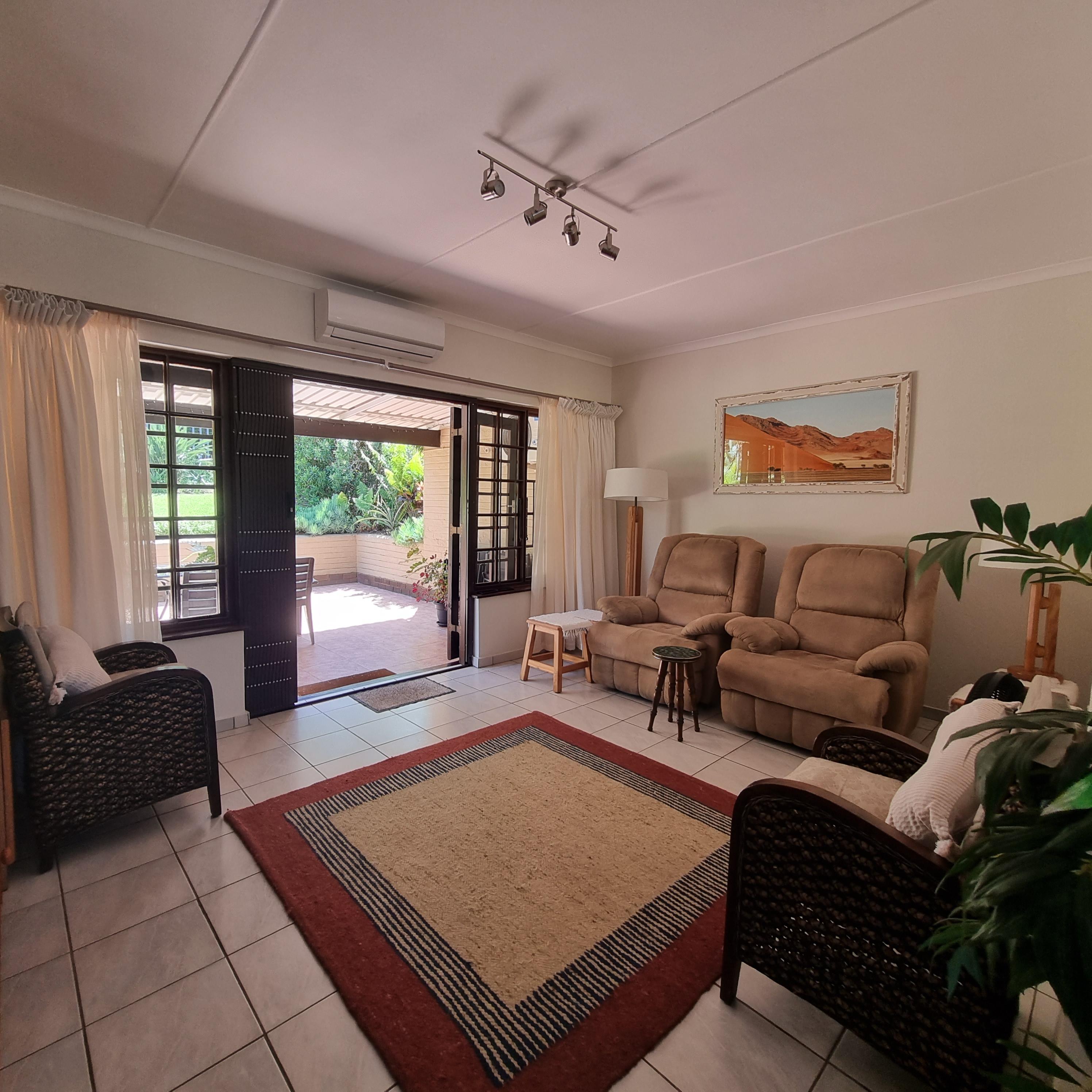 This well maintained unit has so much to offer. A modern Kitchen opening up onto a courtyard. Open plan living room and dining room leading outdoors onto a covered patio with built-in-braai surrounded by a beautiful garden.
