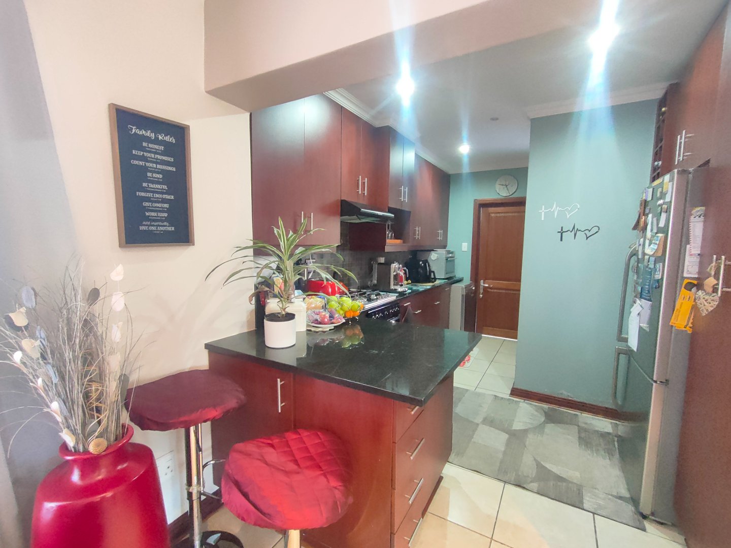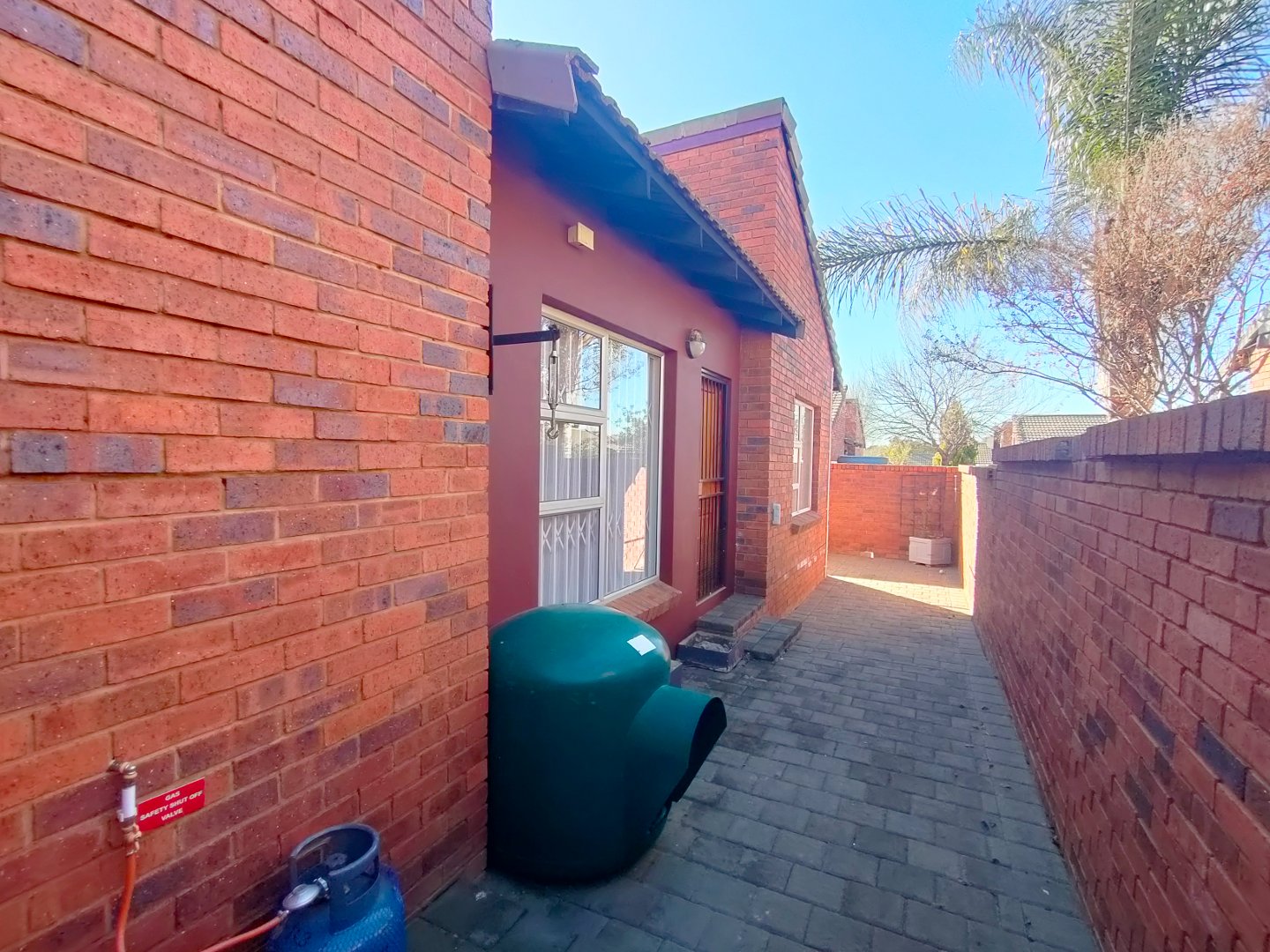 A beautiful market ready townhouse with 3 bedrooms, 2 full bathrooms (bath and shower)offers privacy, security, comfort, style and a warm home feeling. The Main Bedroom has an en-suite bathroom and aircon, the 2nd bedroom also comes with an aircon and a sliding door walking out to the garden, the 3rd bedroom offers extra cupboards. The townhouse has a great open-plan flow out of the kitchen with extra build-in cupboards, granite tops, gas hob and custom made wine rack for the wine lovers, flowing into the dinning room and TV room. The outdoor area is beautifully laid out, spacious enough for entertainment for your family and pets. BONUS - 2 x JoJo tanks for water back-up, burglar bars, double garage (remote-controlled). Complex is managed by Body Corporate, PropSim with excellent security and maintenance. Pre-paid electricity, water is metered and done done by the Body Corporate. Don’t miss out on this opportunity to call it your new home or investment opportunity. Contact for me for viewings.